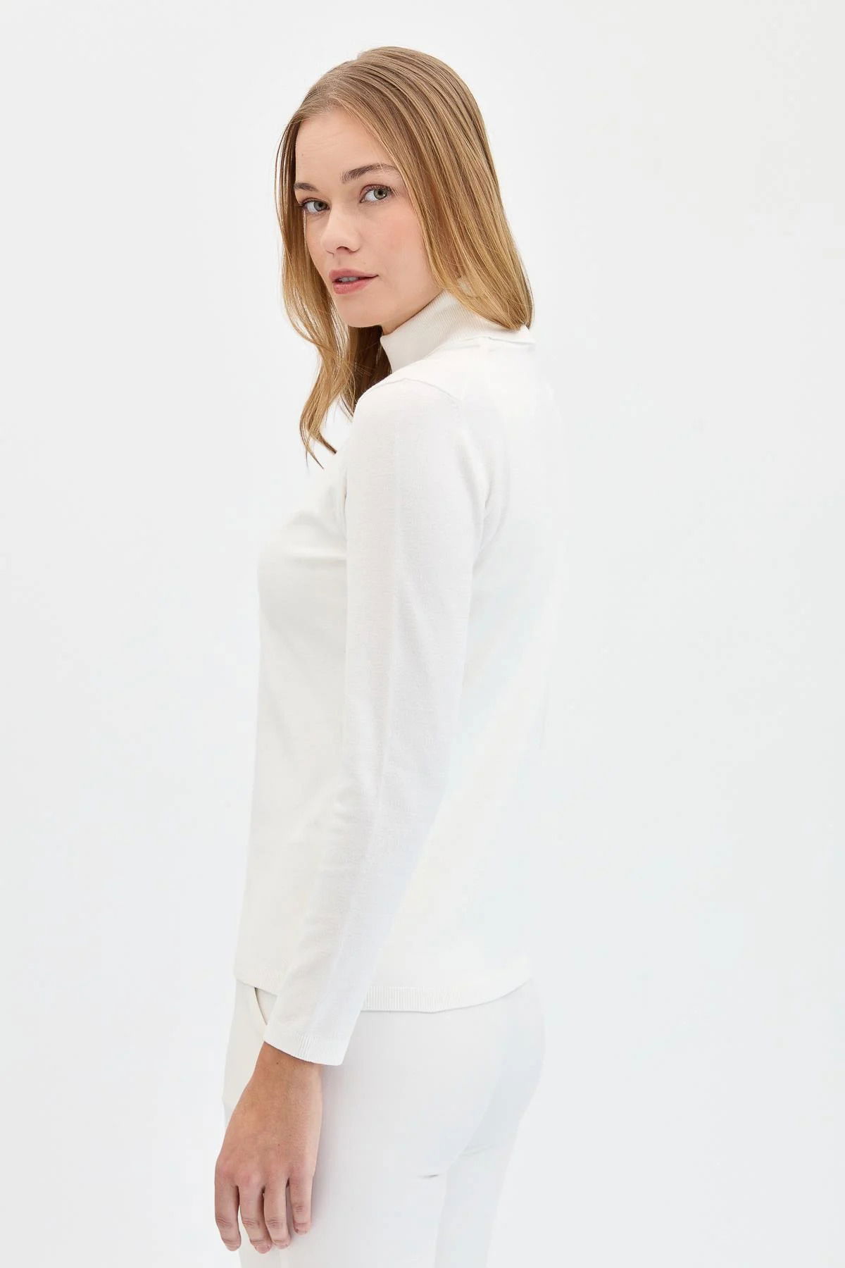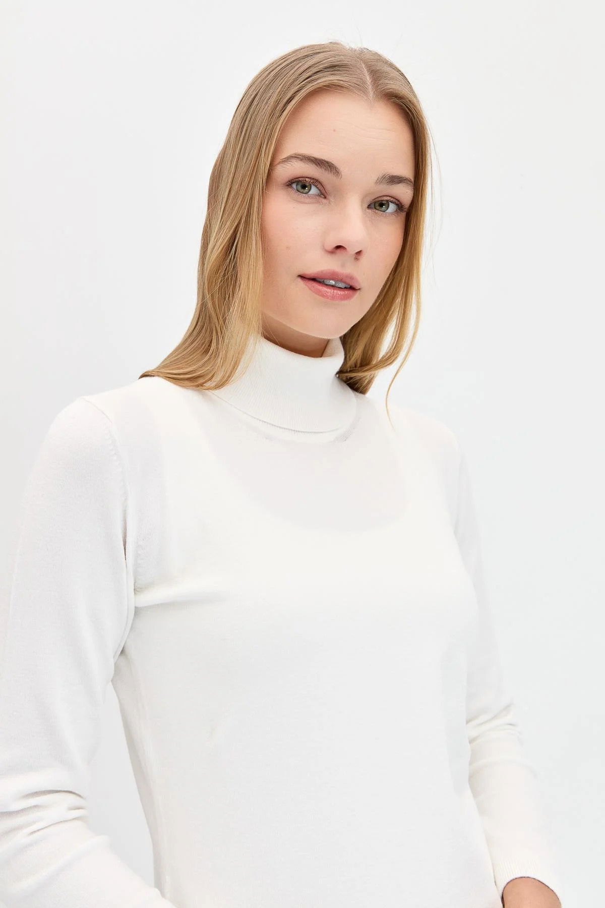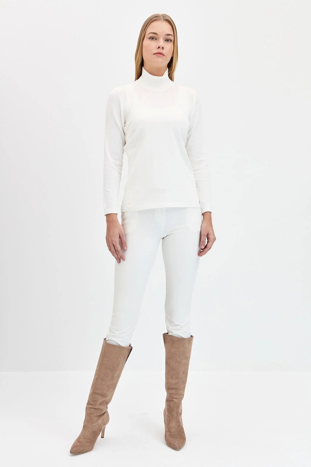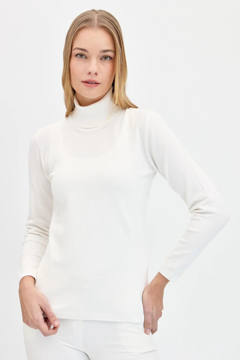 Desen Triko Kadın Likralı Uzun Kollu Basic Tam Balıkçı Bluz 20017 Kemik