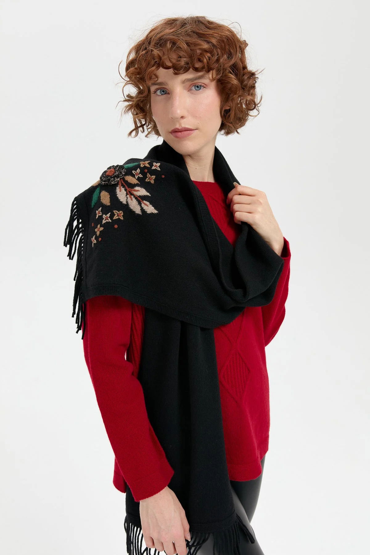 Detay: Düz renk, yün kaşkol;