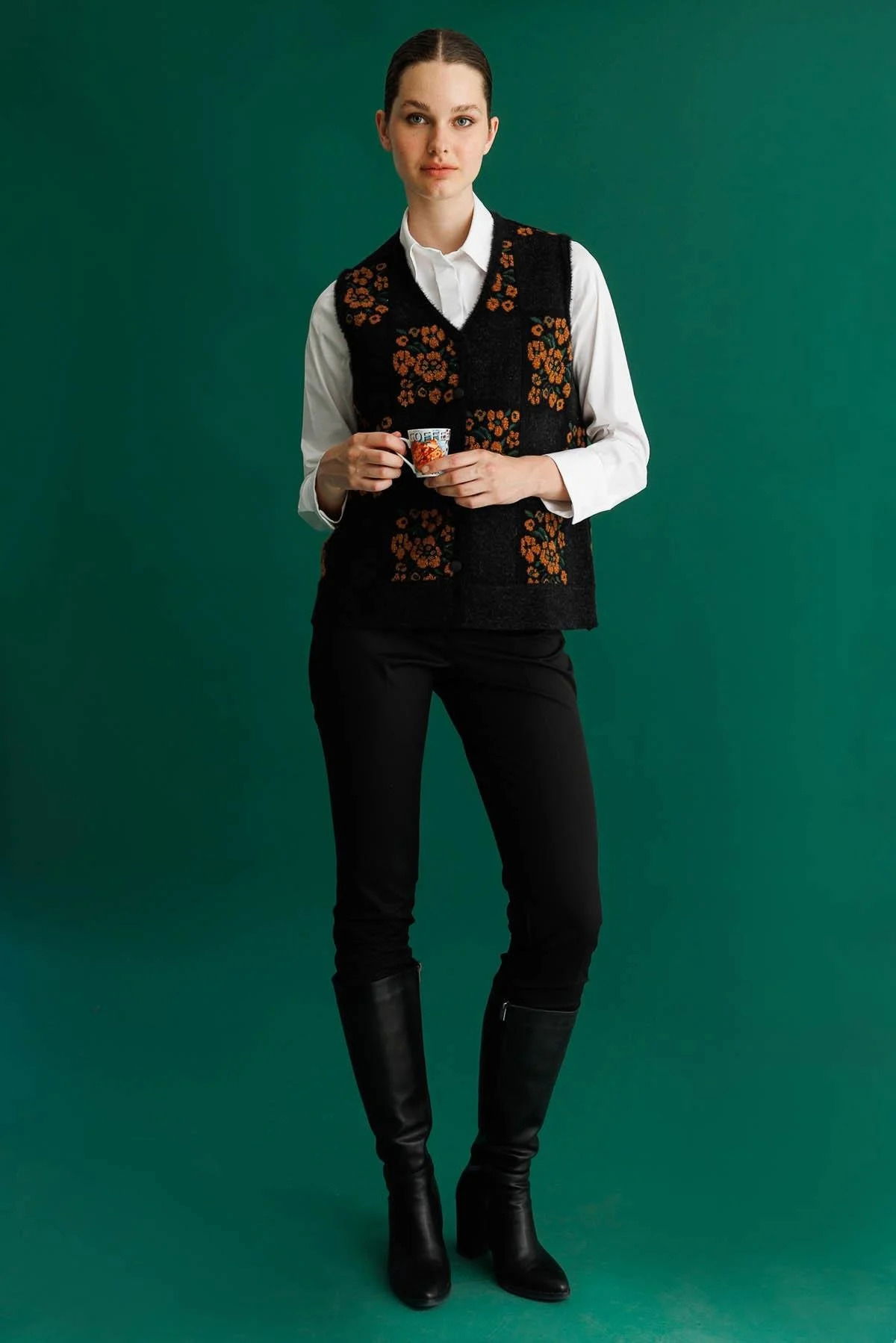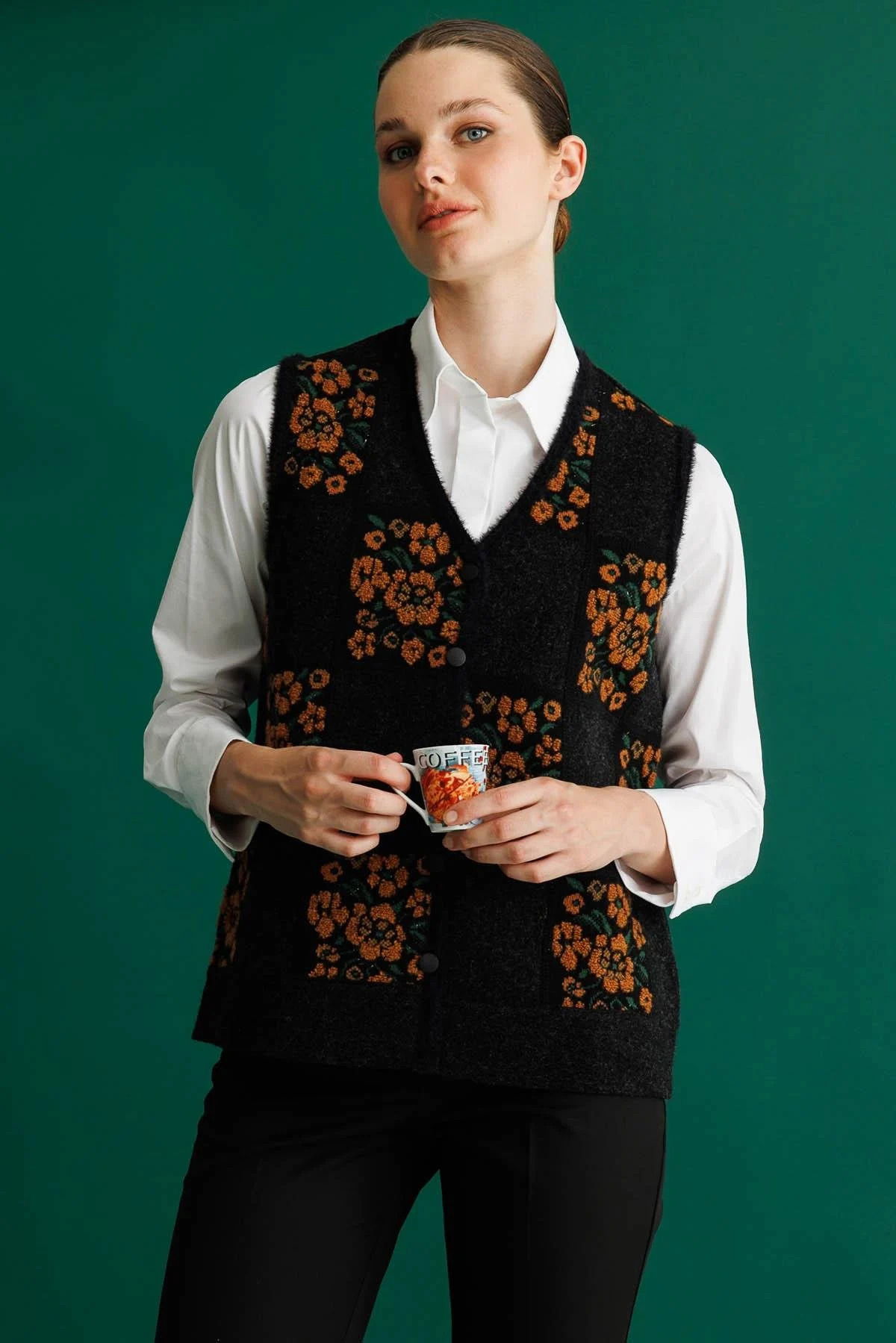 Detay: Desenli yapısı ve V yaka tasarımıyla dikkat çeken bu kolsuz yünlü yelek, standart kalıbıyla konforlu bir şıklık sunar. Yünlü materyali sayesinde hem sıcak tutar hem de zarif bir duruş sergiler. Modern ve klasik tarzları bir araya getiren bu yelek, stil sahibi kombinlerin vazgeçilmez parçasıdır;