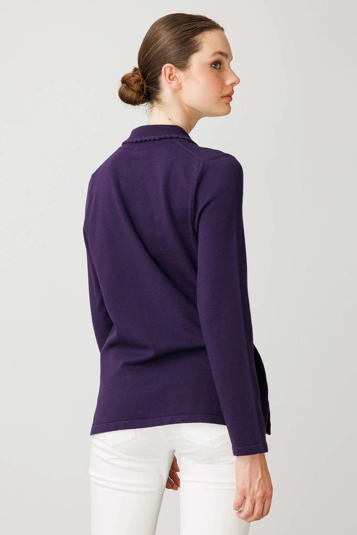 Desen Triko Kadın Polo Yaka Likralı Bluz 25091 K.Mor