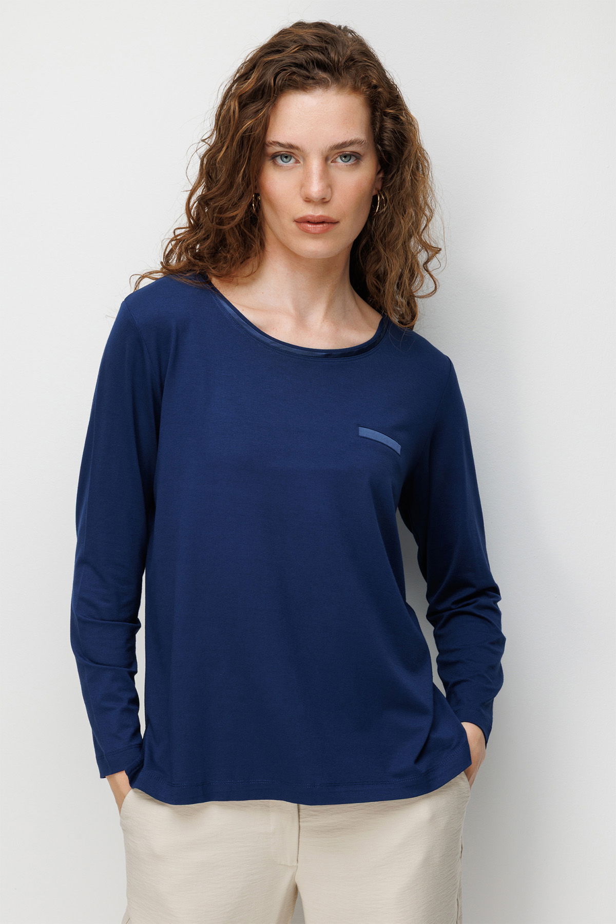 Detay: Sıfır yaka tasarımıyla modern bir görünüm sunan bu penye bluz, yaka kenarındaki saten şeritli cep detayıyla şıklığı ön plana çıkarır. Hafif ve rahat yapısıyla günlük kullanımda konfor sağlarken zarif detayları sayesinde özel kombinlerde de tercih edilebilecek şık bir parçadır;
