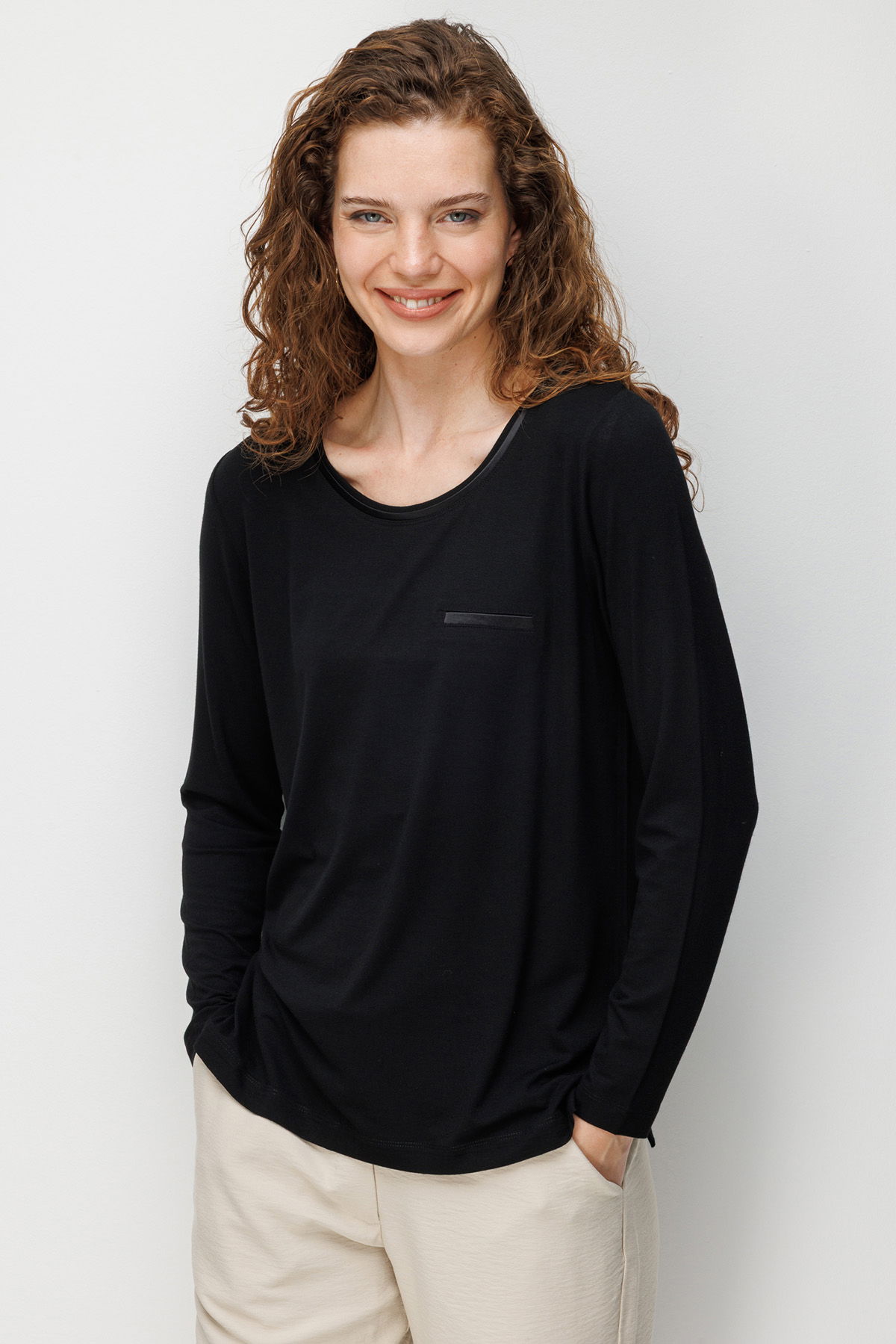 Detay: Sıfır yaka tasarımıyla modern bir görünüm sunan bu penye bluz, yaka kenarındaki saten şeritli cep detayıyla şıklığı ön plana çıkarır. Hafif ve rahat yapısıyla günlük kullanımda konfor sağlarken zarif detayları sayesinde özel kombinlerde de tercih edilebilecek şık bir parçadır;