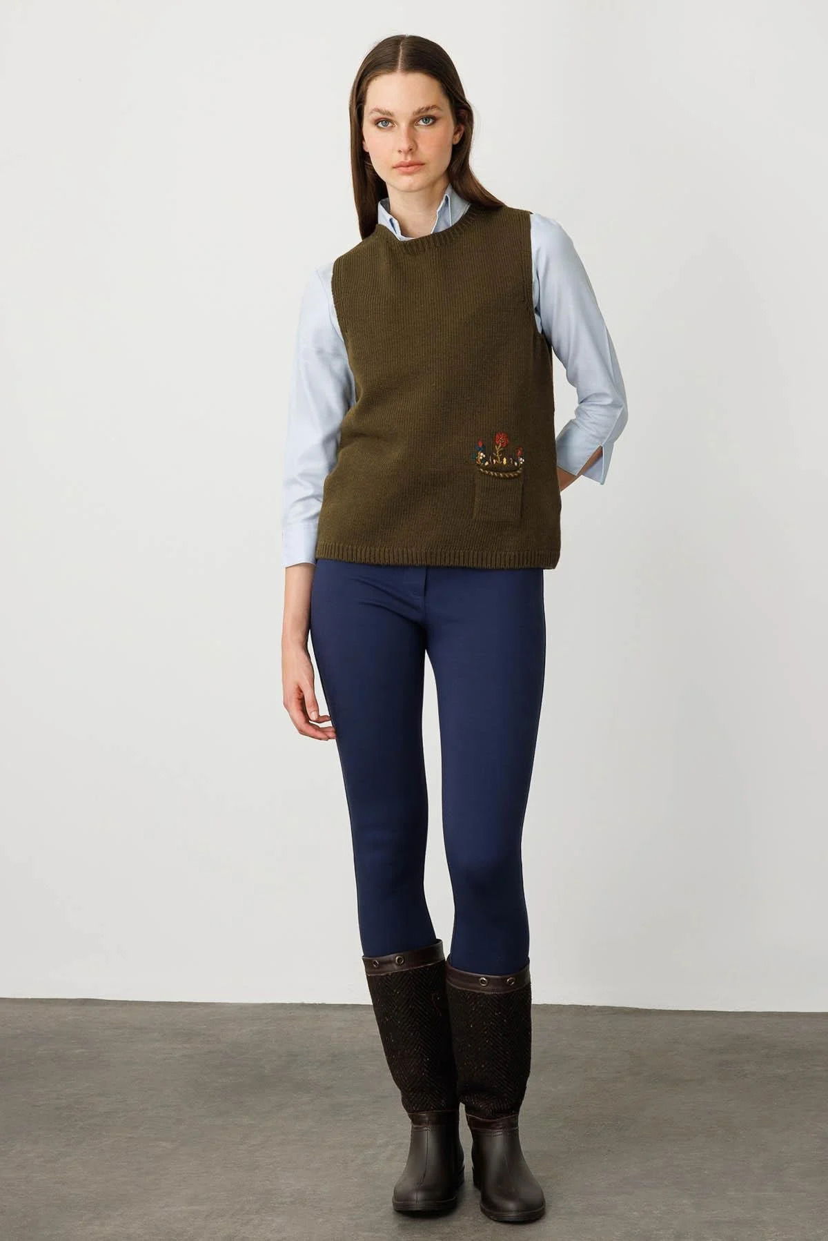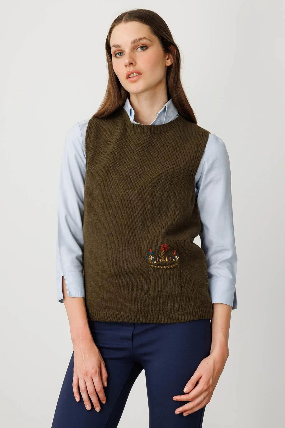 Detay: Düz renkli, standart kalıp, kolsuz tasarımıyla öne çıkan bu yünlü süveter; sıfır yaka detayı sayesinde sade ve modern bir görünüm sunar. Yünlü materyali sıcak tutarken, minimalist tasarımı günlük kombinlerde şıklığı ve konforu bir arada sağlar. Zamansız tarzıyla hem klasik hem de casual kombinlere uyum sağlayan ideal bir parçadır;