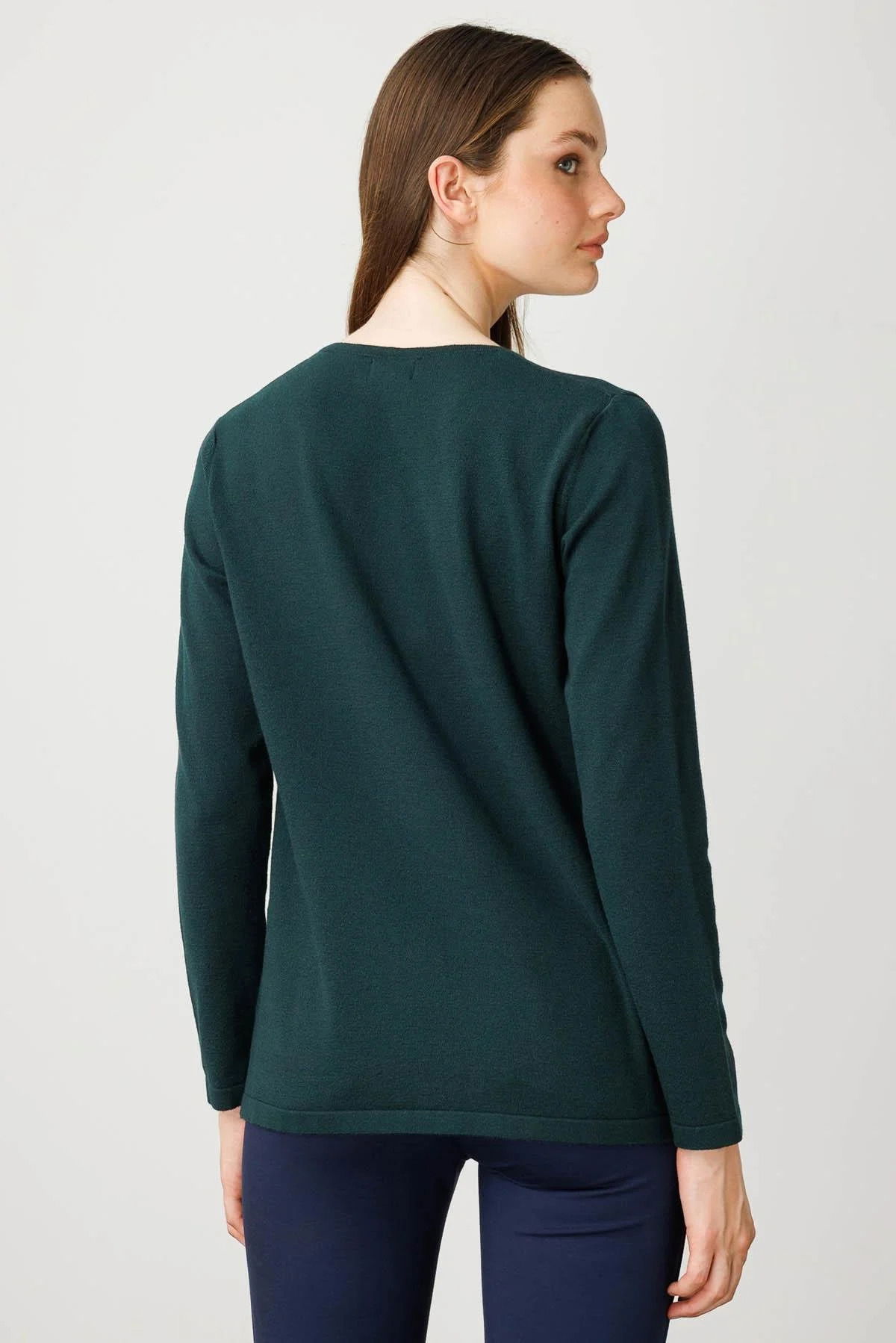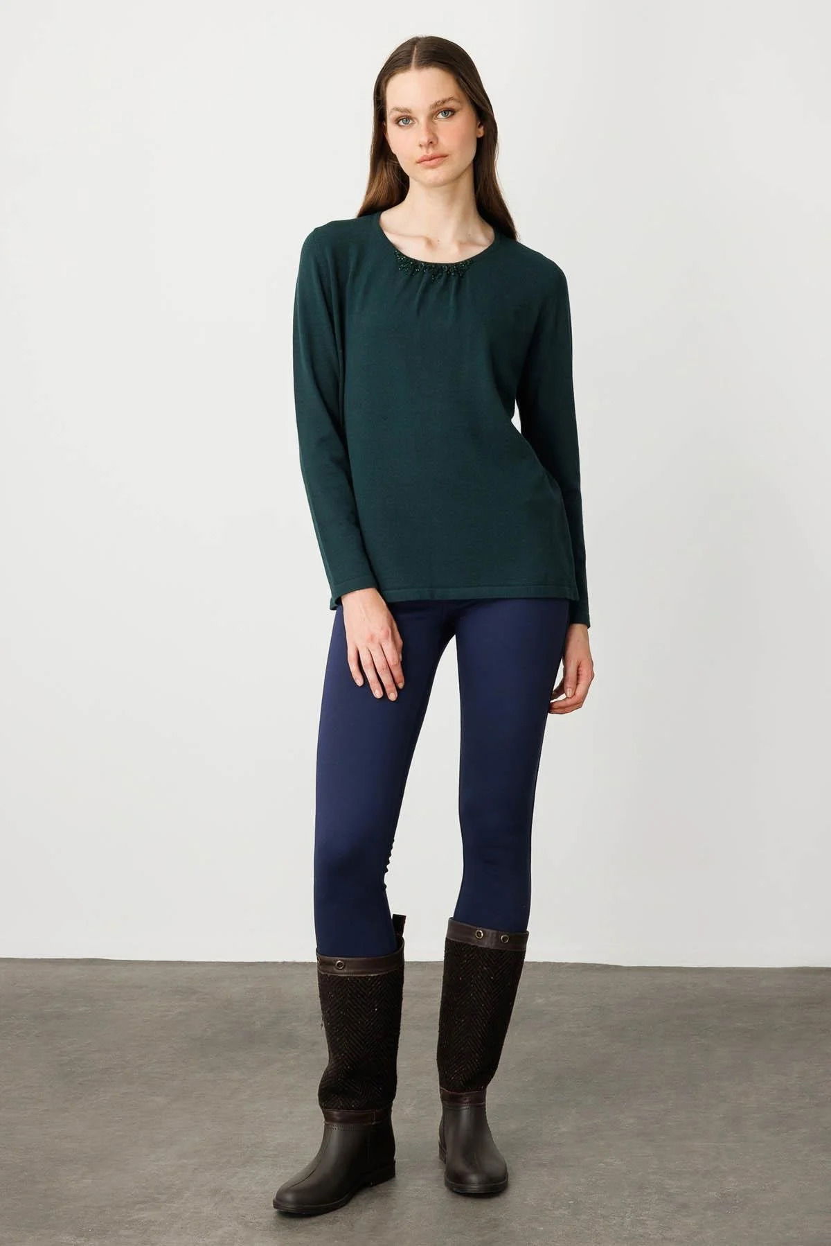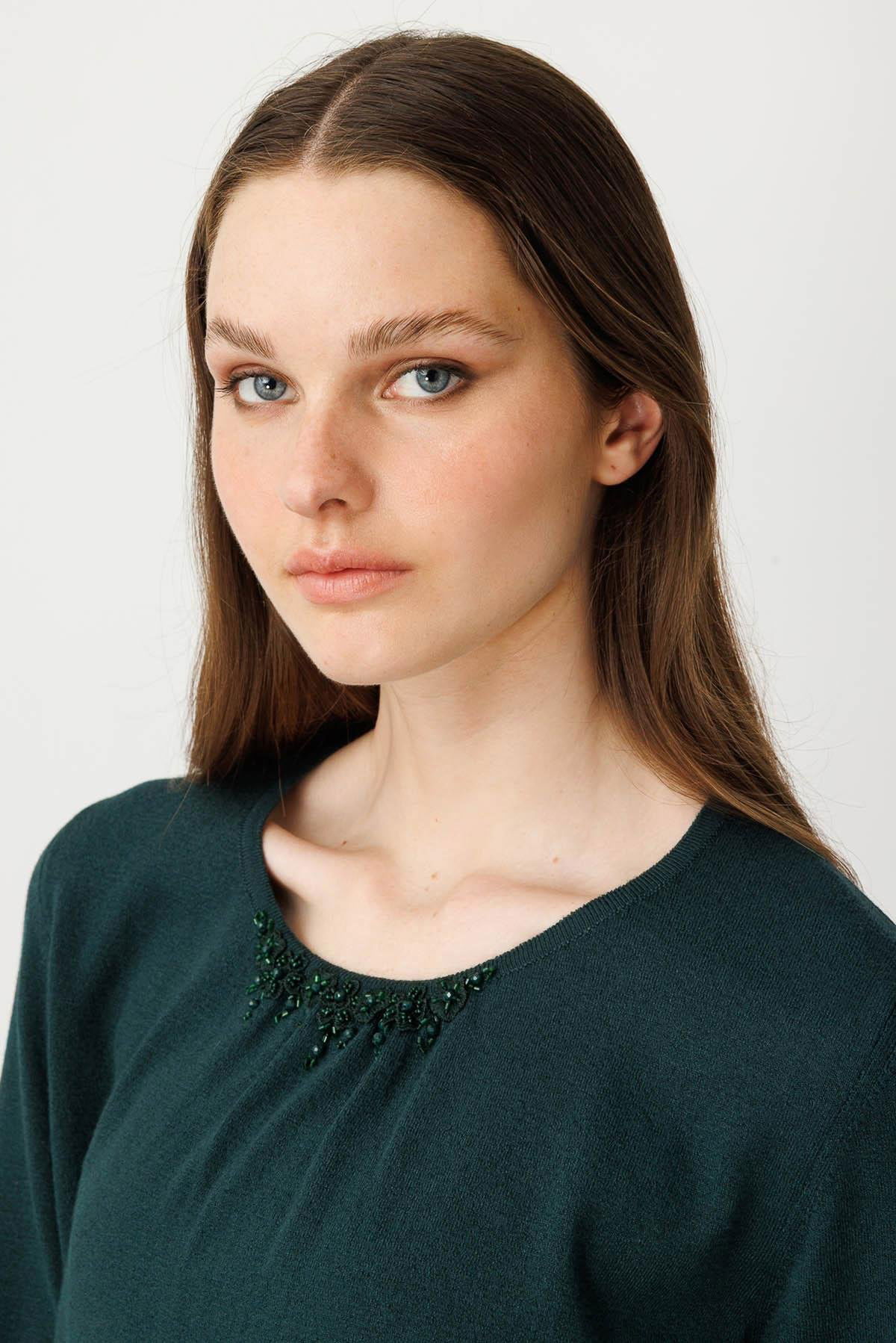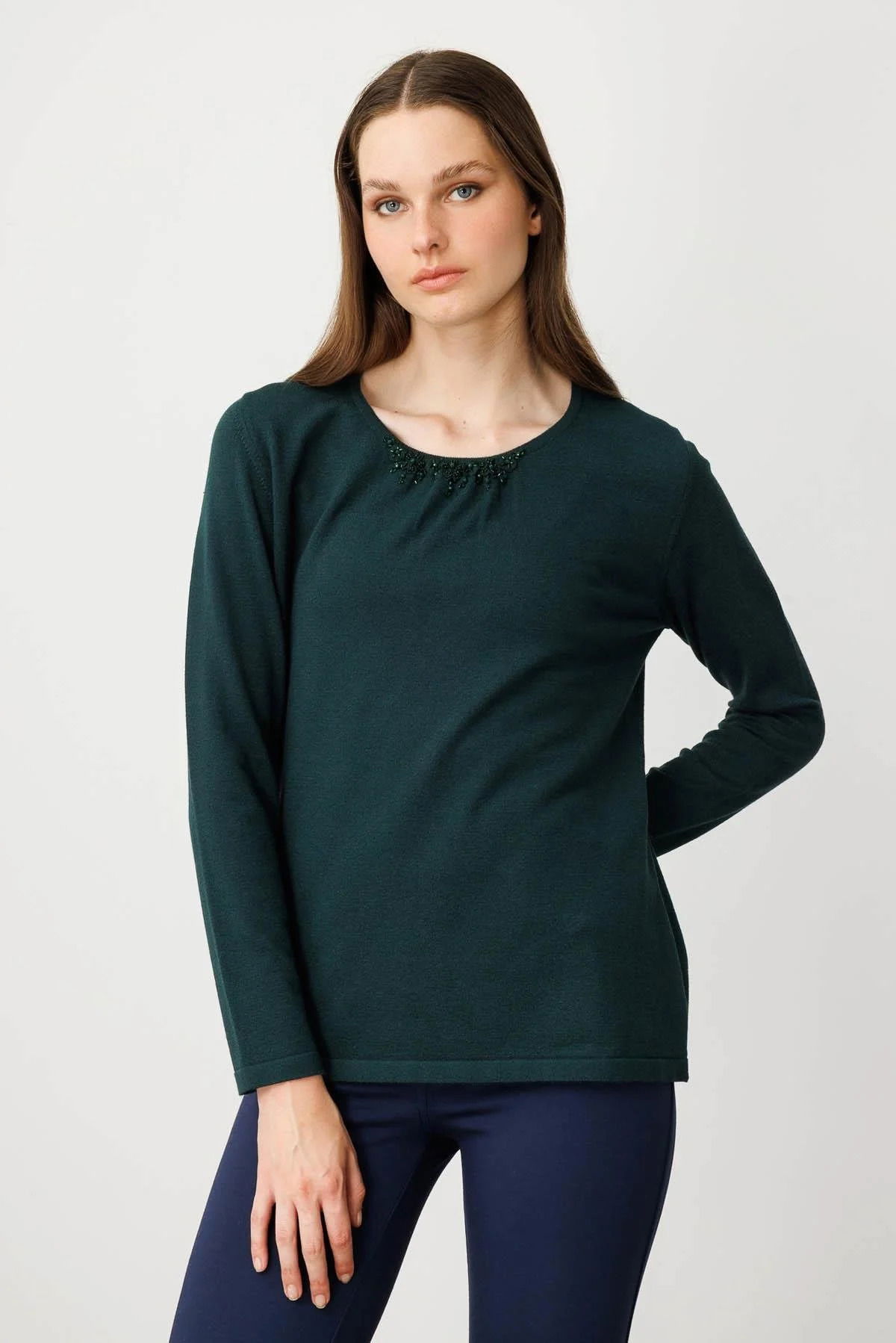 Desen Triko Kadın Sıfır Yaka Dantel Çiçek İşlemeli Ligralı Bluz 25093 Yeşil
