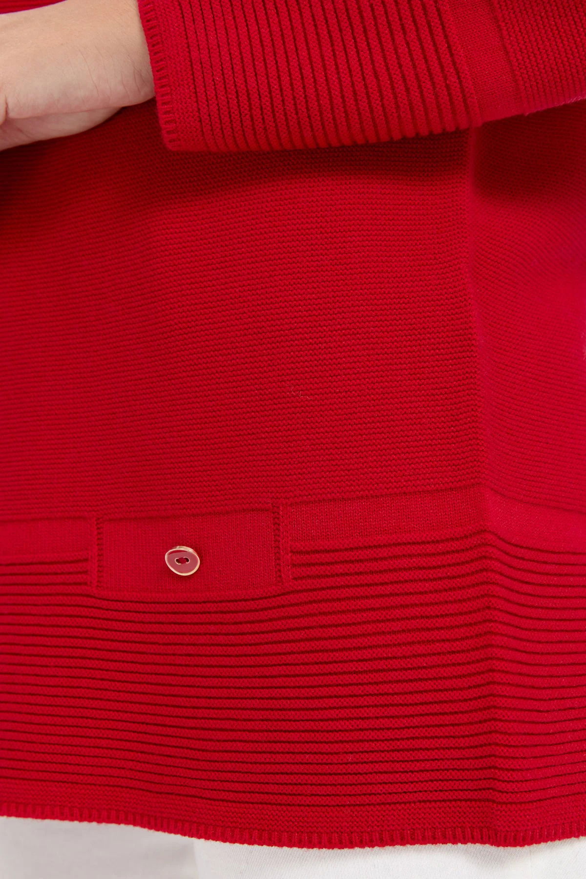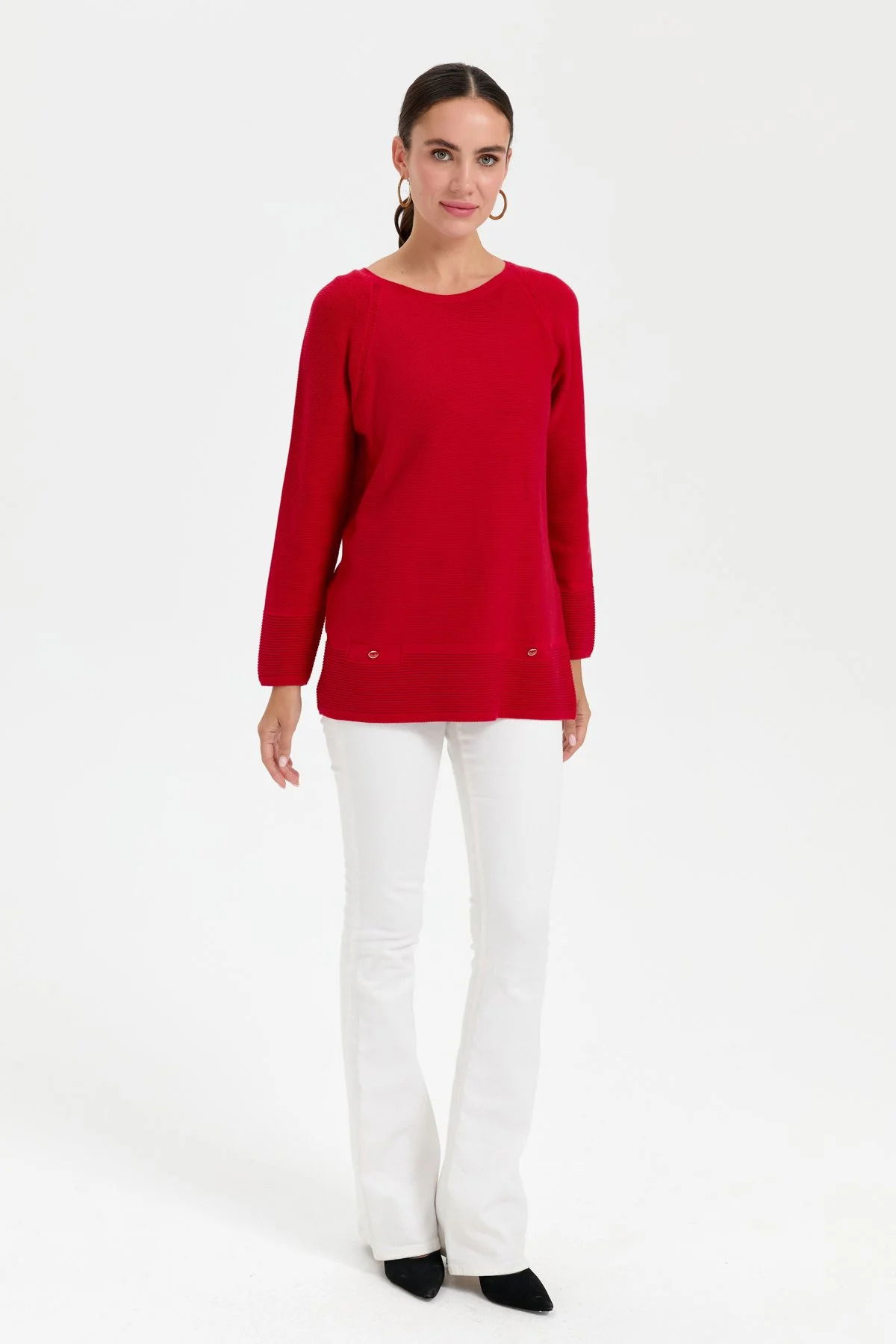 Desen Triko Kadın Sıfır Yaka Dikişsiz Kazak 24189 K.Kırmızı