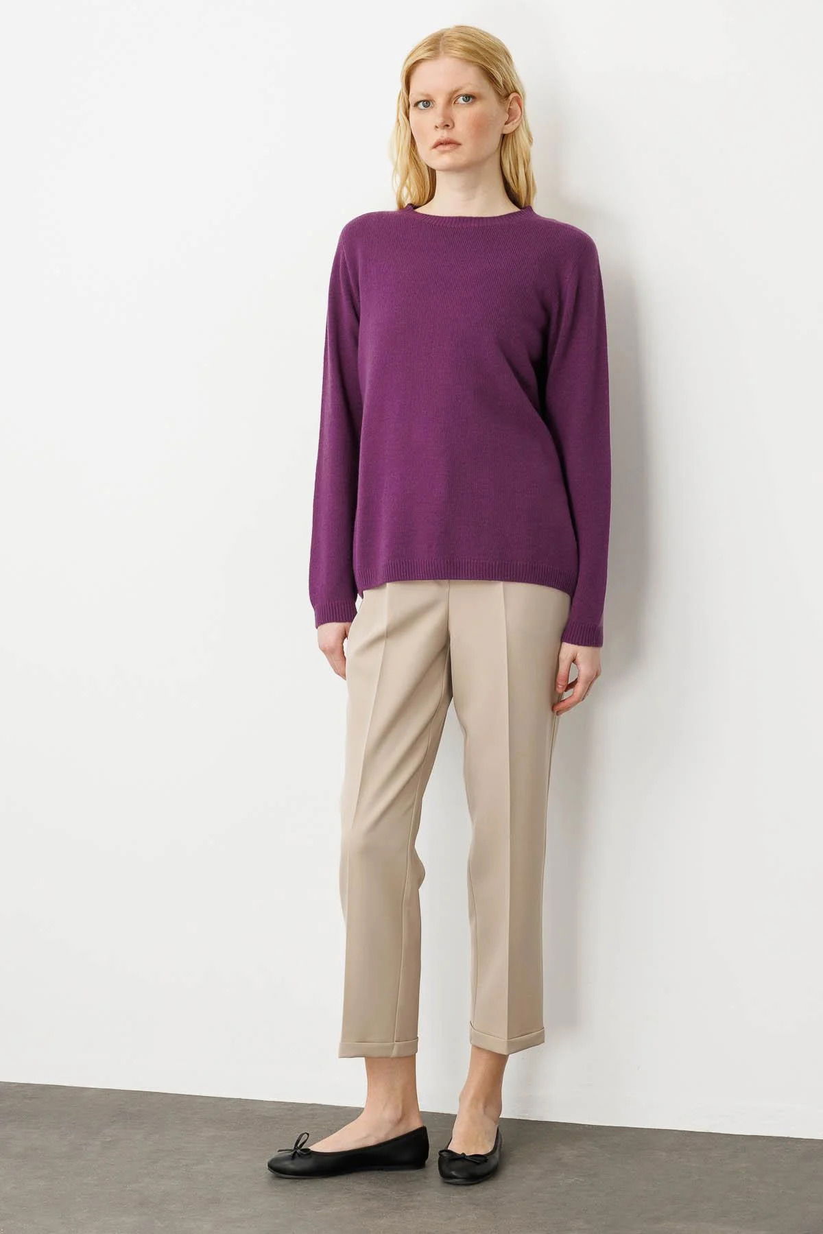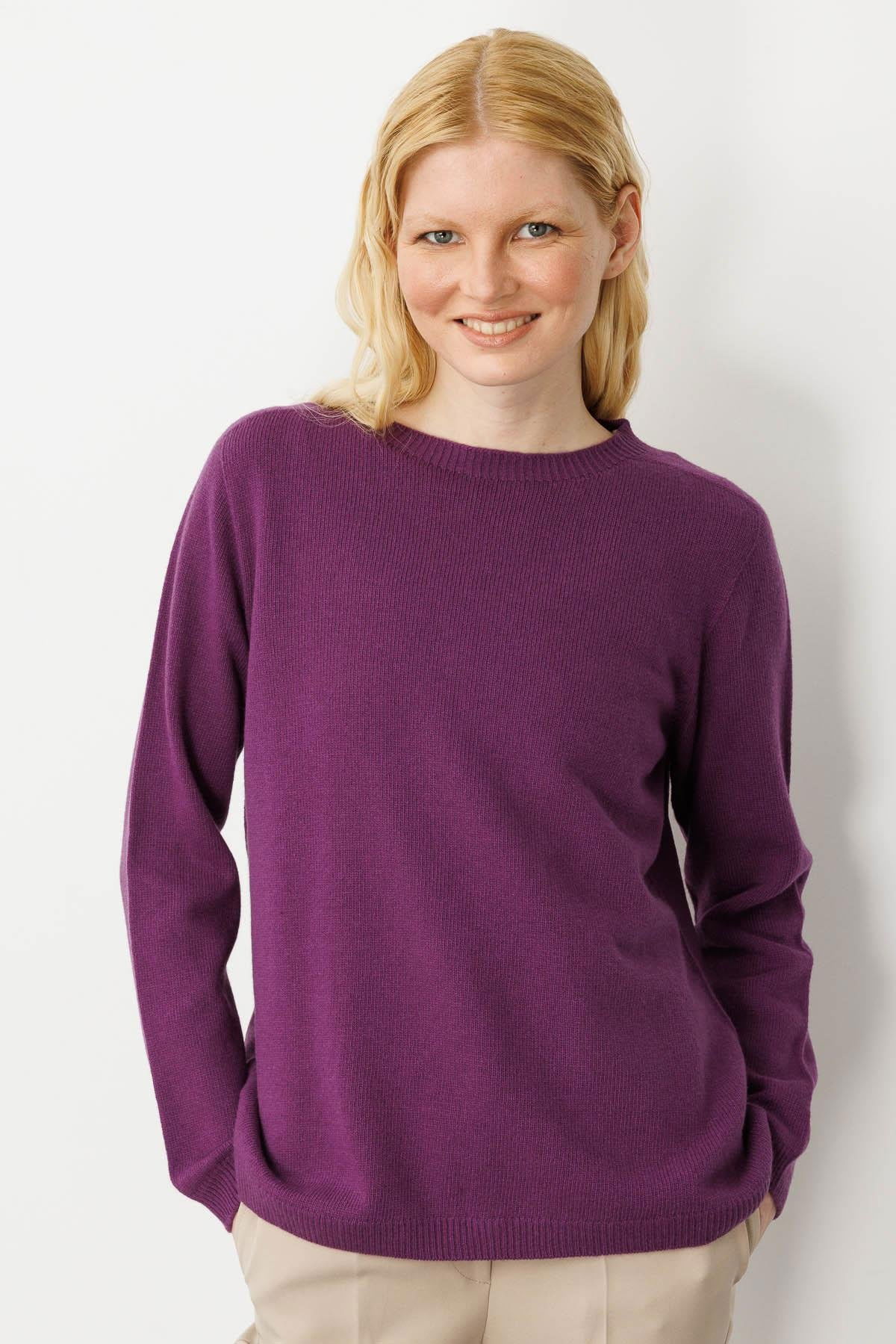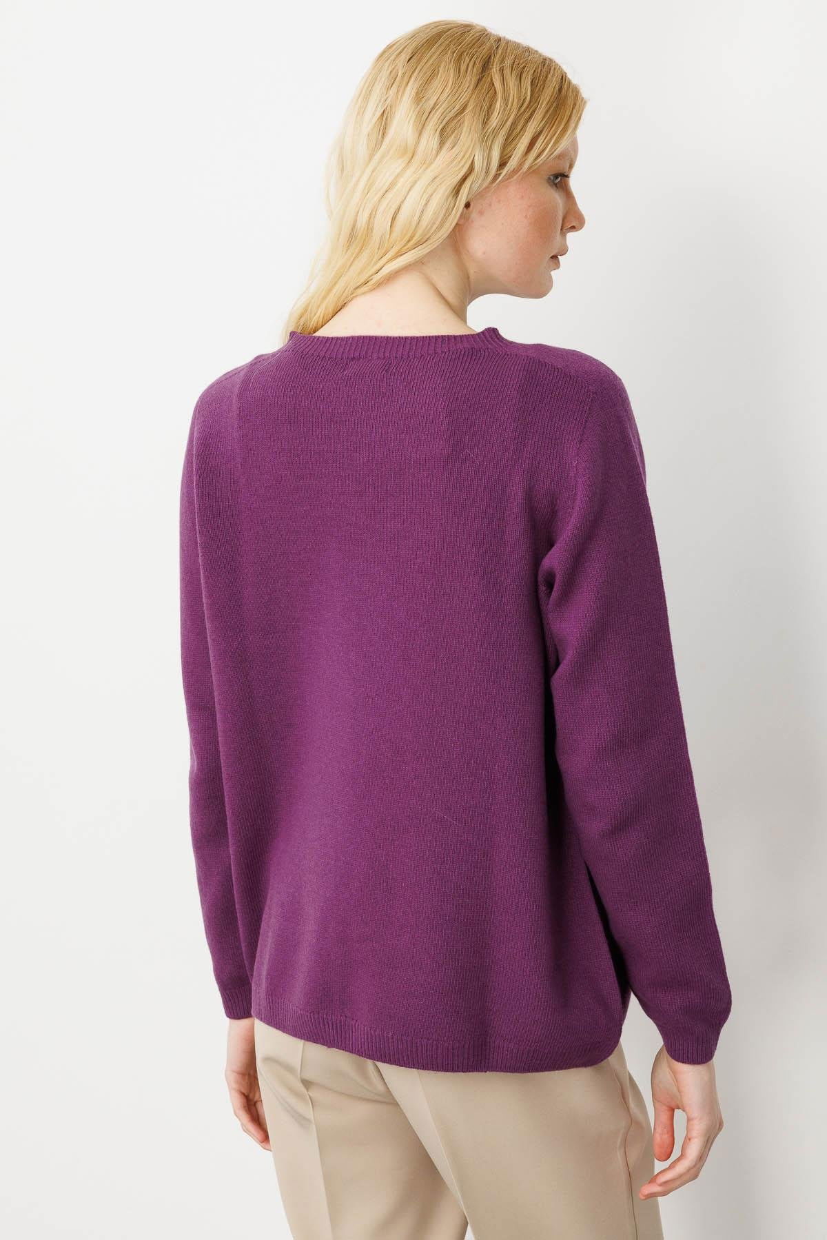 Desen Triko Kadın Sıfır Yaka Klasik Yün Kazak 23163 A.Mor