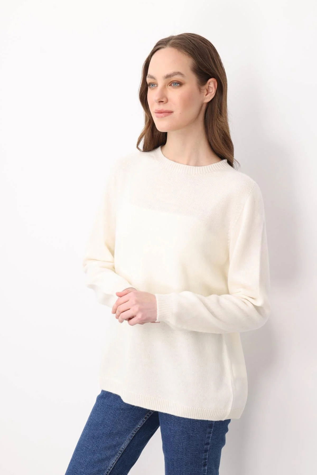 Detay: Sıfır yaka, yün karışımlı kazak;