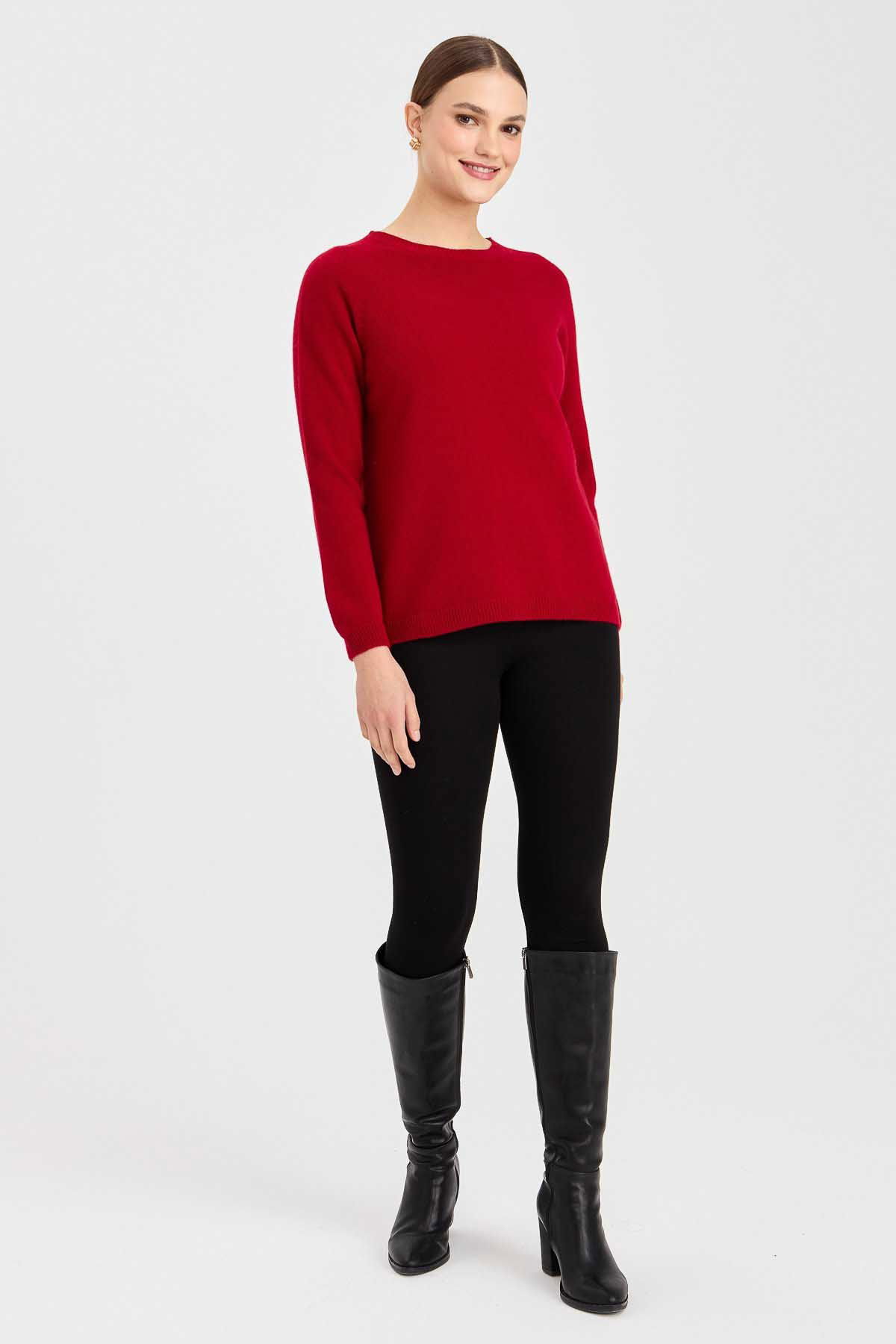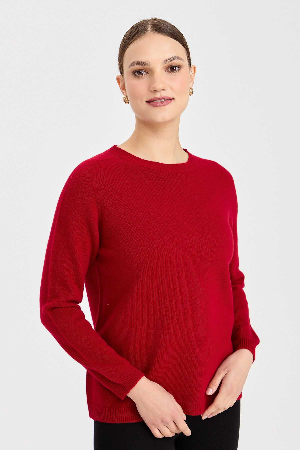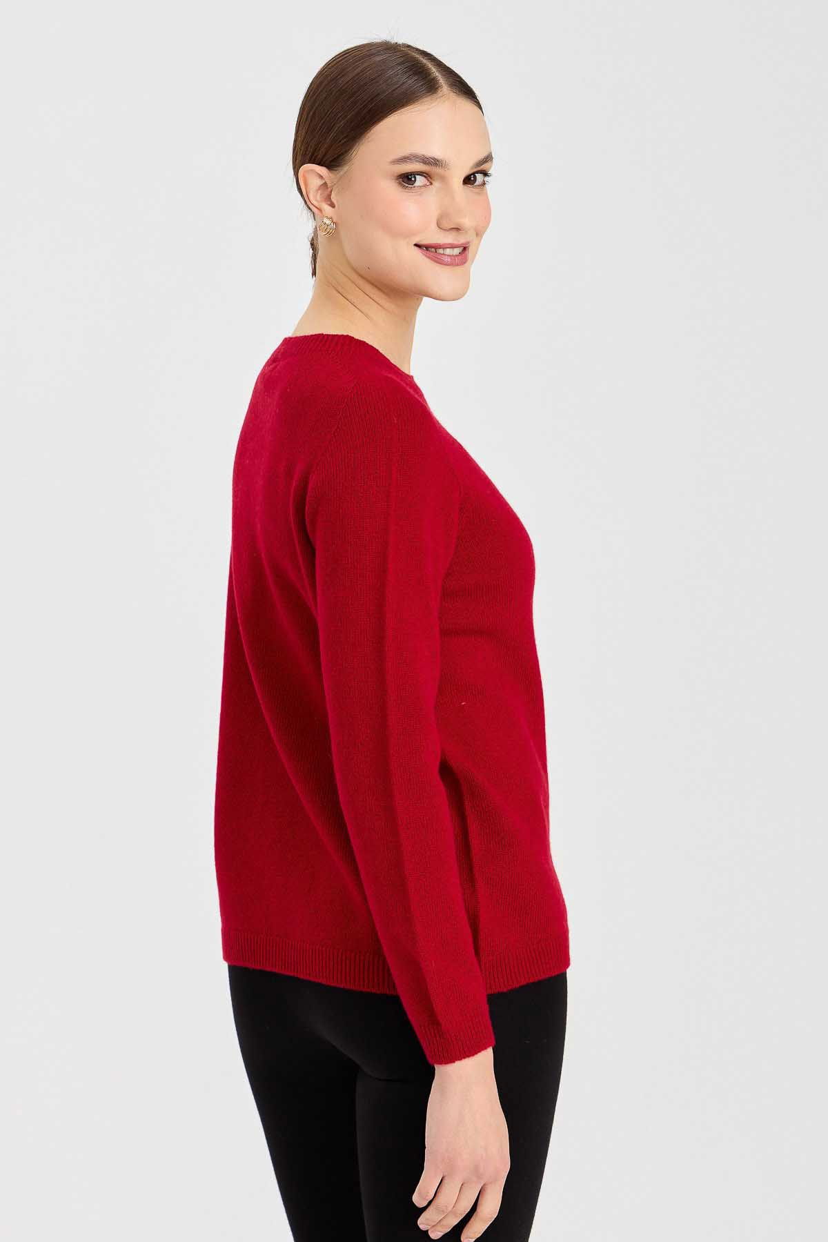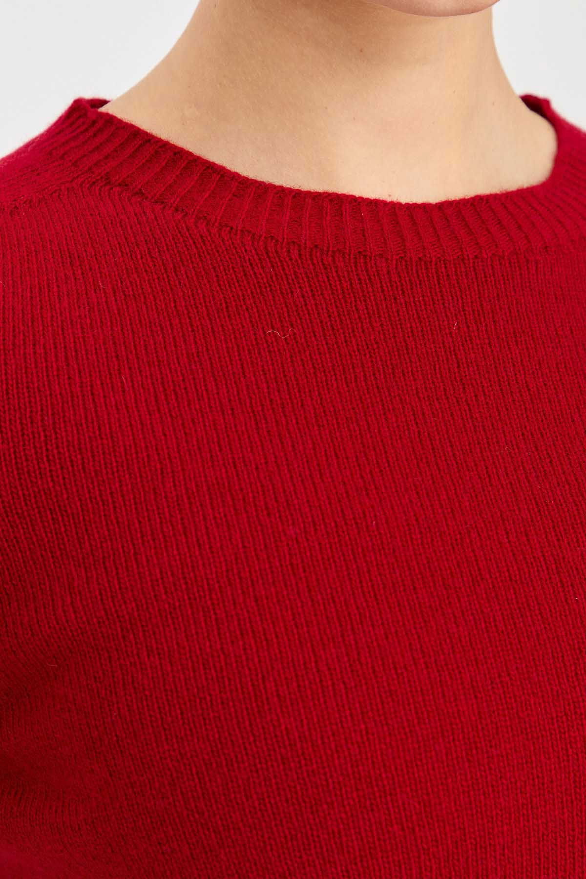 Desen Triko Kadın Sıfır Yaka Klasik Yün Kazak 23163 K.Kırmızı