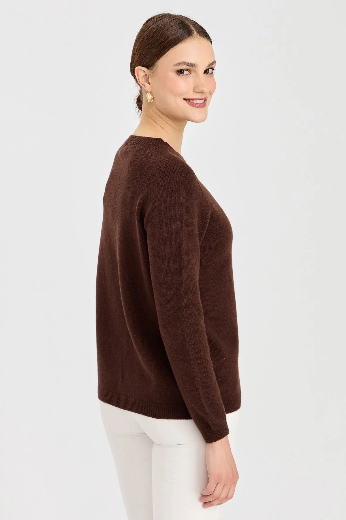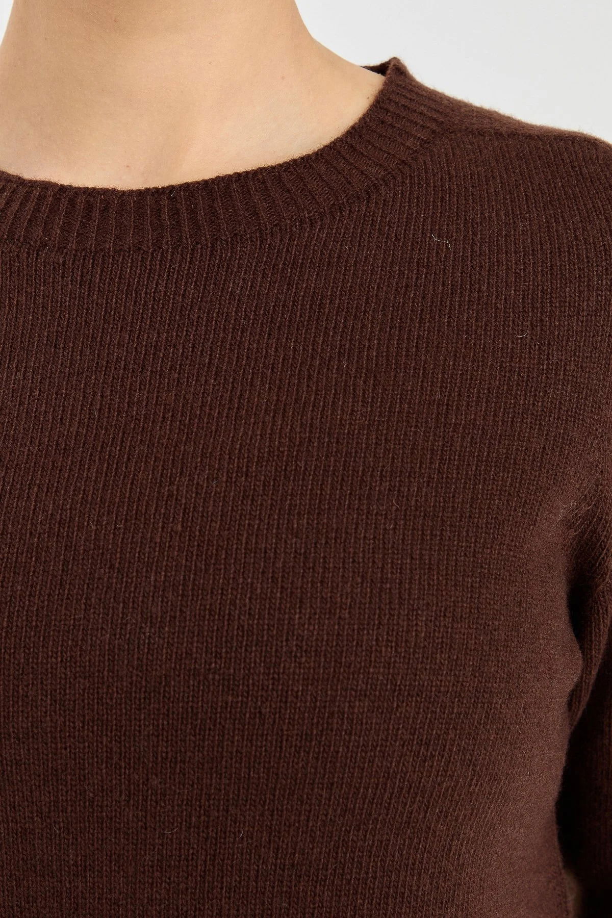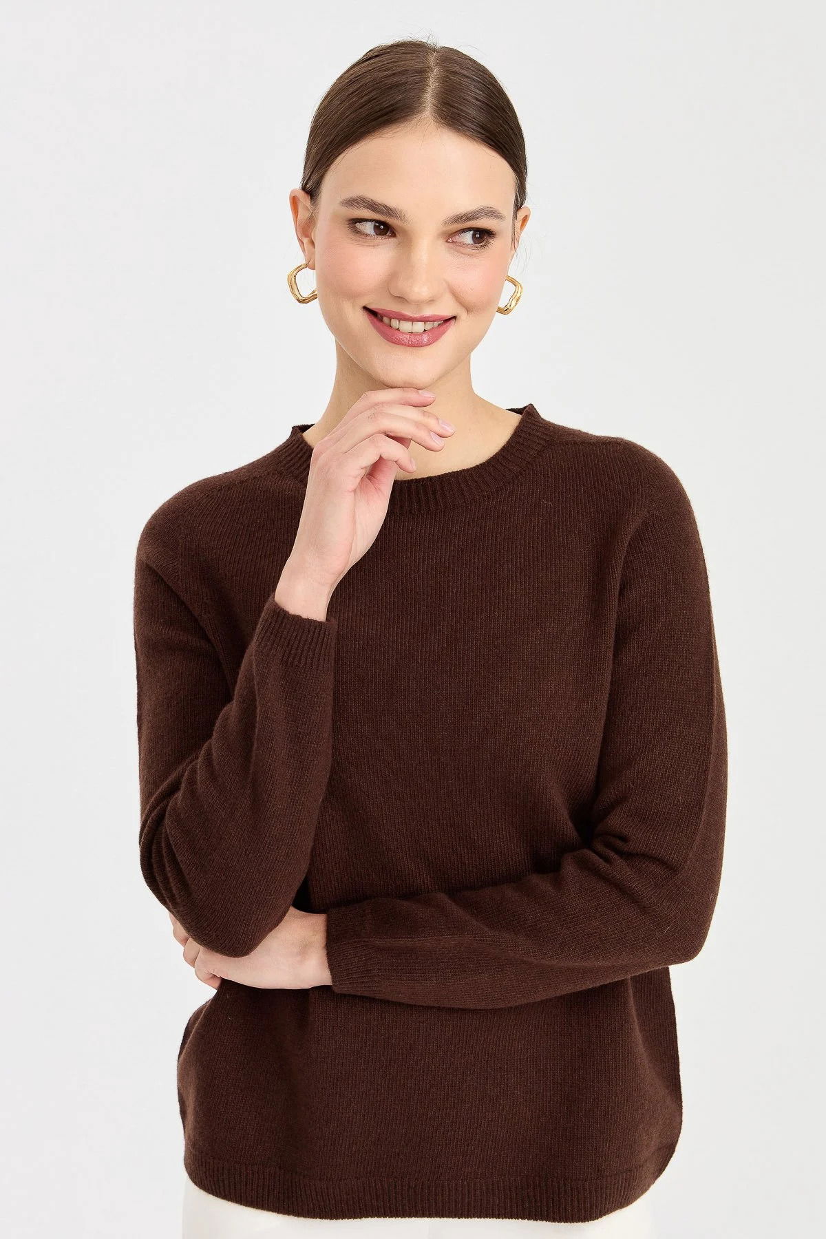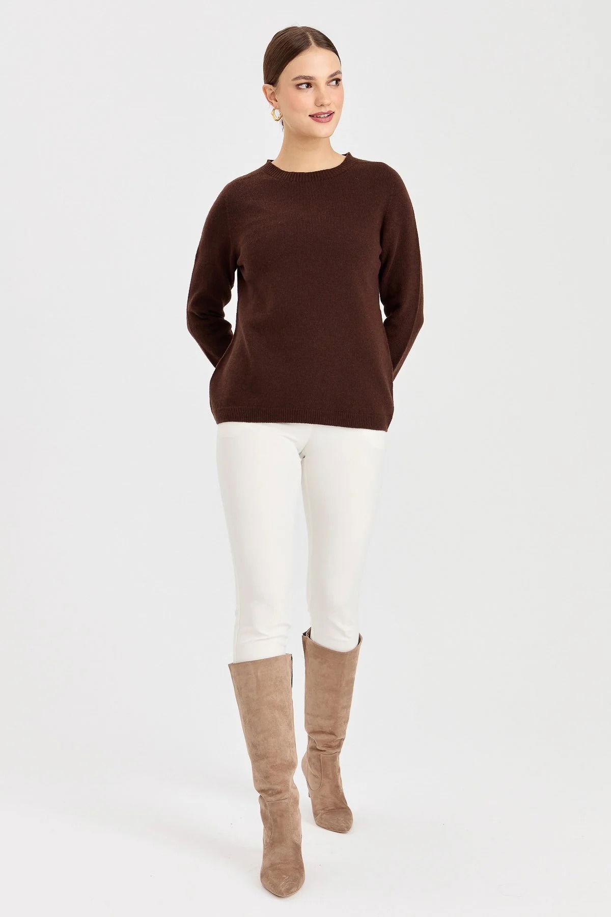 Detay: Sıfır yaka, yün karışımlı kazak;