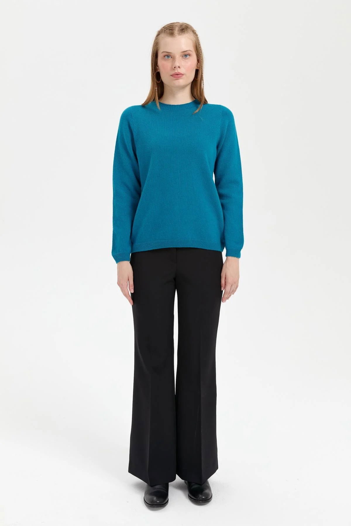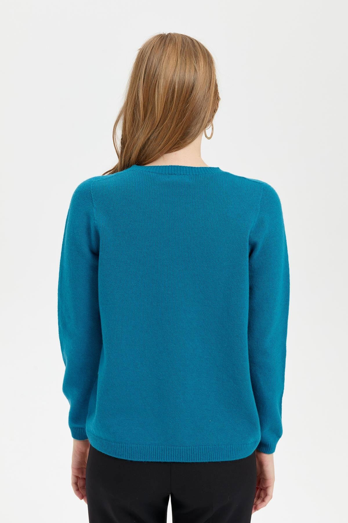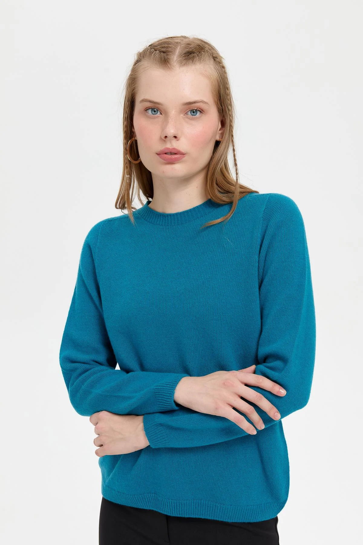 Detay: Sıfır yaka, yün karışımlı kazak;