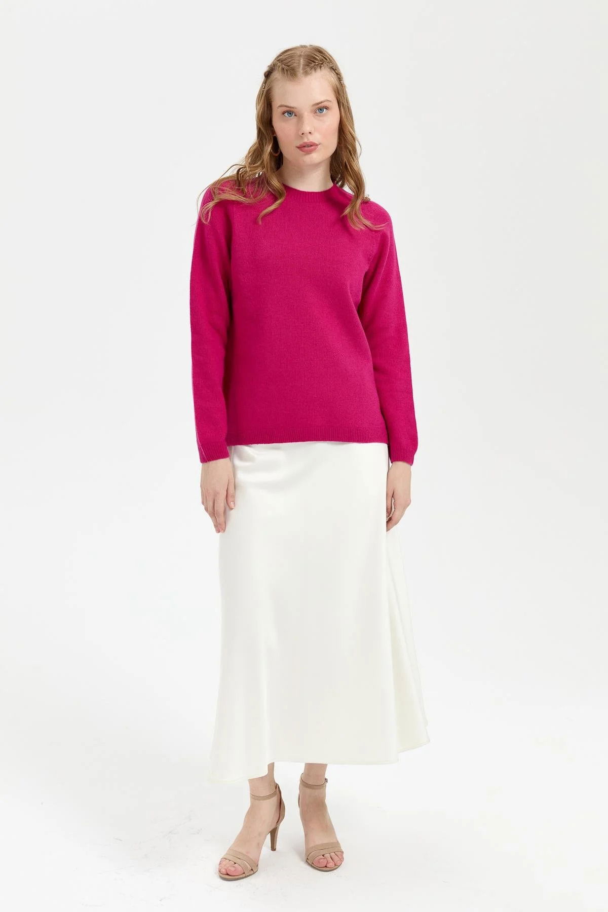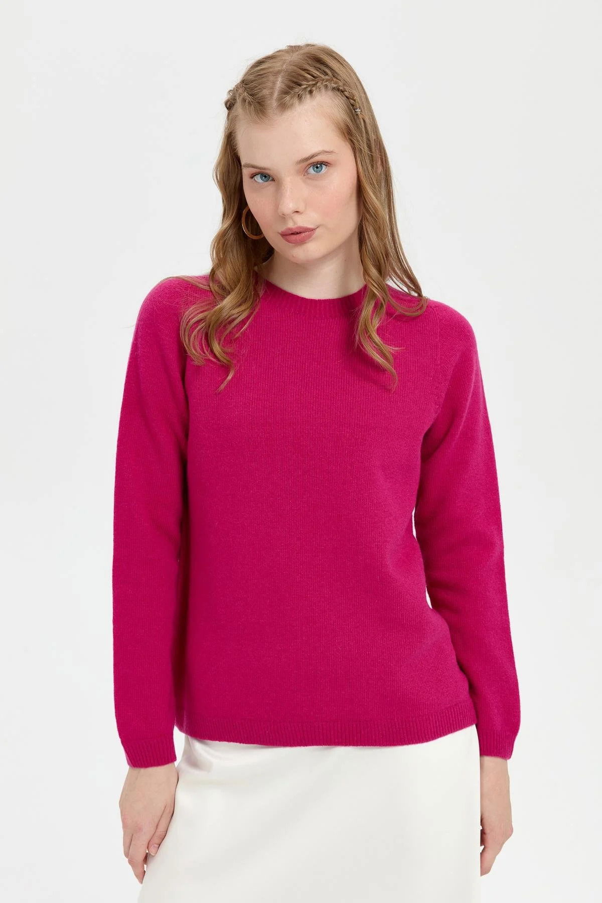 Detay: Sıfır yaka, yün karışımlı kazak;
