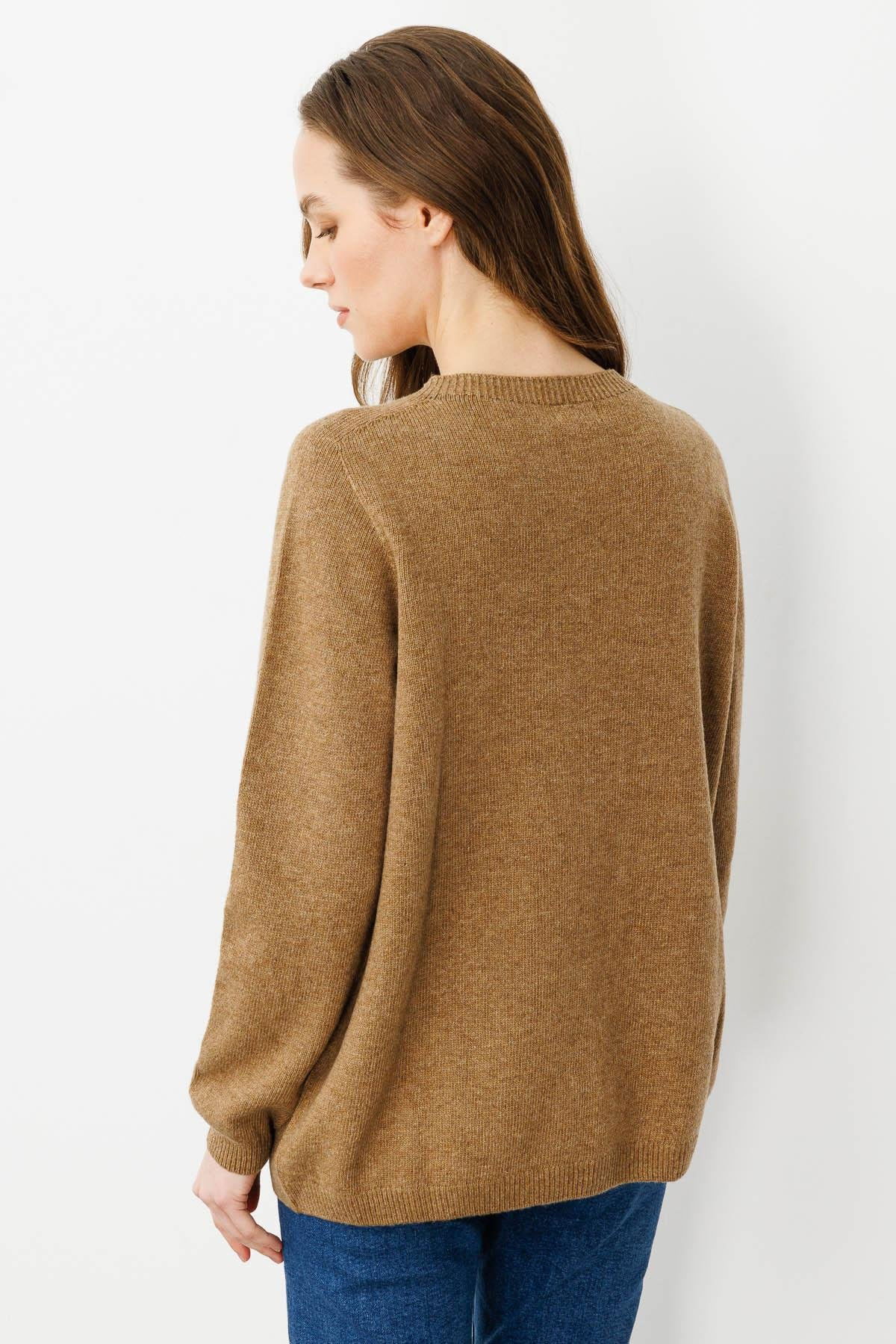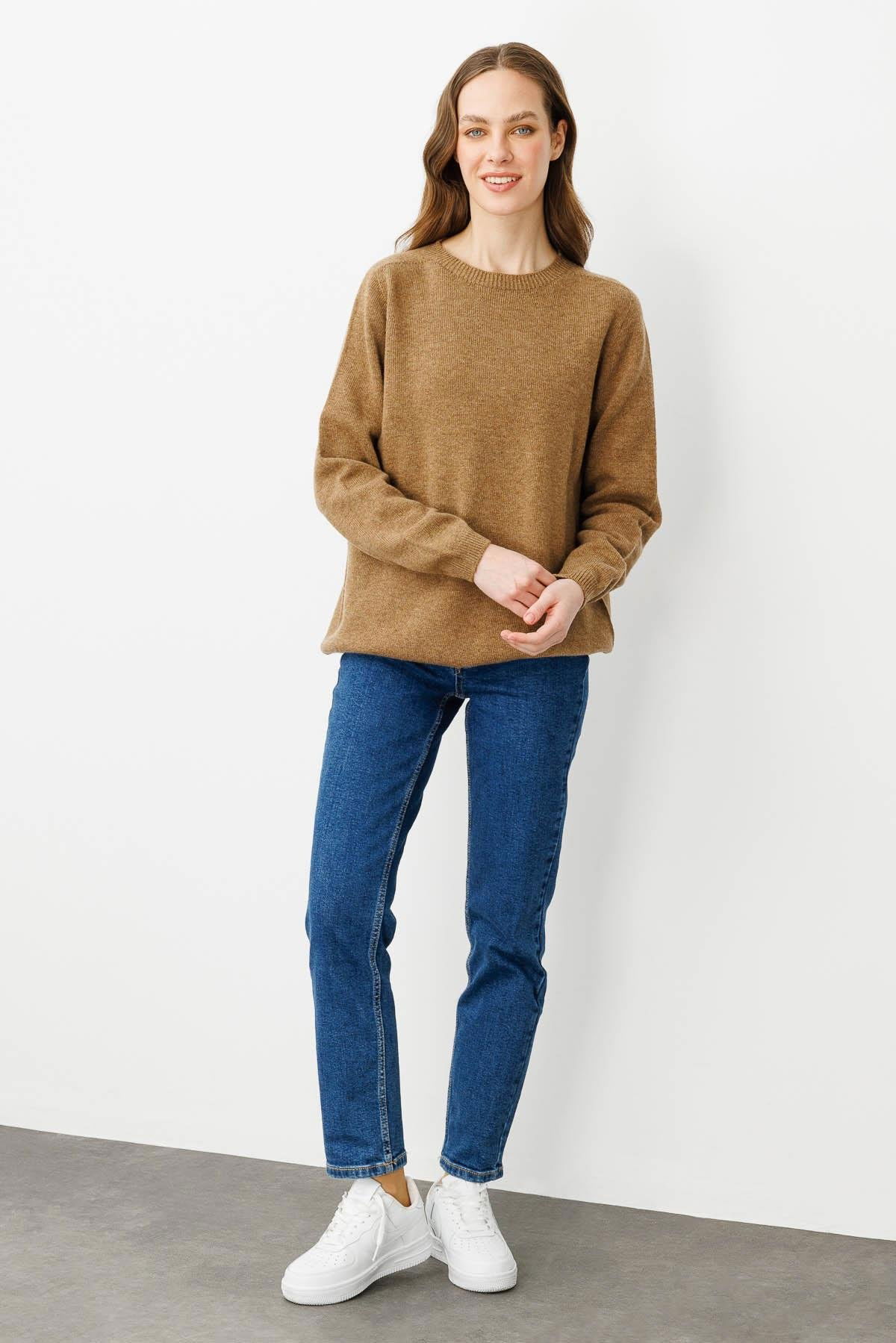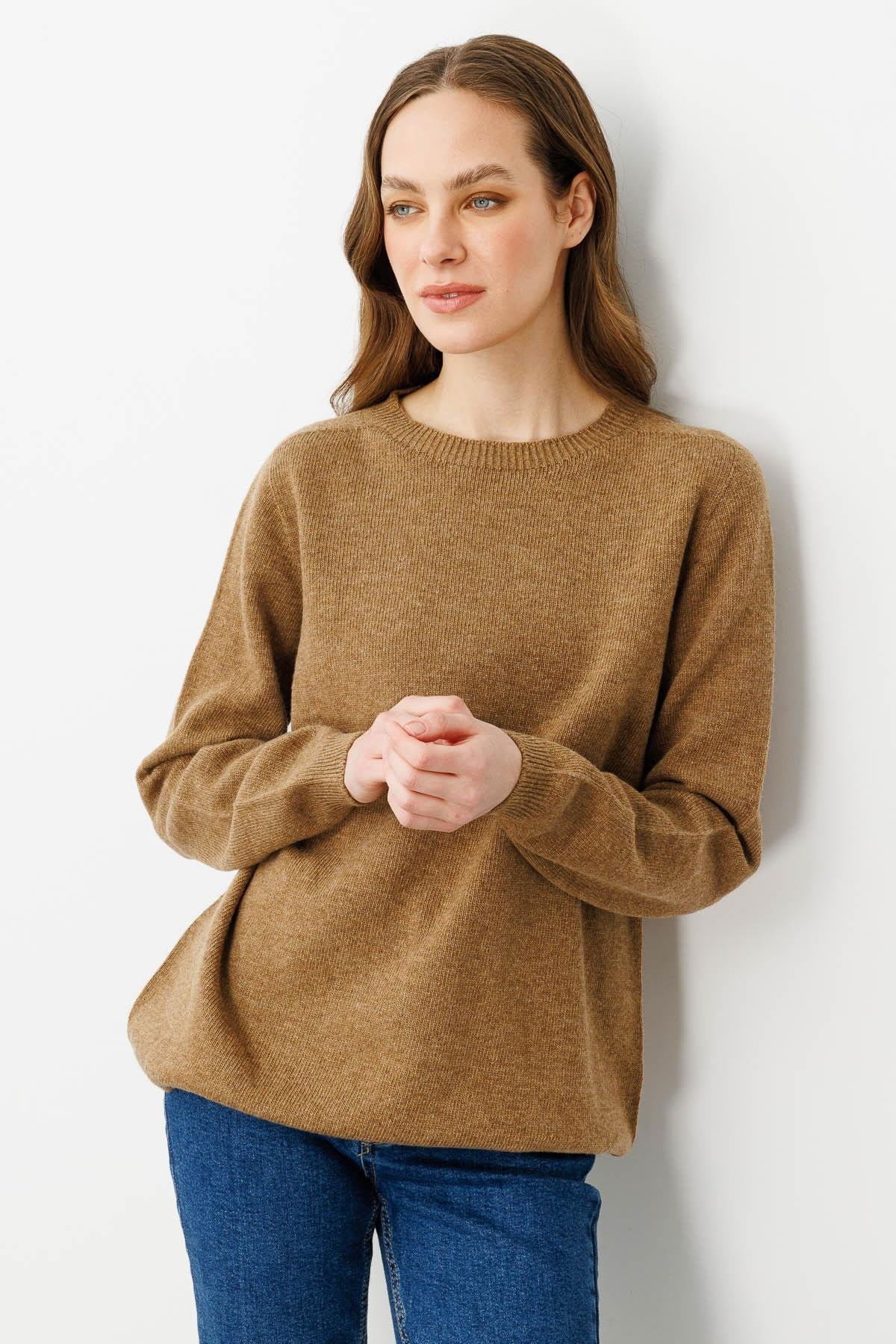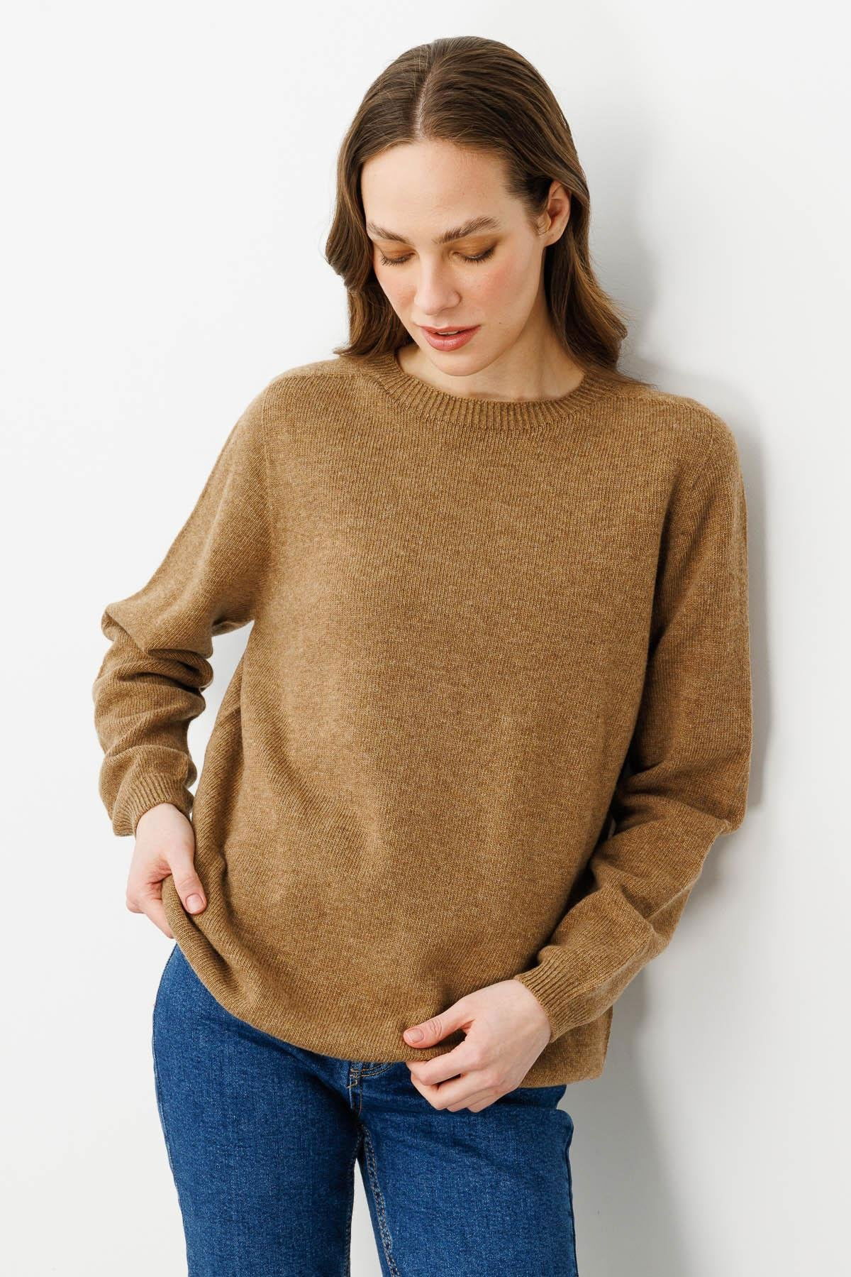 Desen Triko Kadın Sıfır Yaka Klasik Yün Kazak 23163 V. Camel