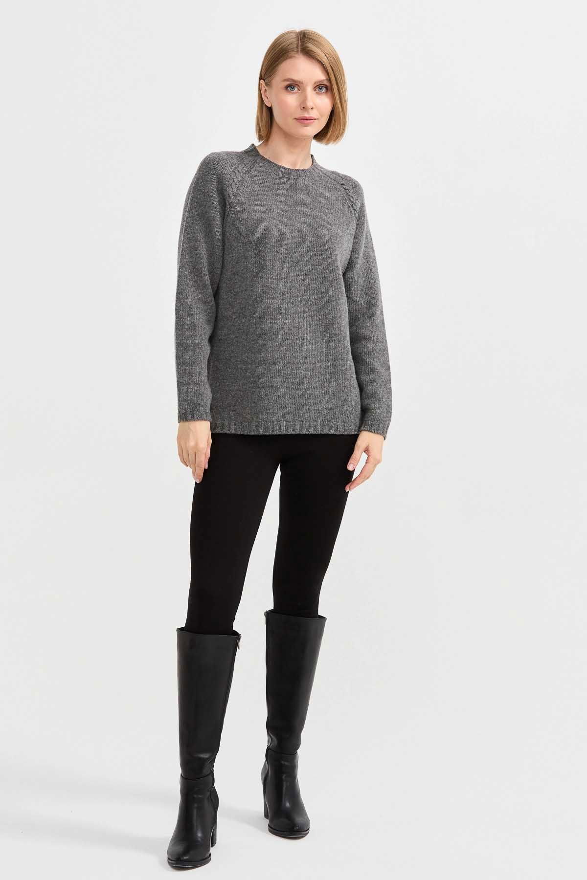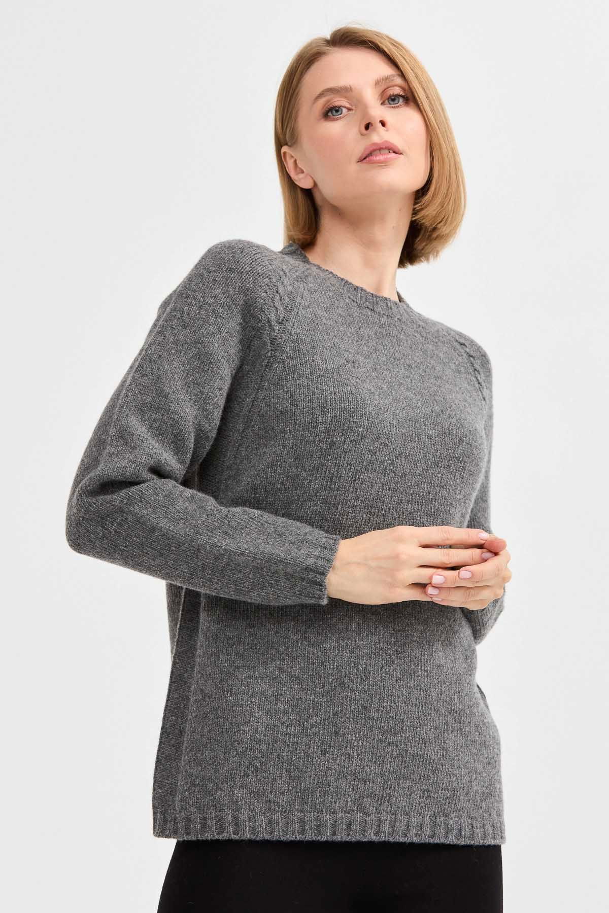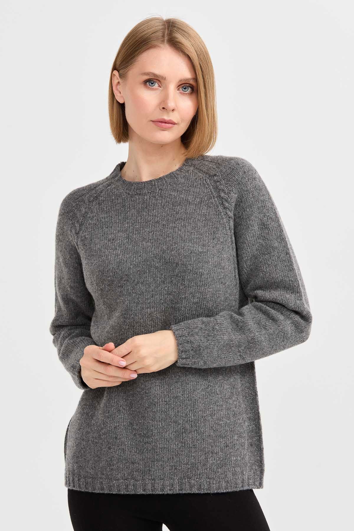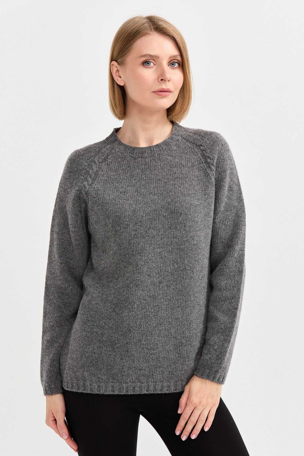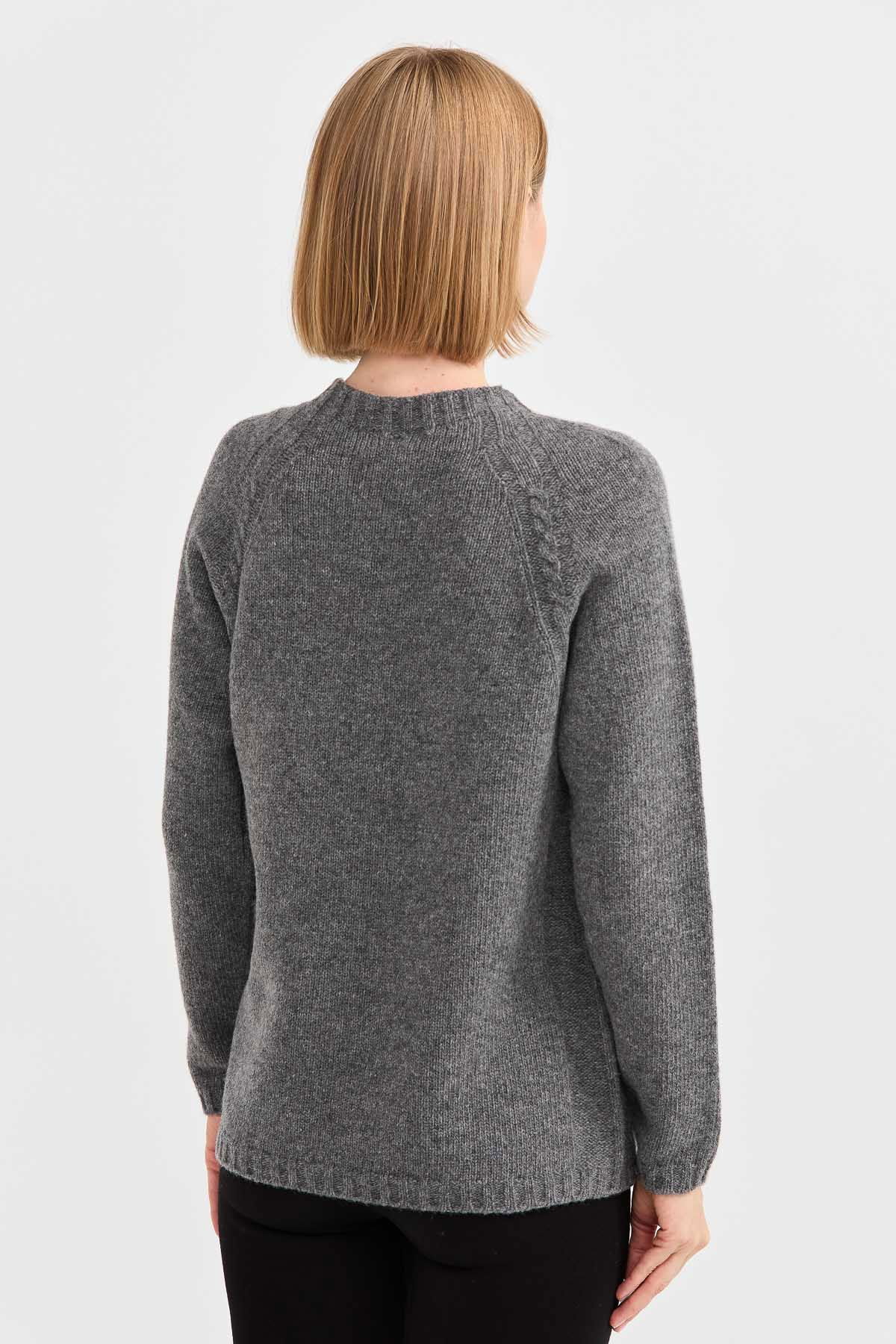 Desen Triko Kadın Sıfır Yaka Omzu Saç Örgülü Yün Kazak 22096 Füme