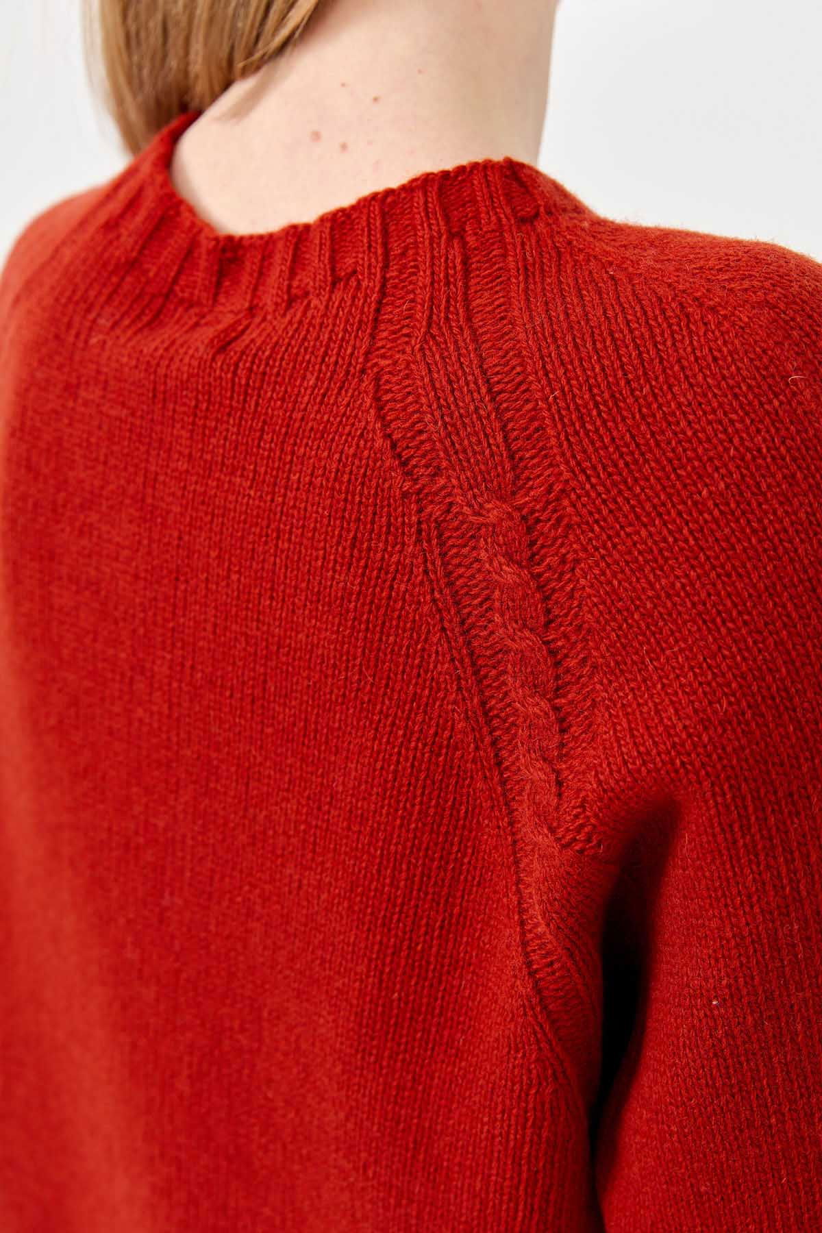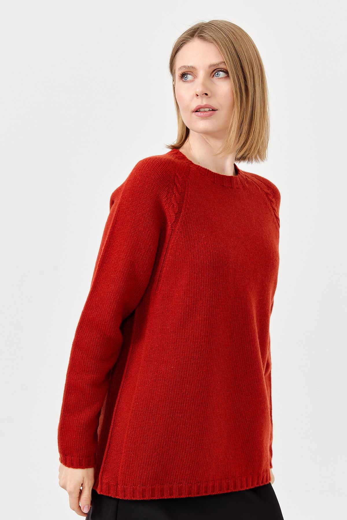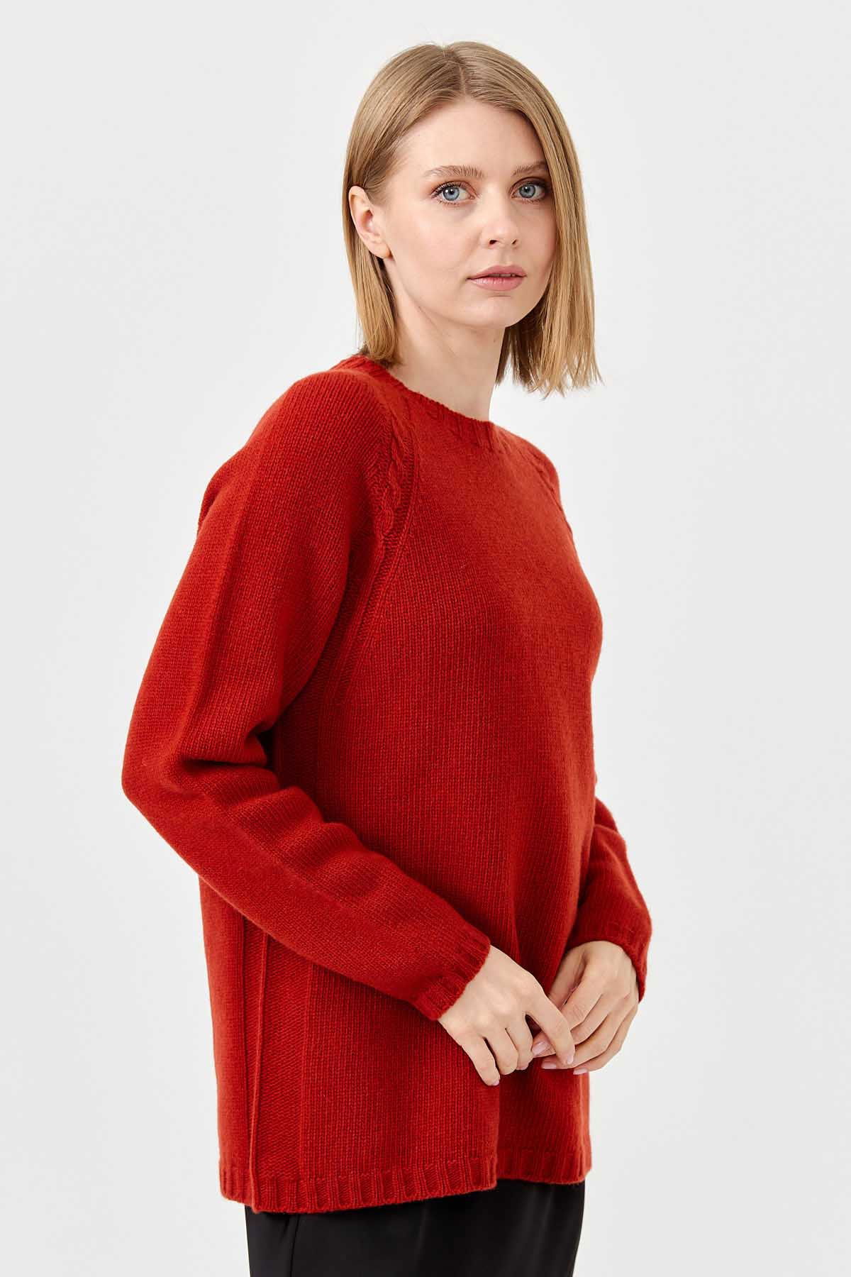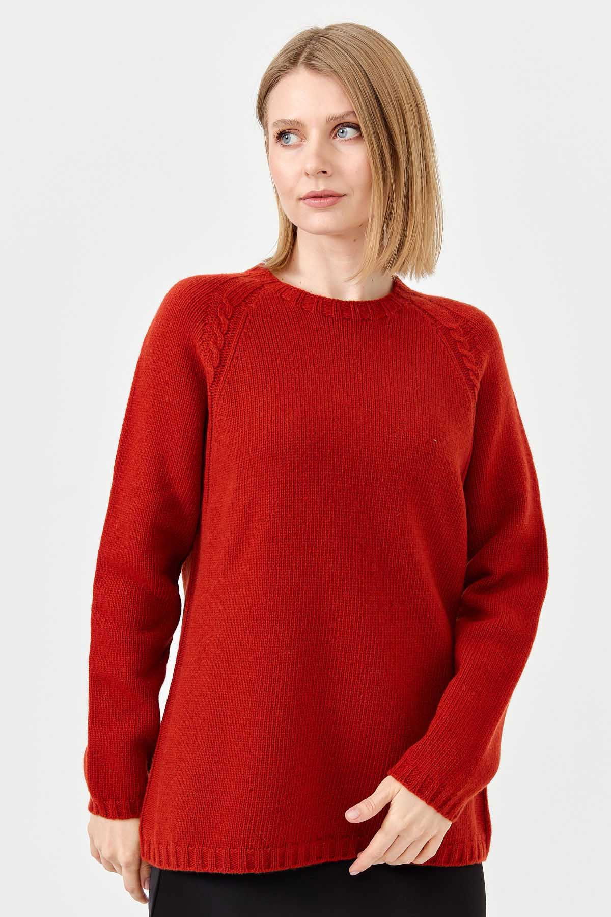 Desen Triko Kadın Sıfır Yaka Omzu Saç Örgülü Yün Kazak 22096 Kiremit