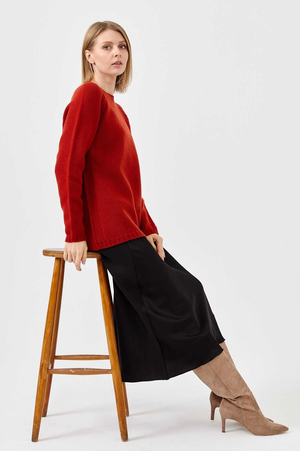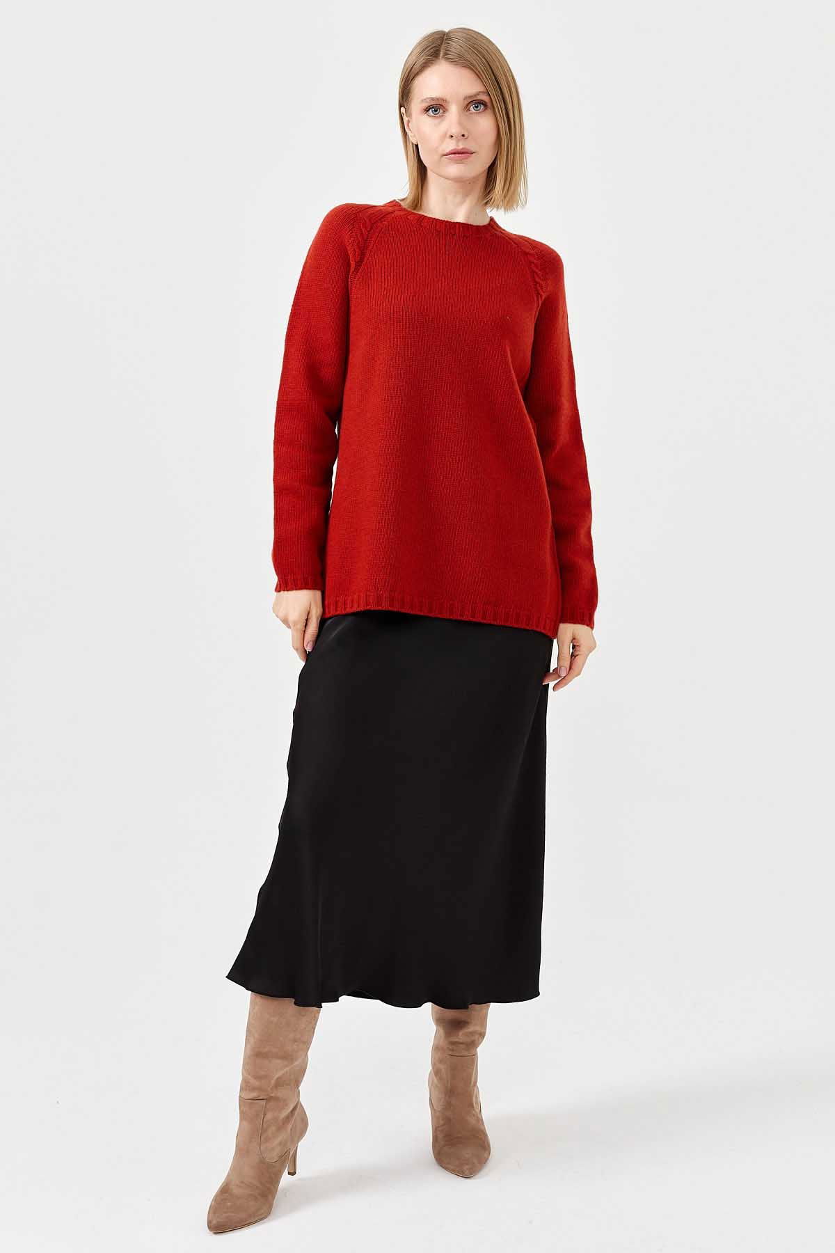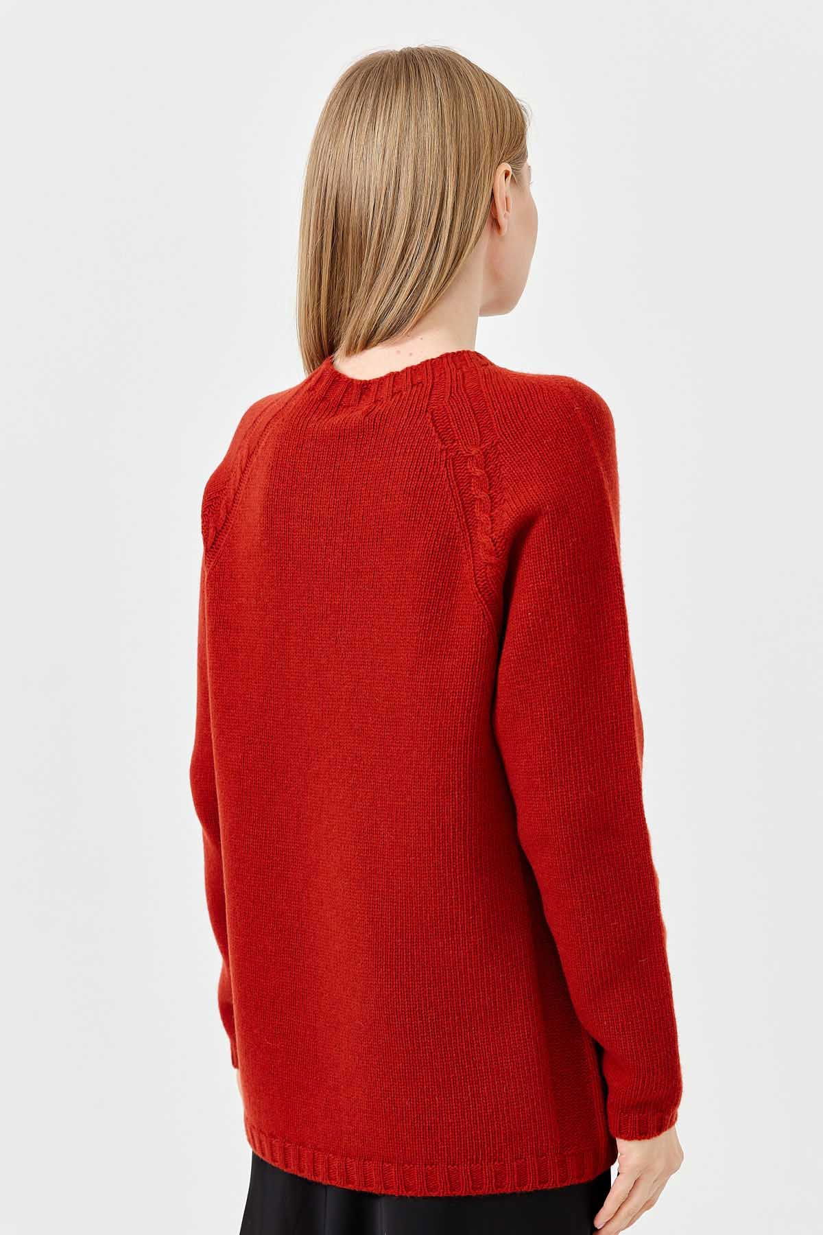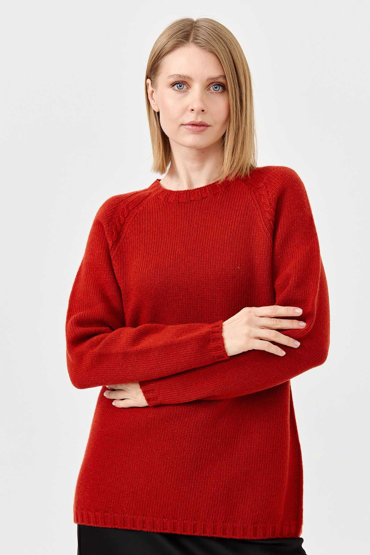 Desen Triko Kadın Sıfır Yaka Omzu Saç Örgülü Yün Kazak 22096 Kiremit