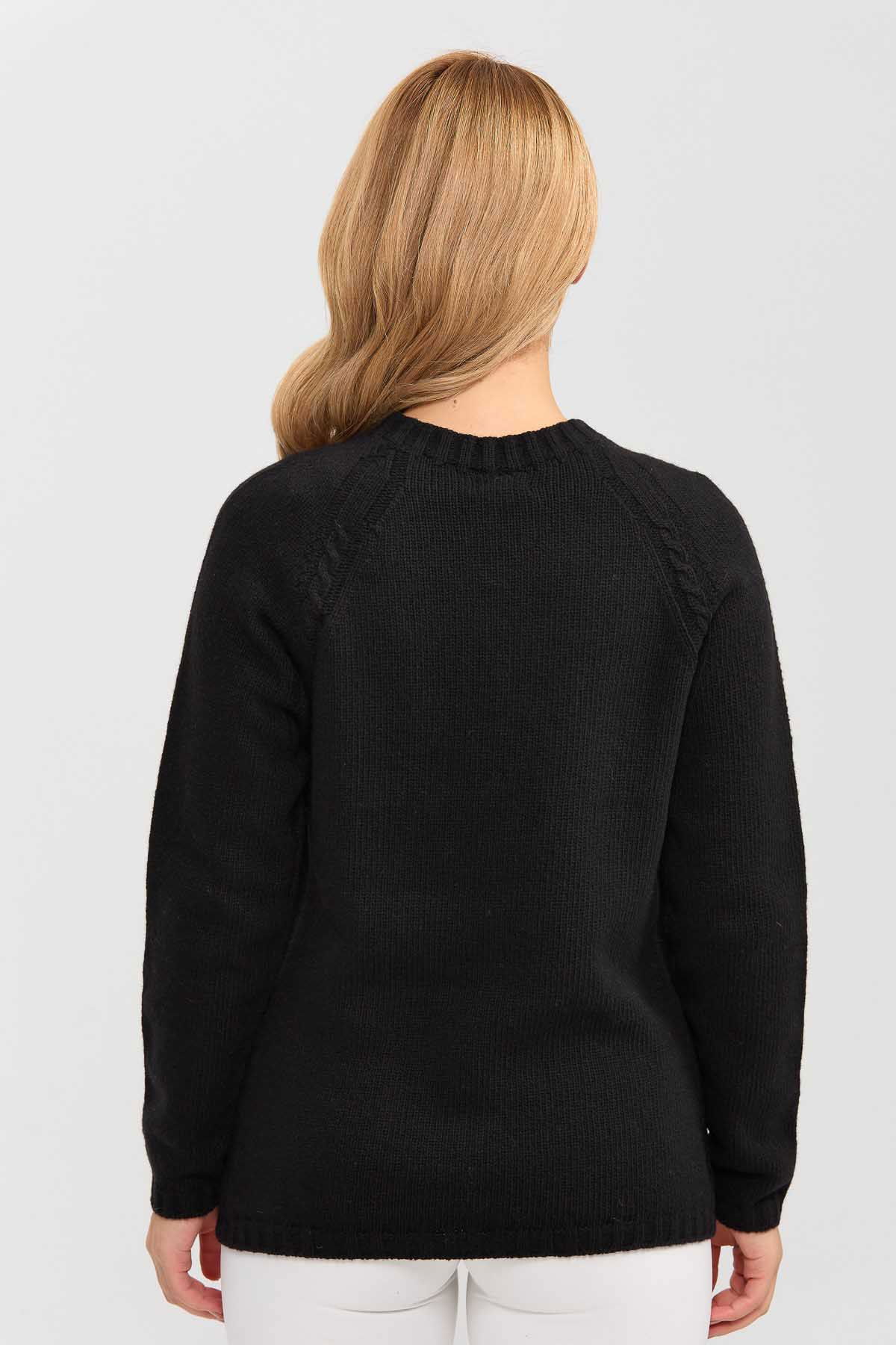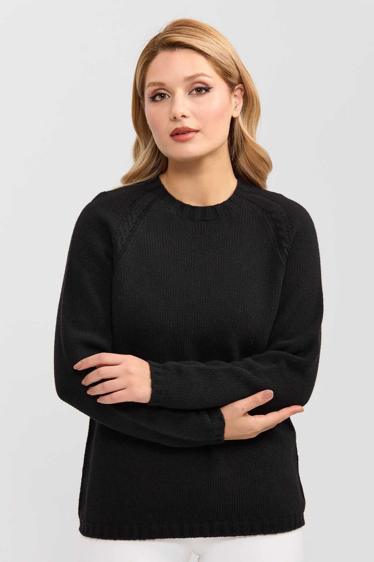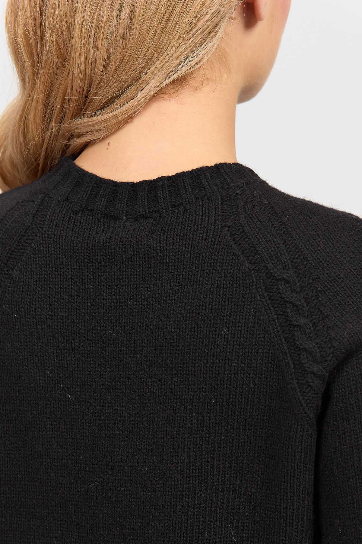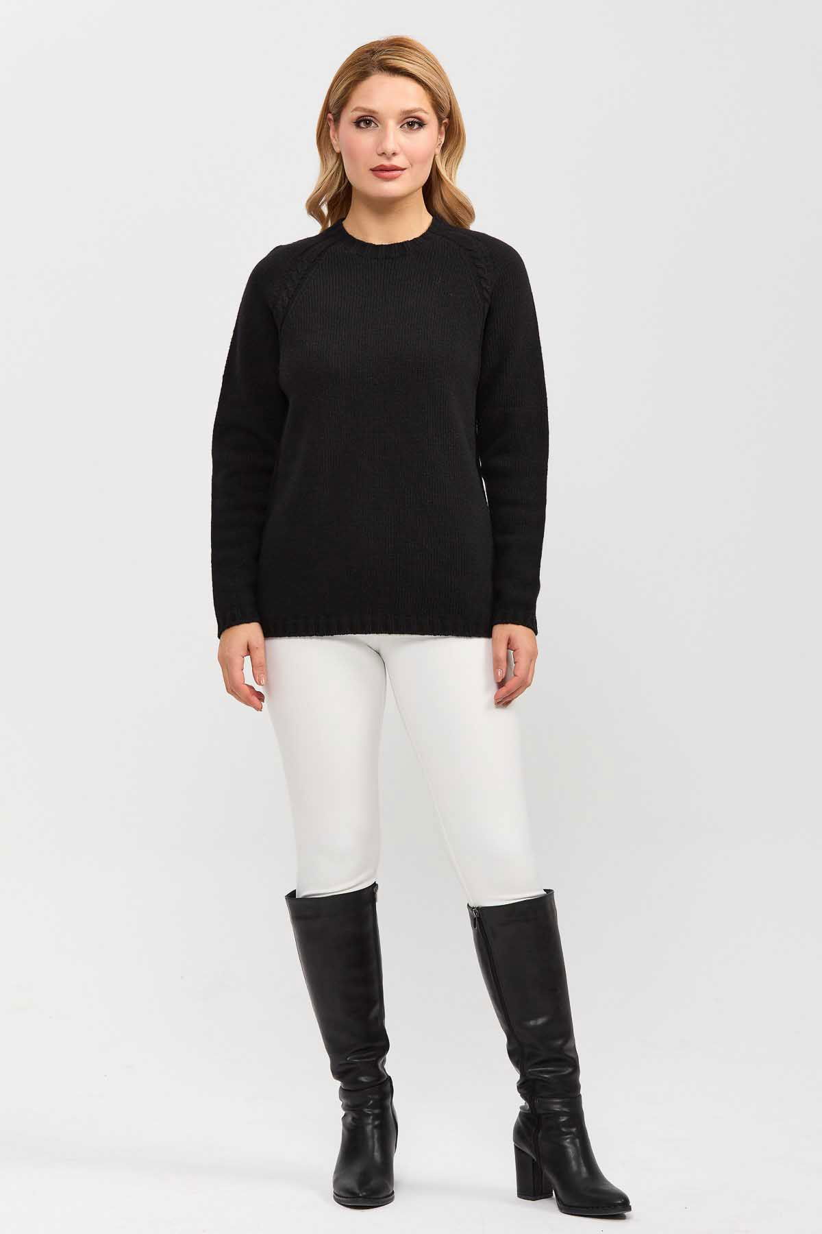 Detay: Sıfır yaka, yün karışımlı kazak;