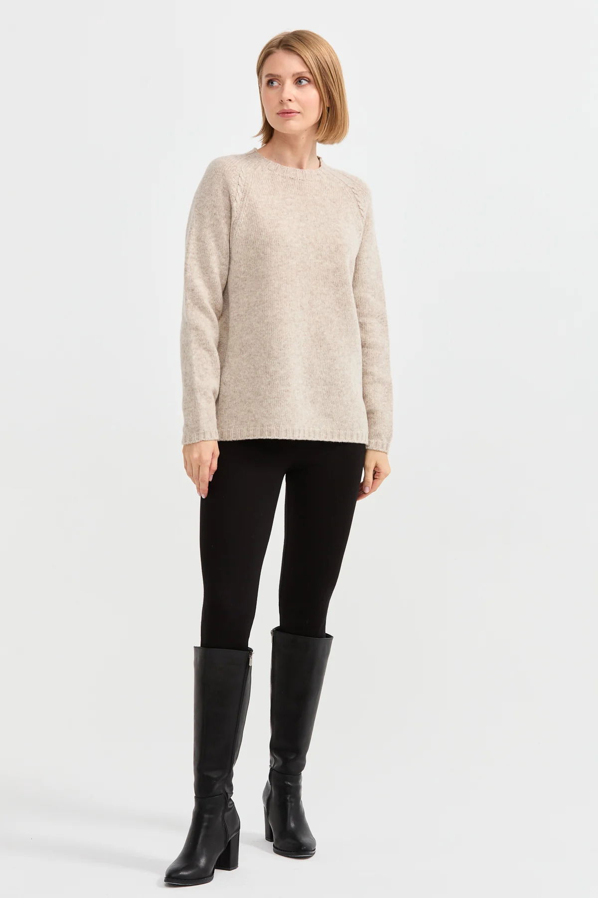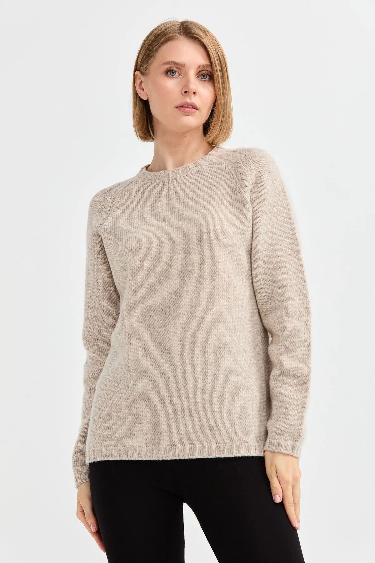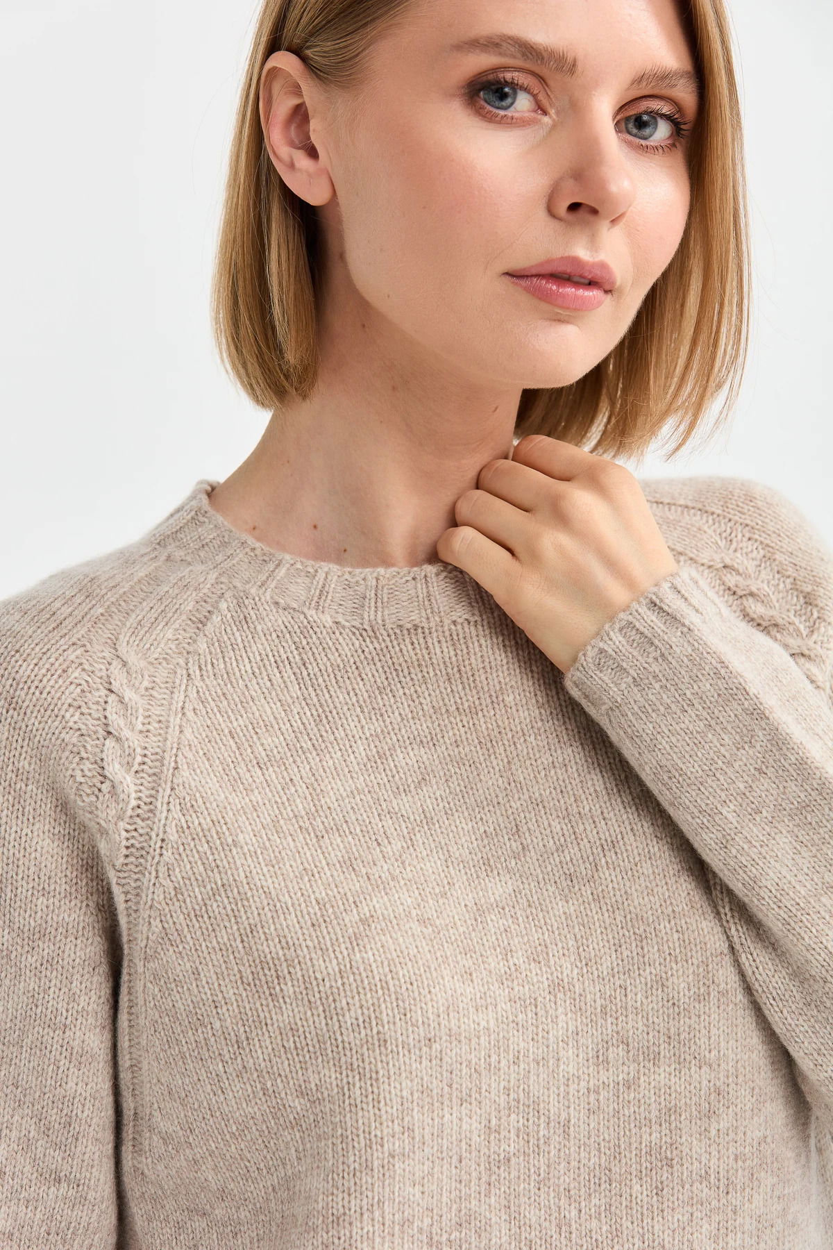 Desen Triko Kadın Sıfır Yaka Omzu Saç Örgülü Yün Kazak 22096 V. Bej
