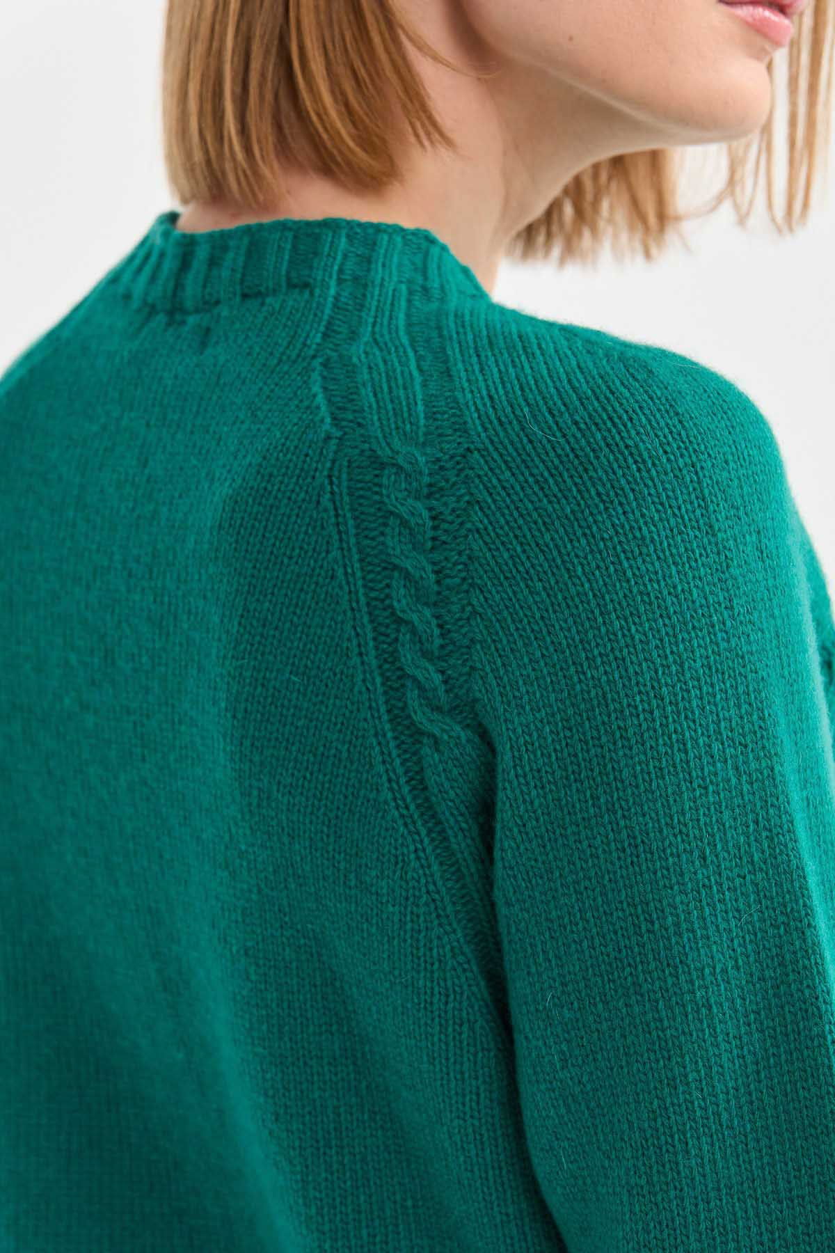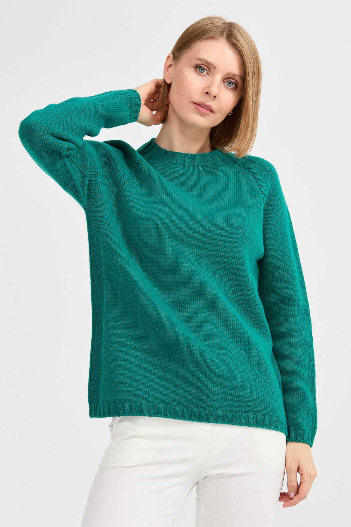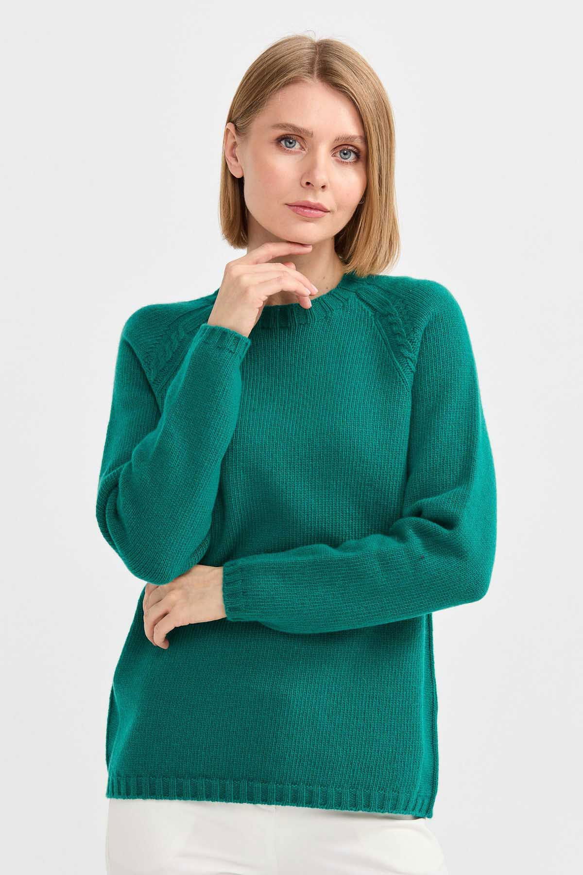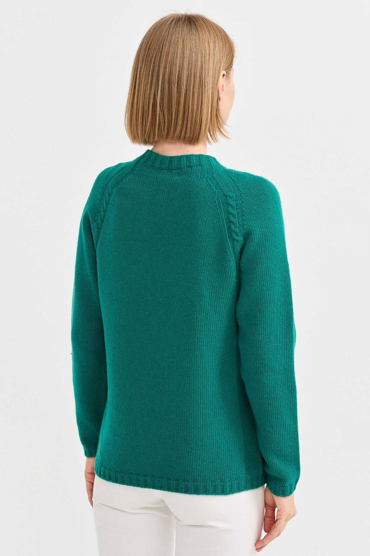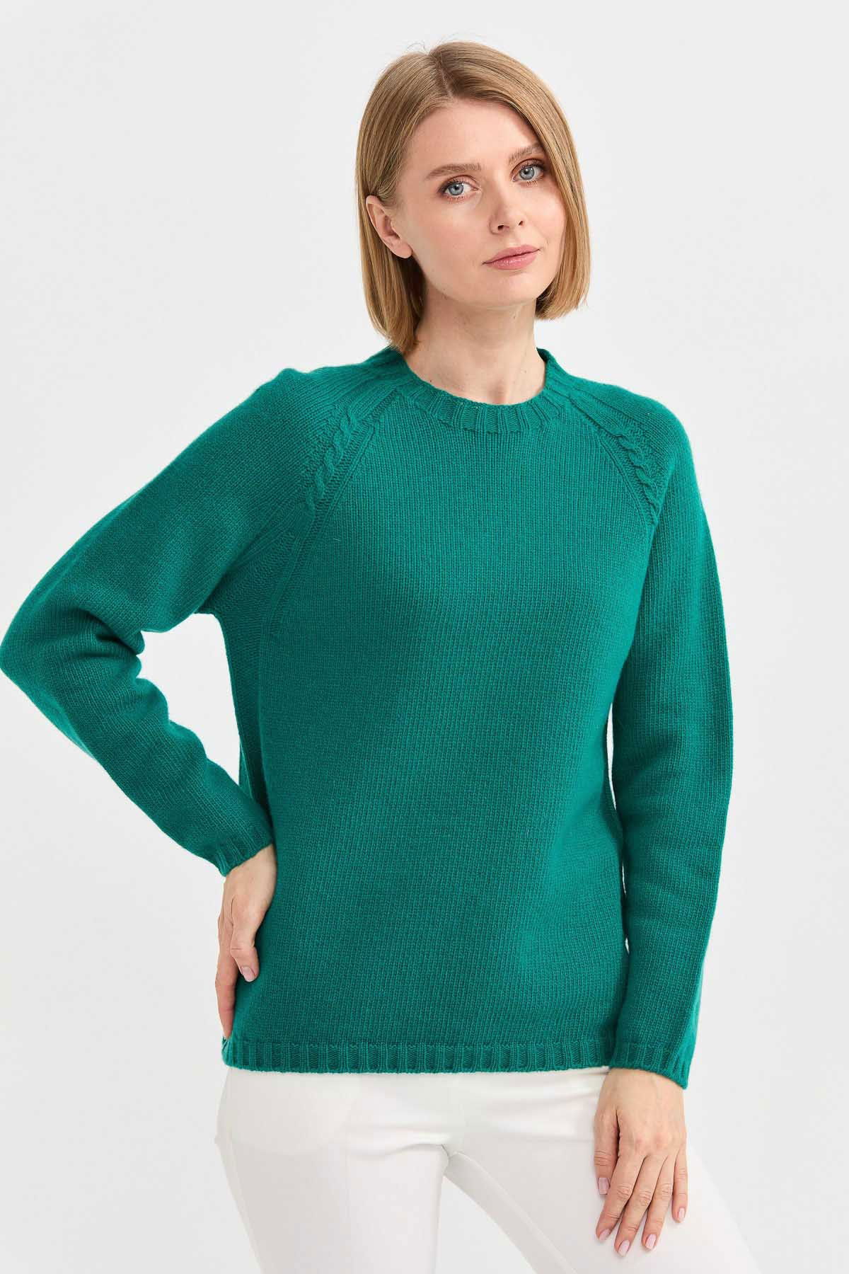Desen Triko Kadın Sıfır Yaka Omzu Saç Örgülü Yün Kazak 22096 Yeşil