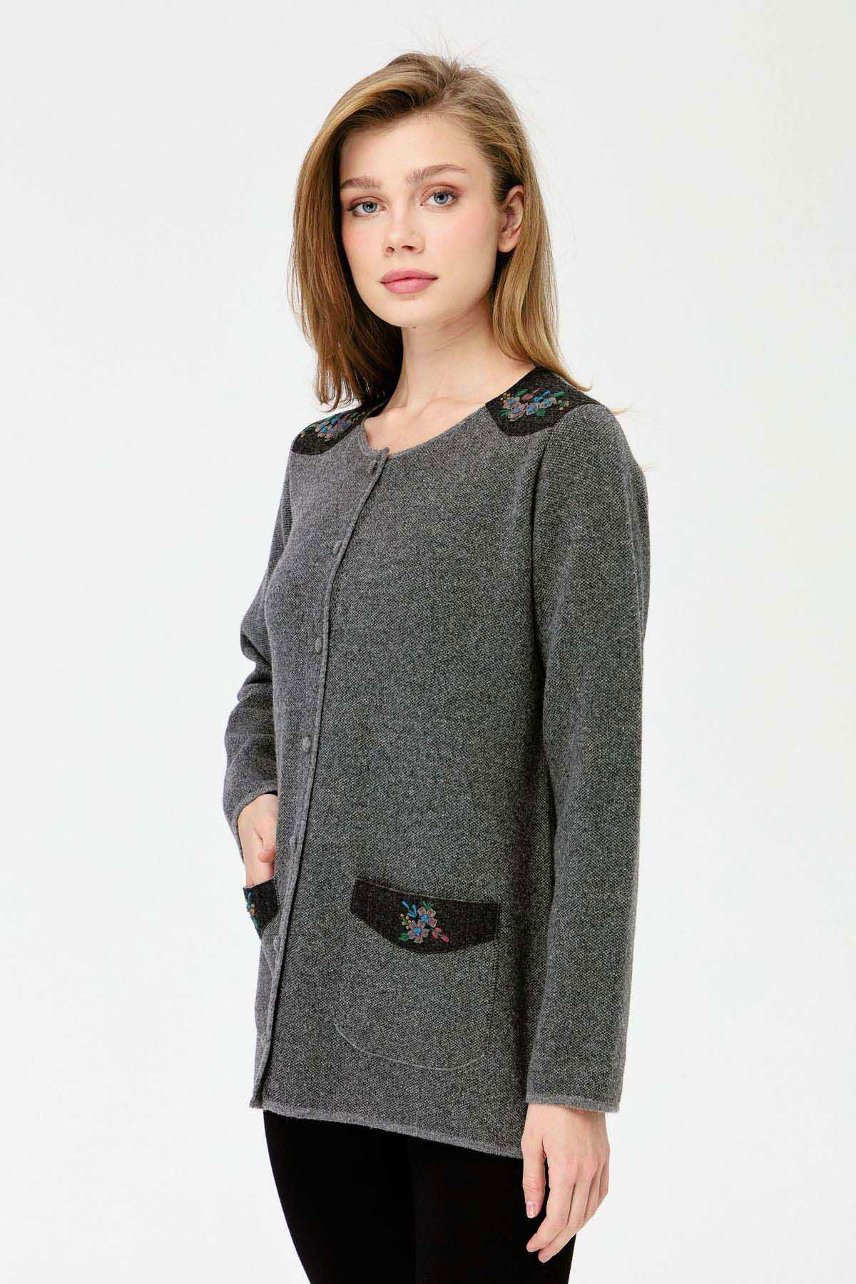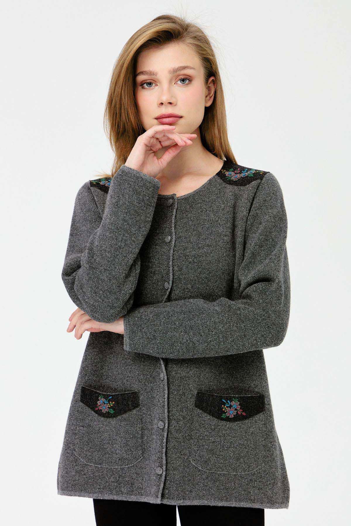 Detay: Sıfır yaka, uzun kollu, düz renk hırka;