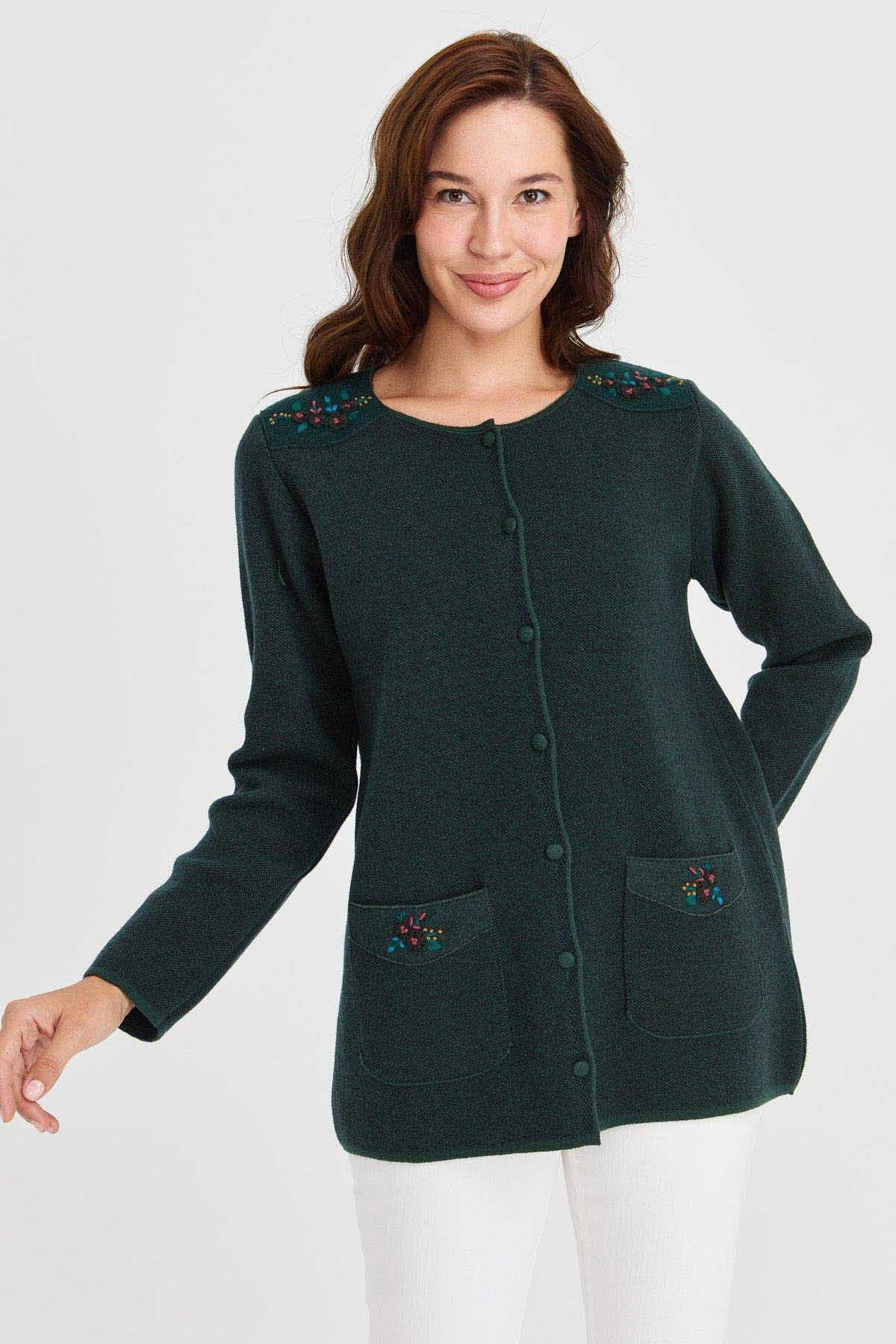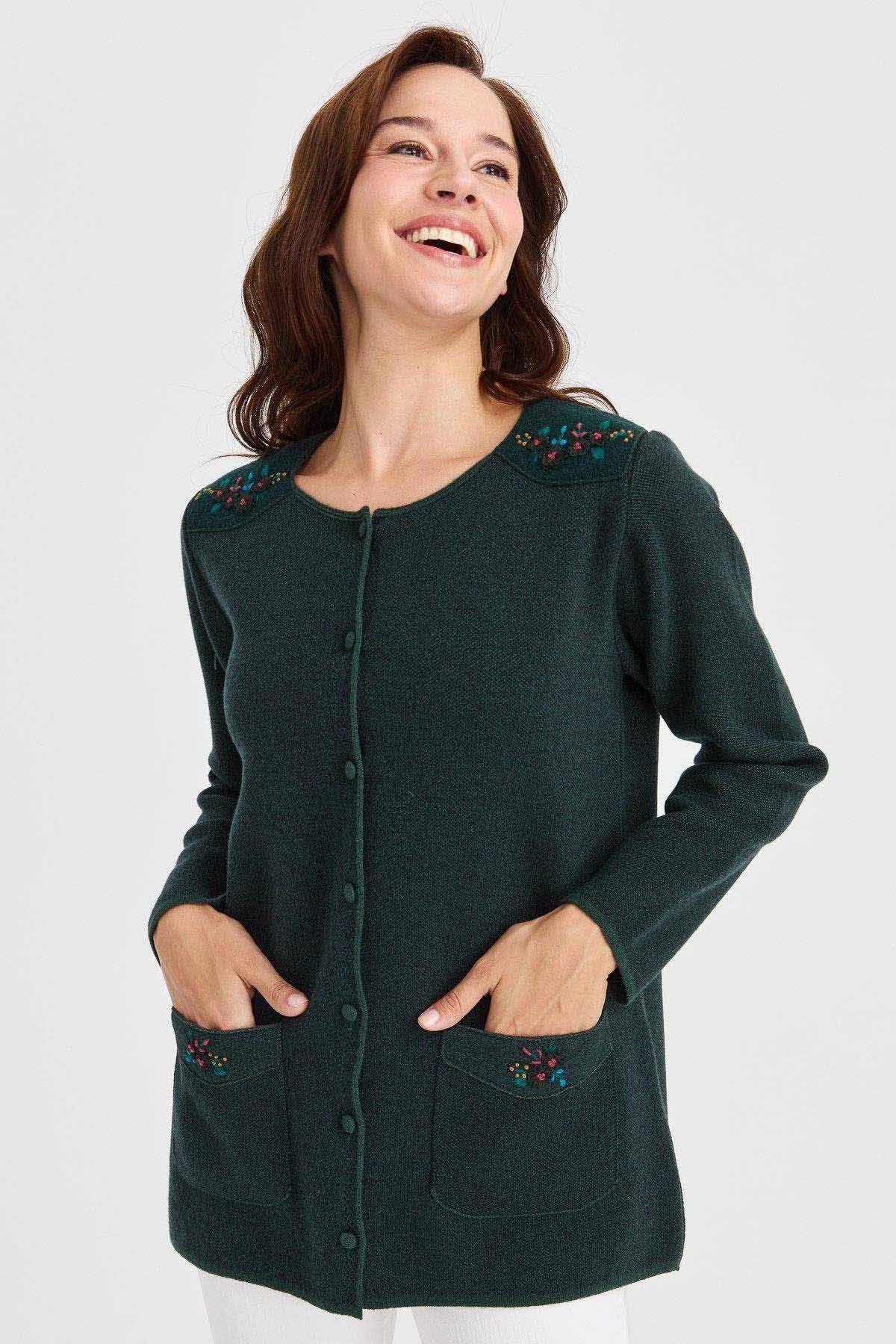 Detay: Sıfır yaka, uzun kollu, düz renk hırka;