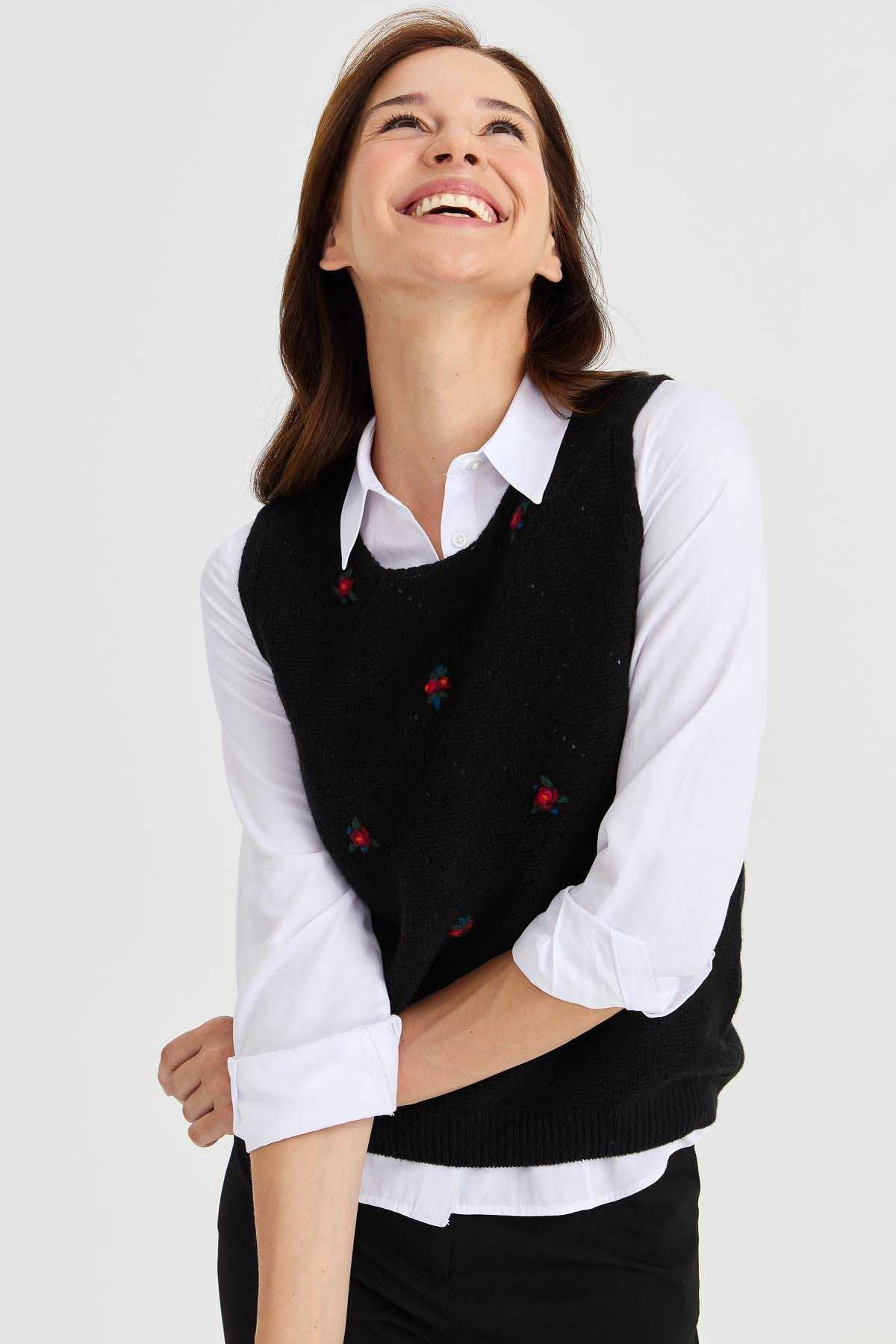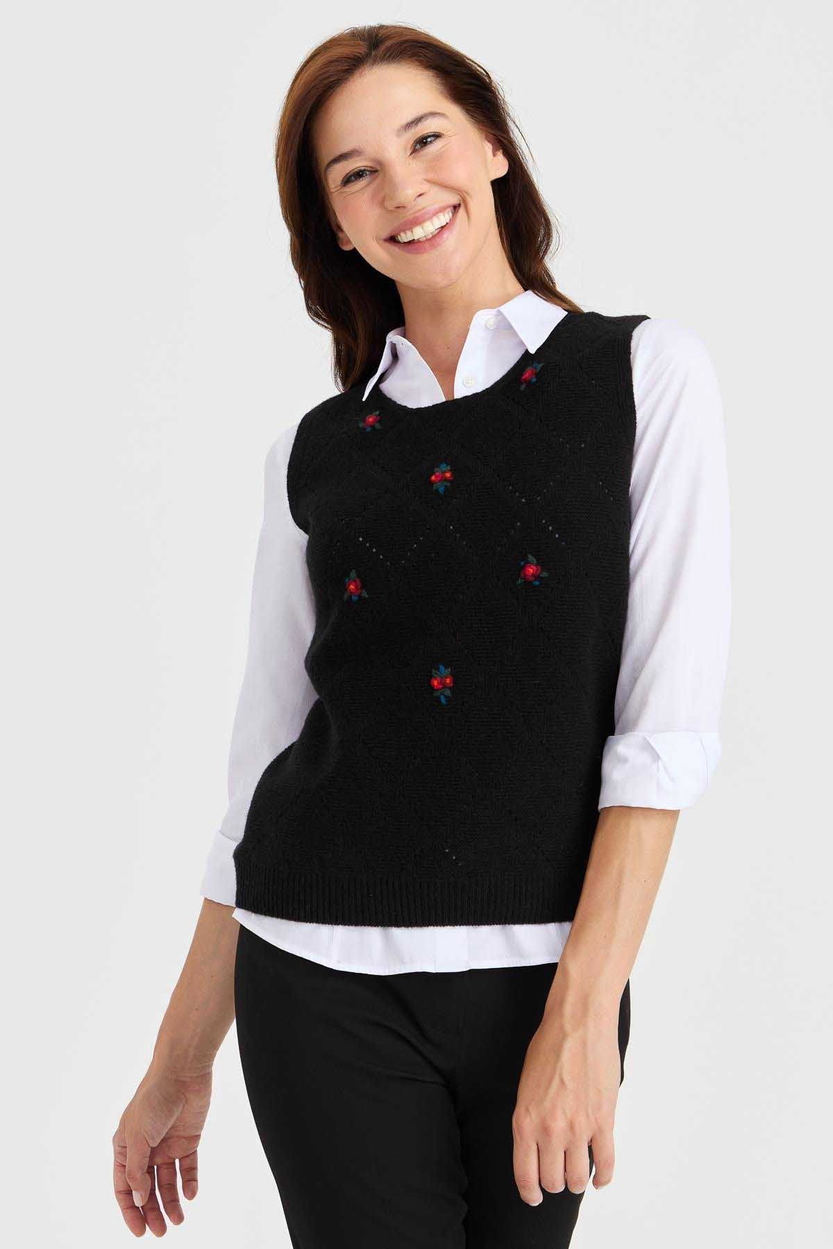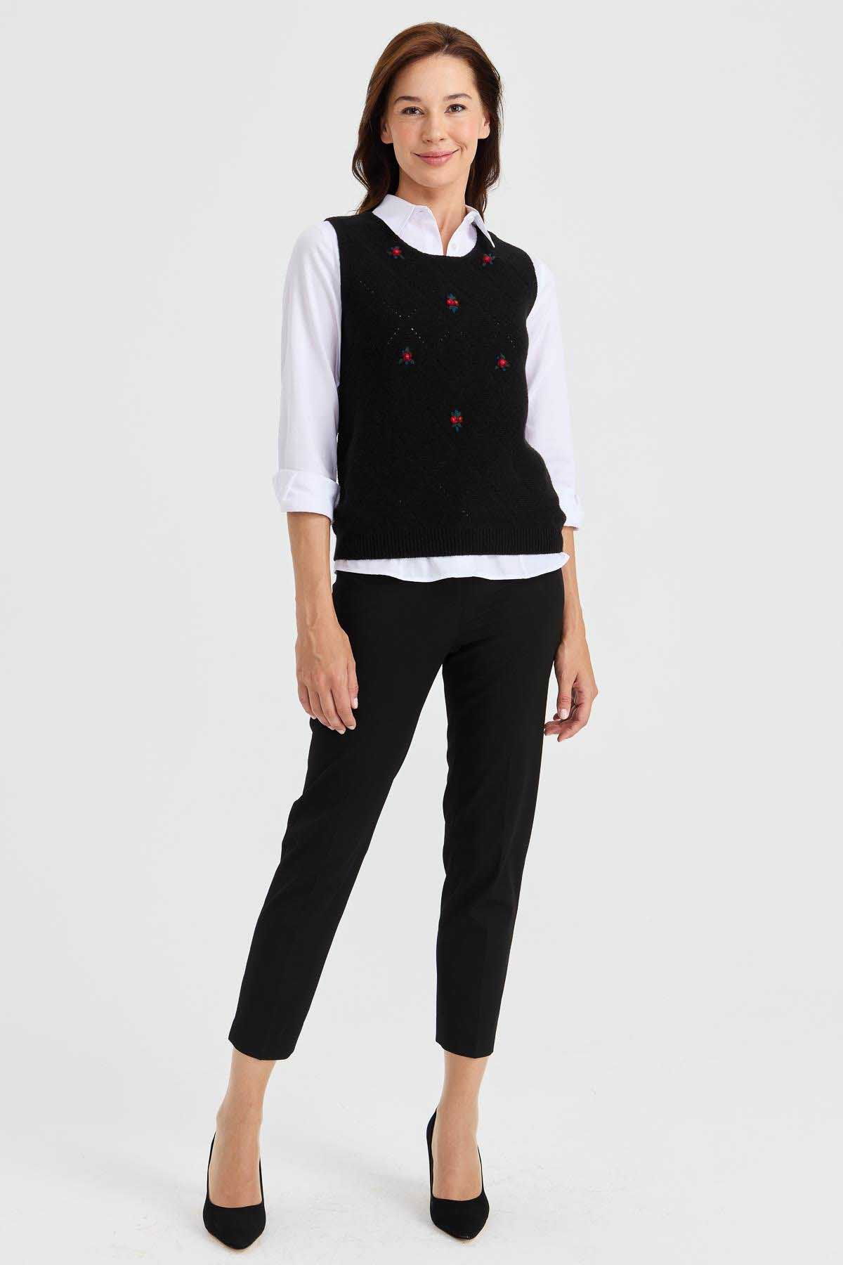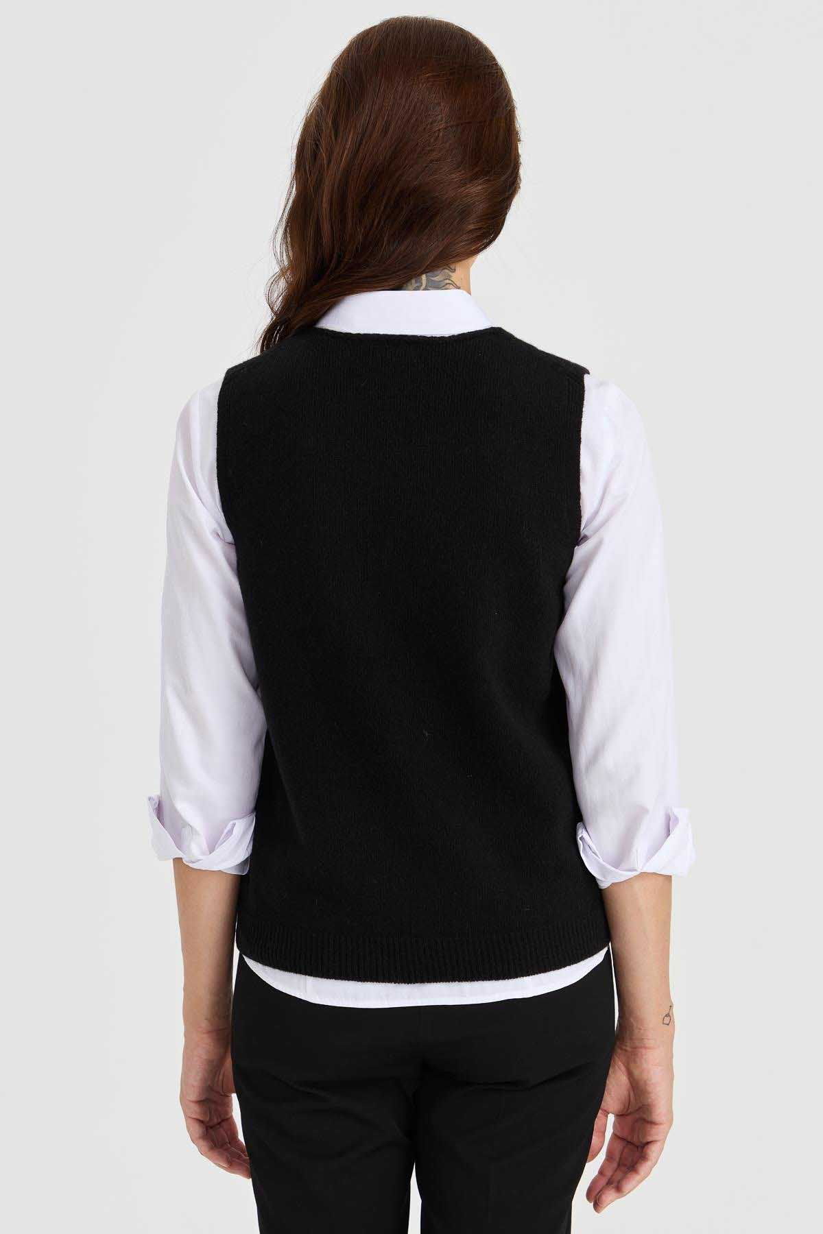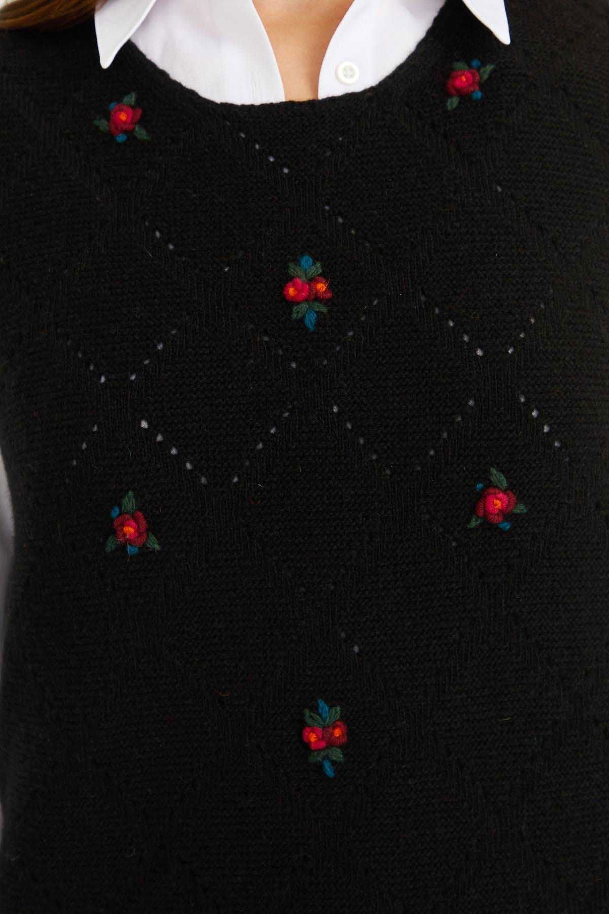 Desen Triko Kadın Sıfır Yaka Önü Baklava Linksli Yün Süveter 23160 Siyah