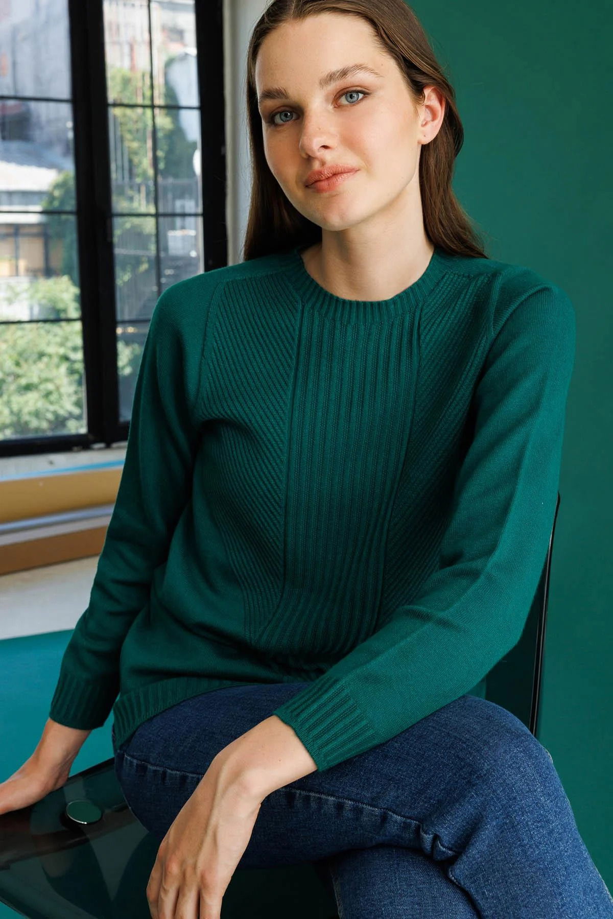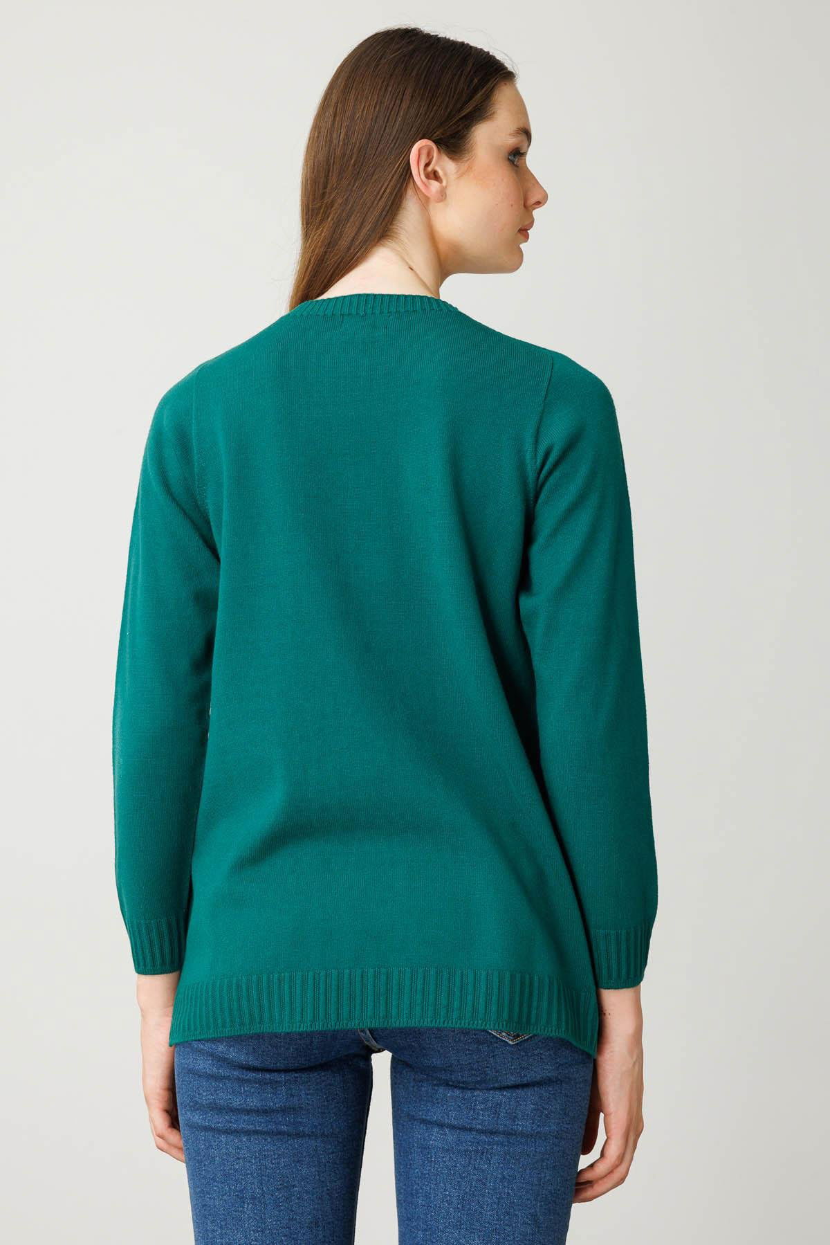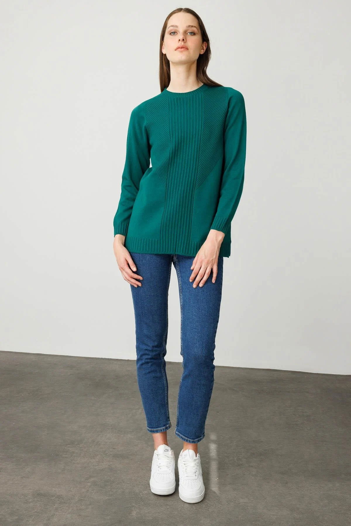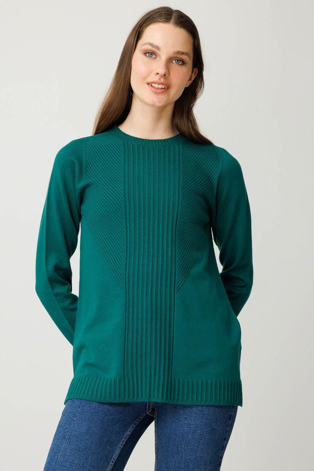 Desen Triko Kadın Sıfır Yaka Önü Çizgili Örgü Kazak 25250 Ö. Başı