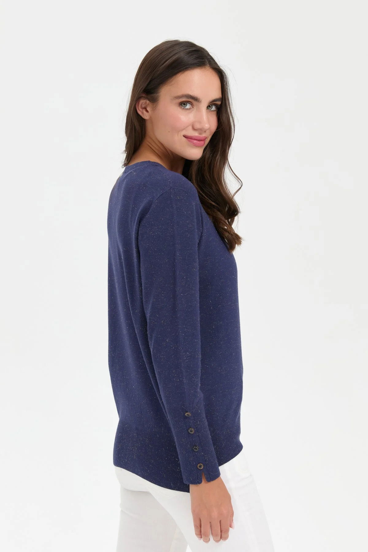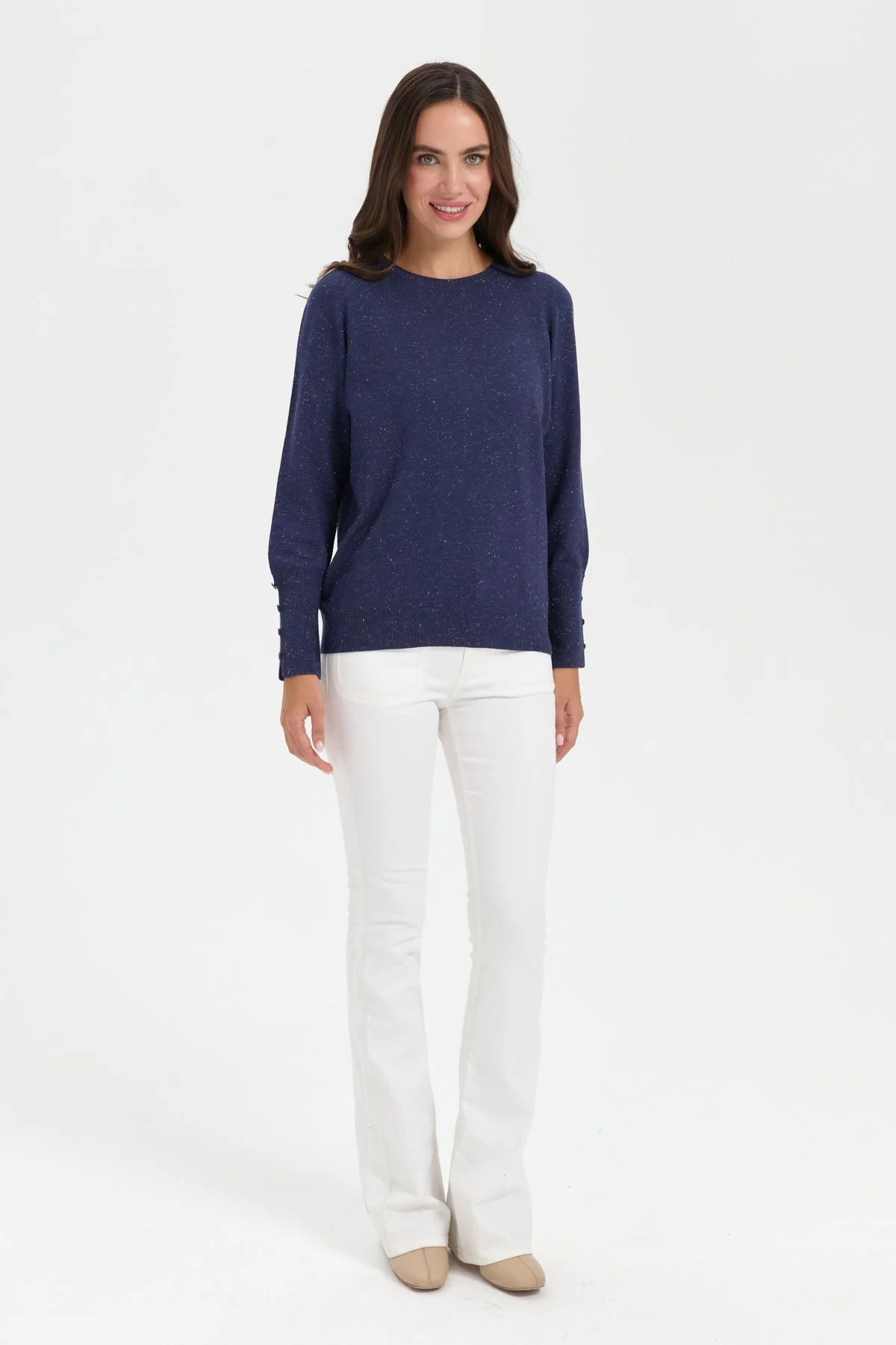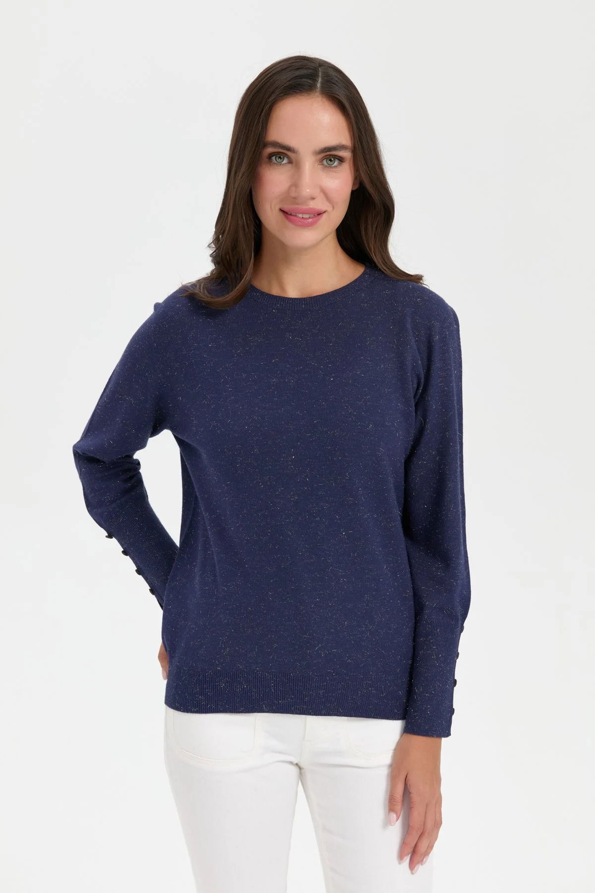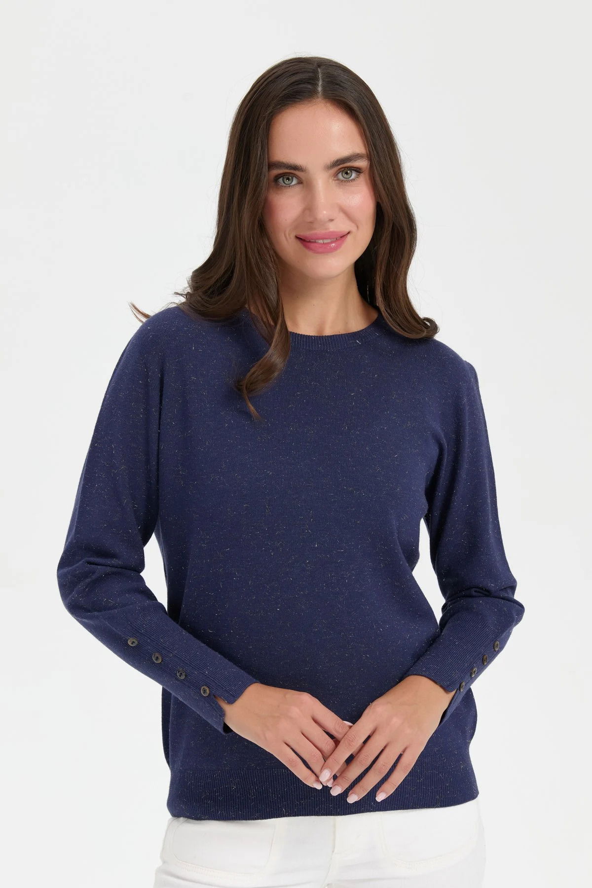 Desen Triko Kadın Sıfır Yaka Önü Kısa Arkası Uzun Bluz 23331 Indigo