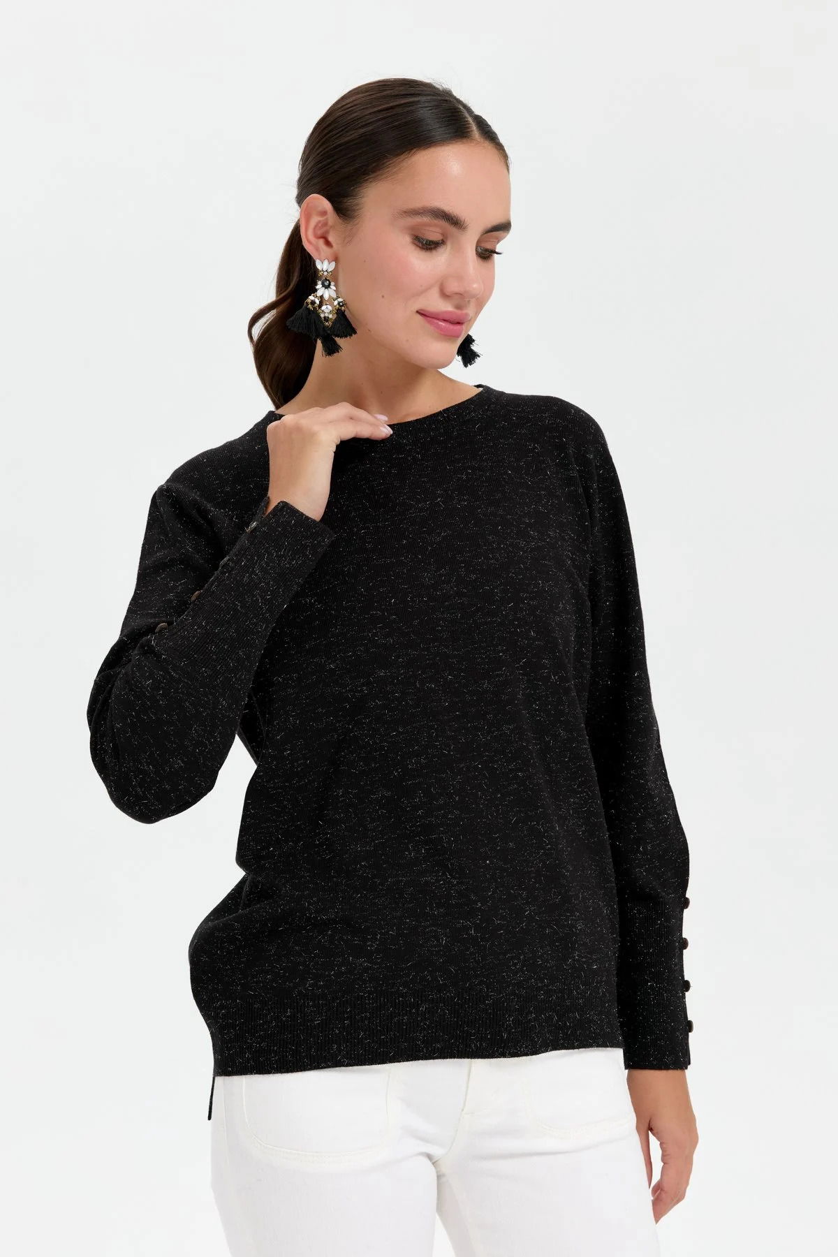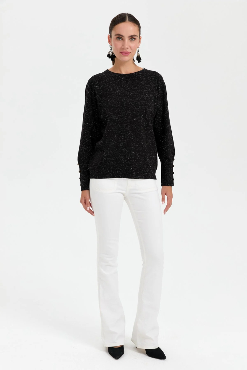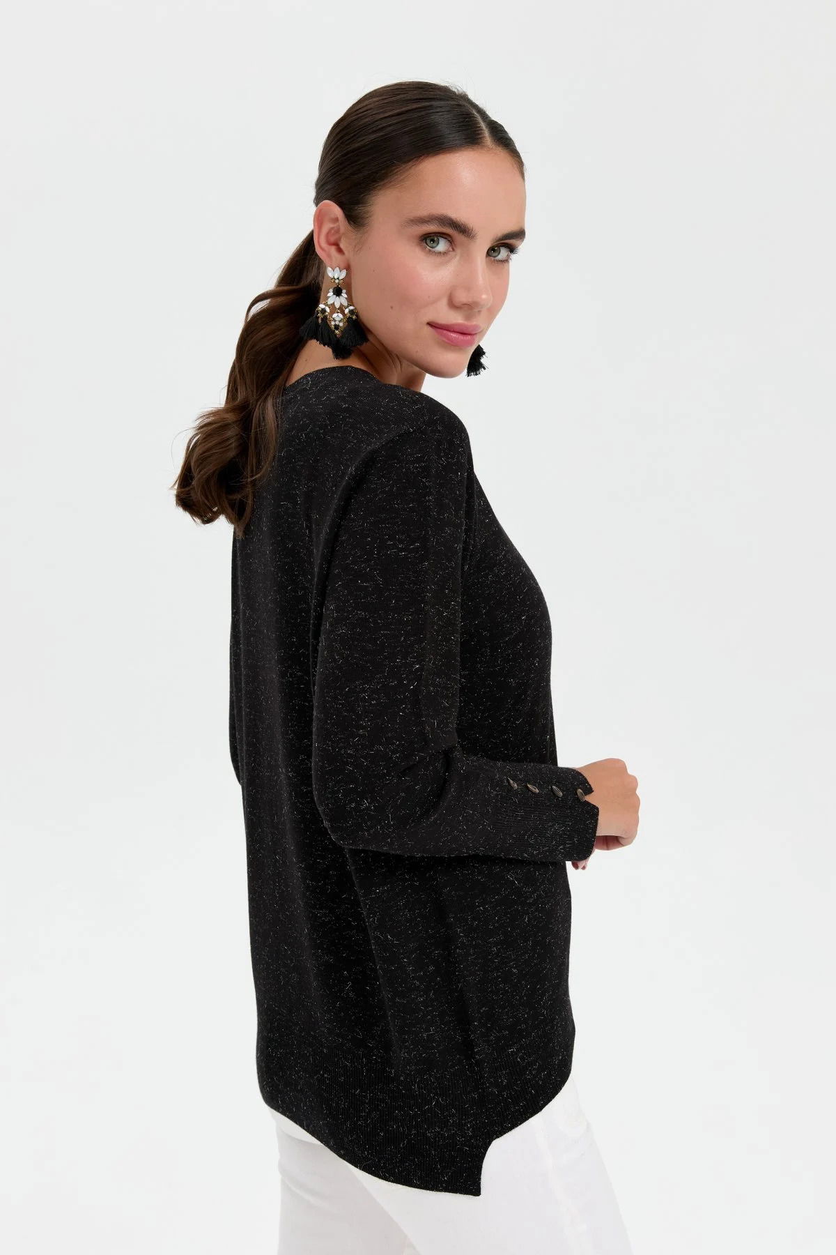 Desen Triko Kadın Sıfır Yaka Önü Kısa Arkası Uzun Bluz 23331 Siyah