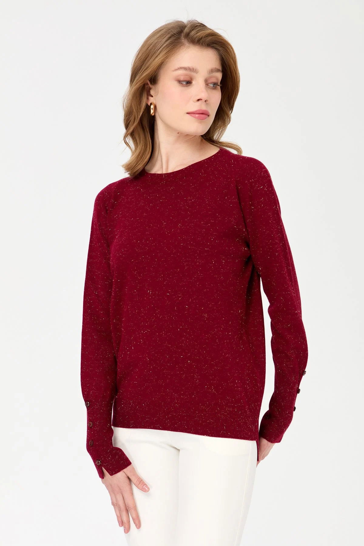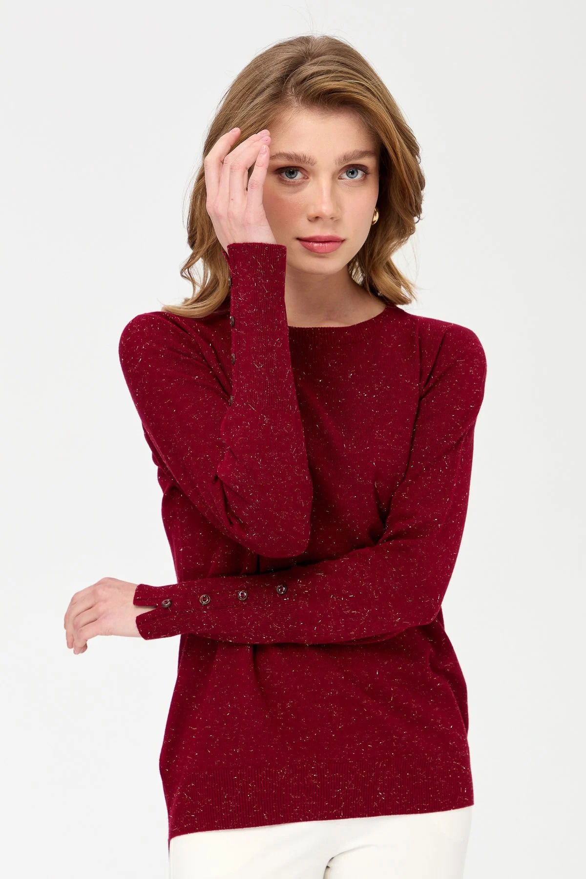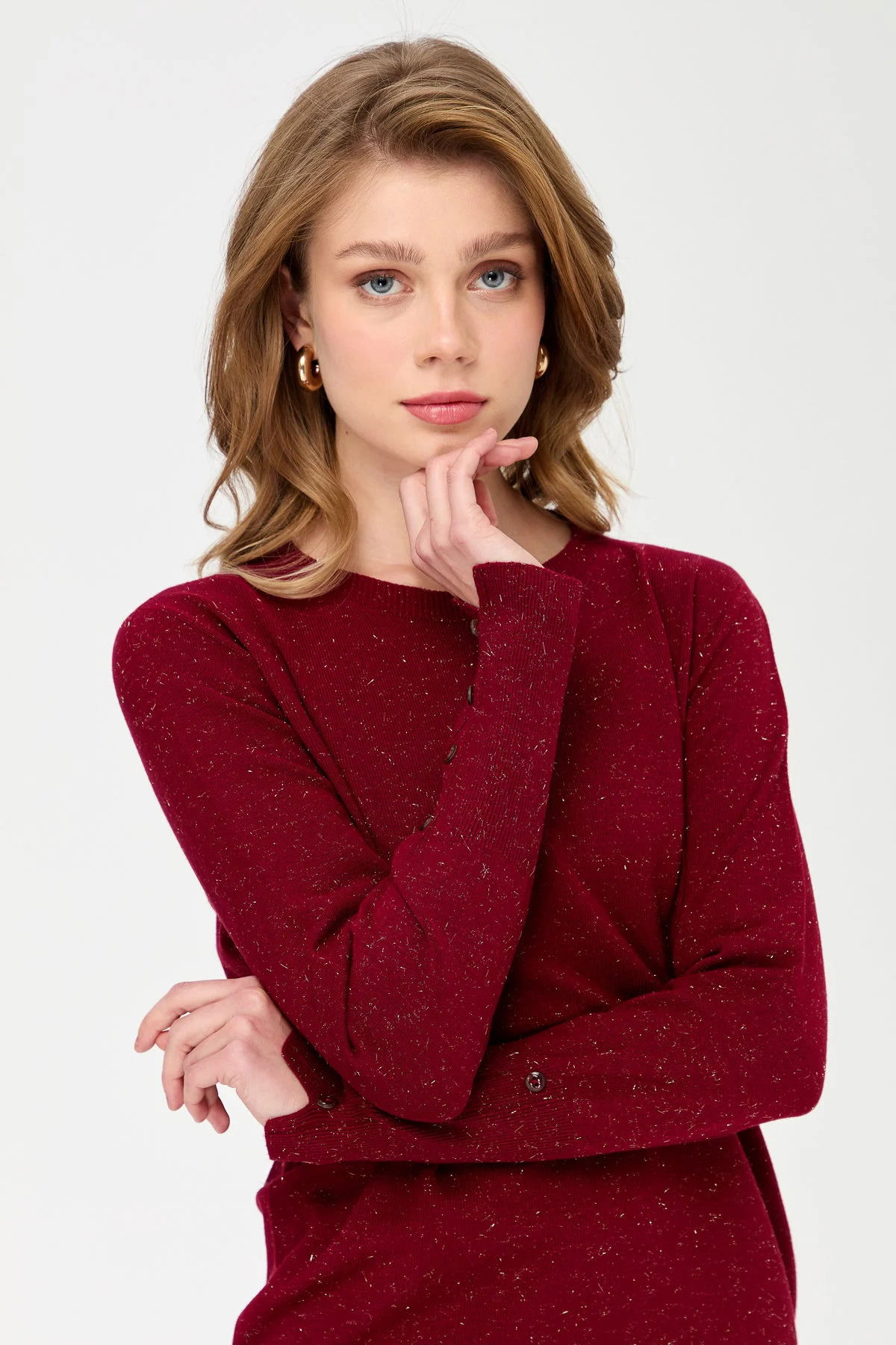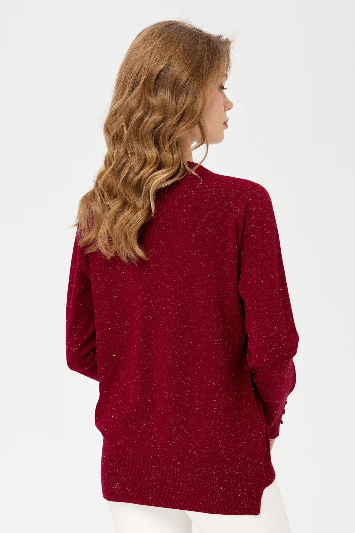 Desen Triko Kadın Sıfır Yaka Önü Kısa Arkası Uzun Bluz 23331 Vişne Çürüğü