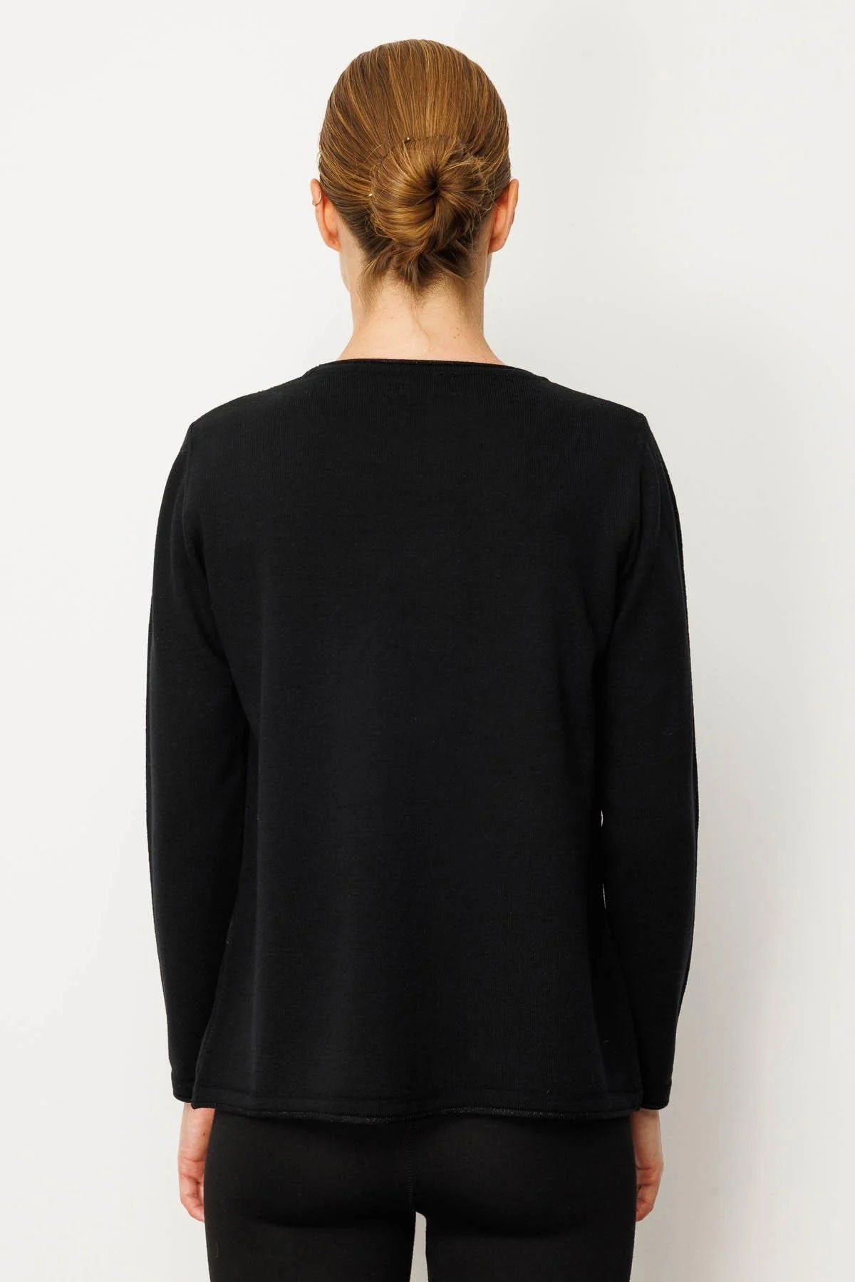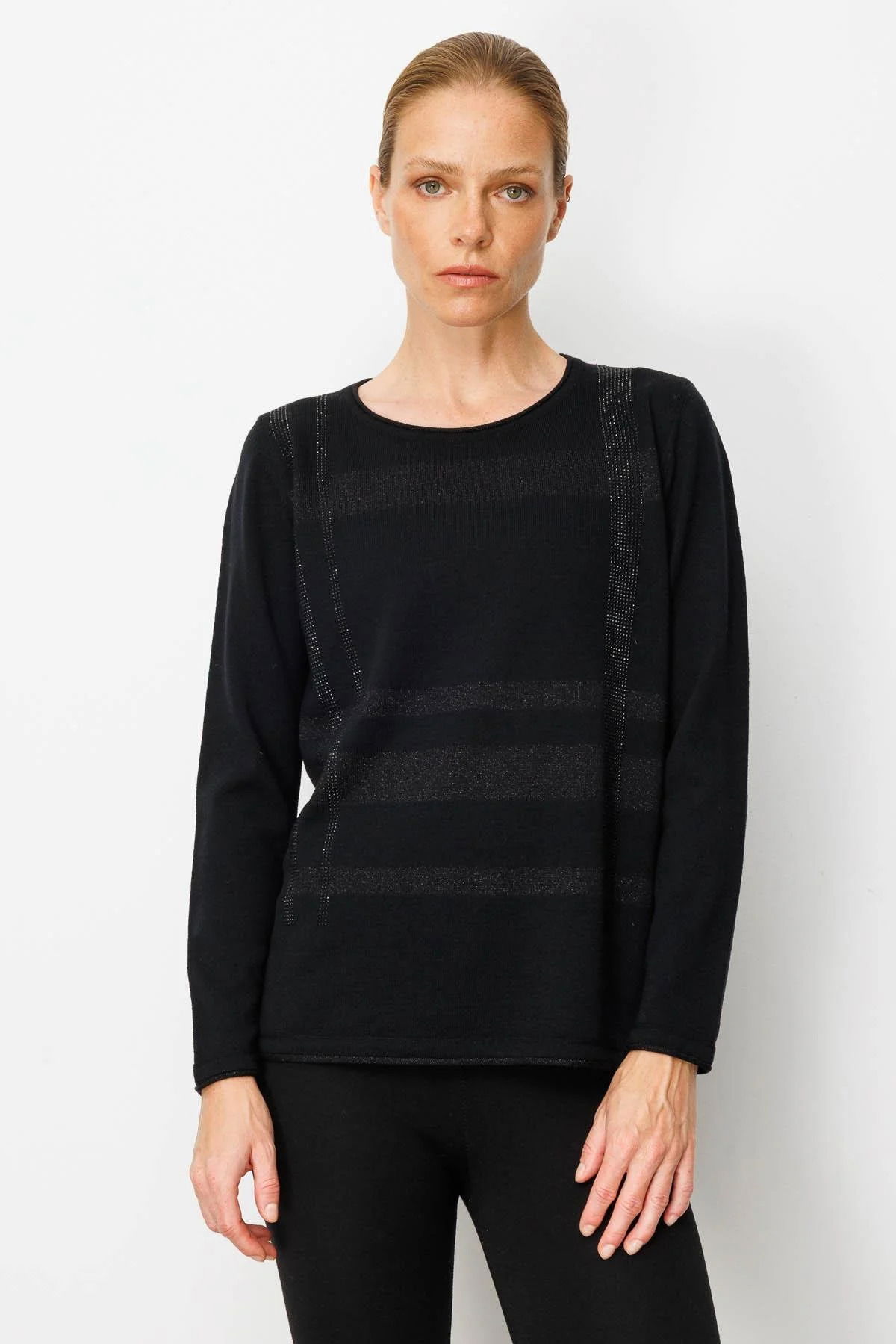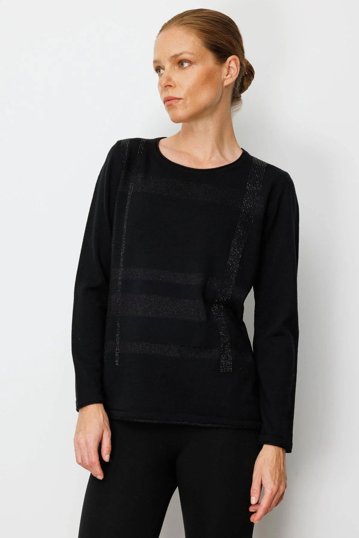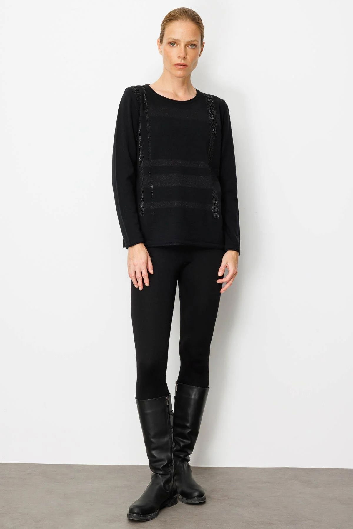 Desen Triko Kadın Sıfır Yaka Sim Çizgili Taşlı Yün Bluz 25026 Siyah