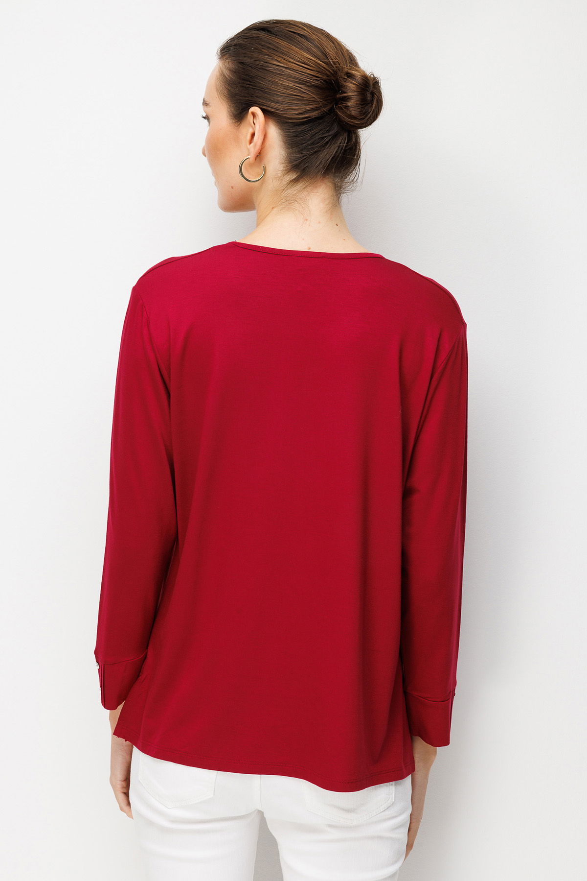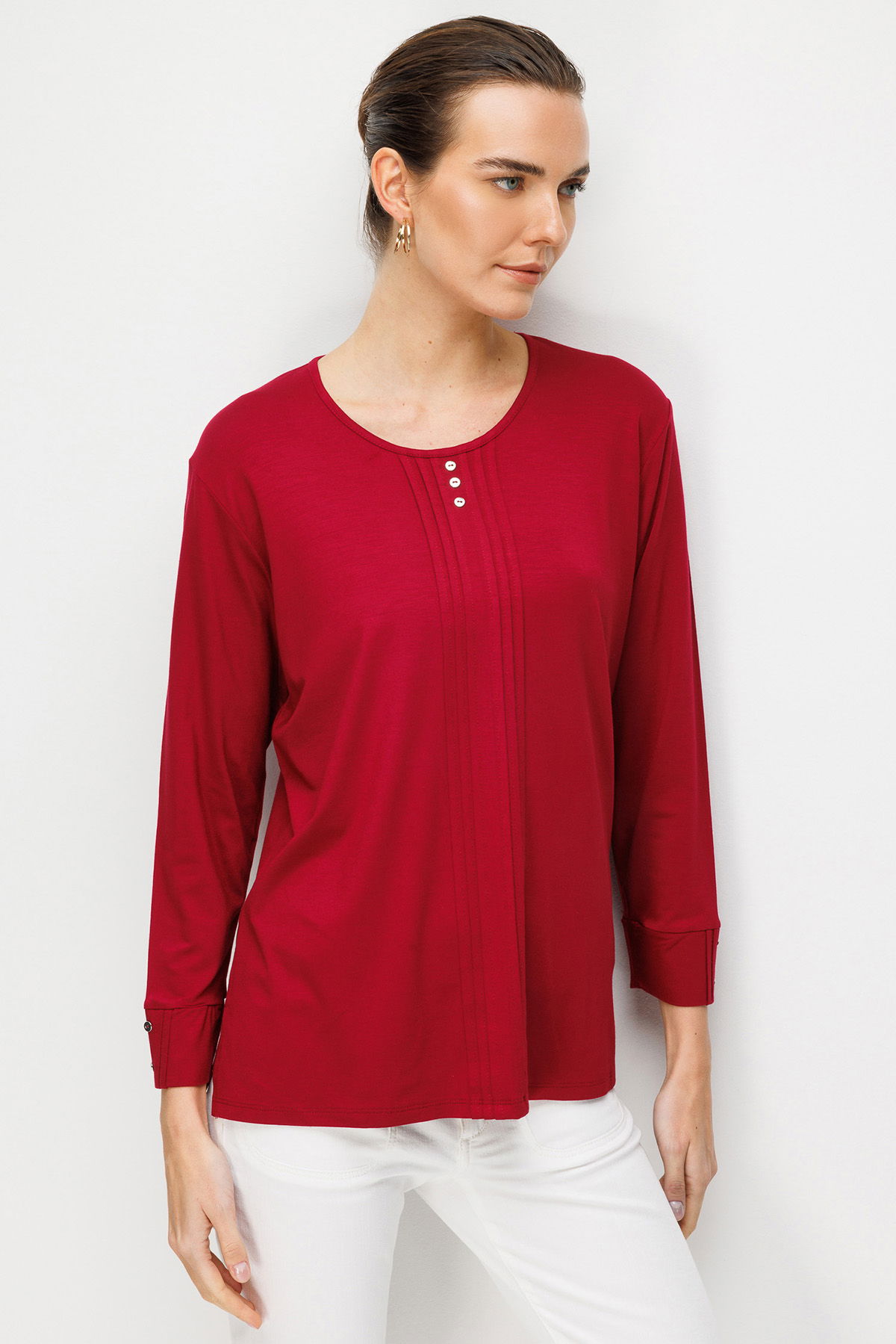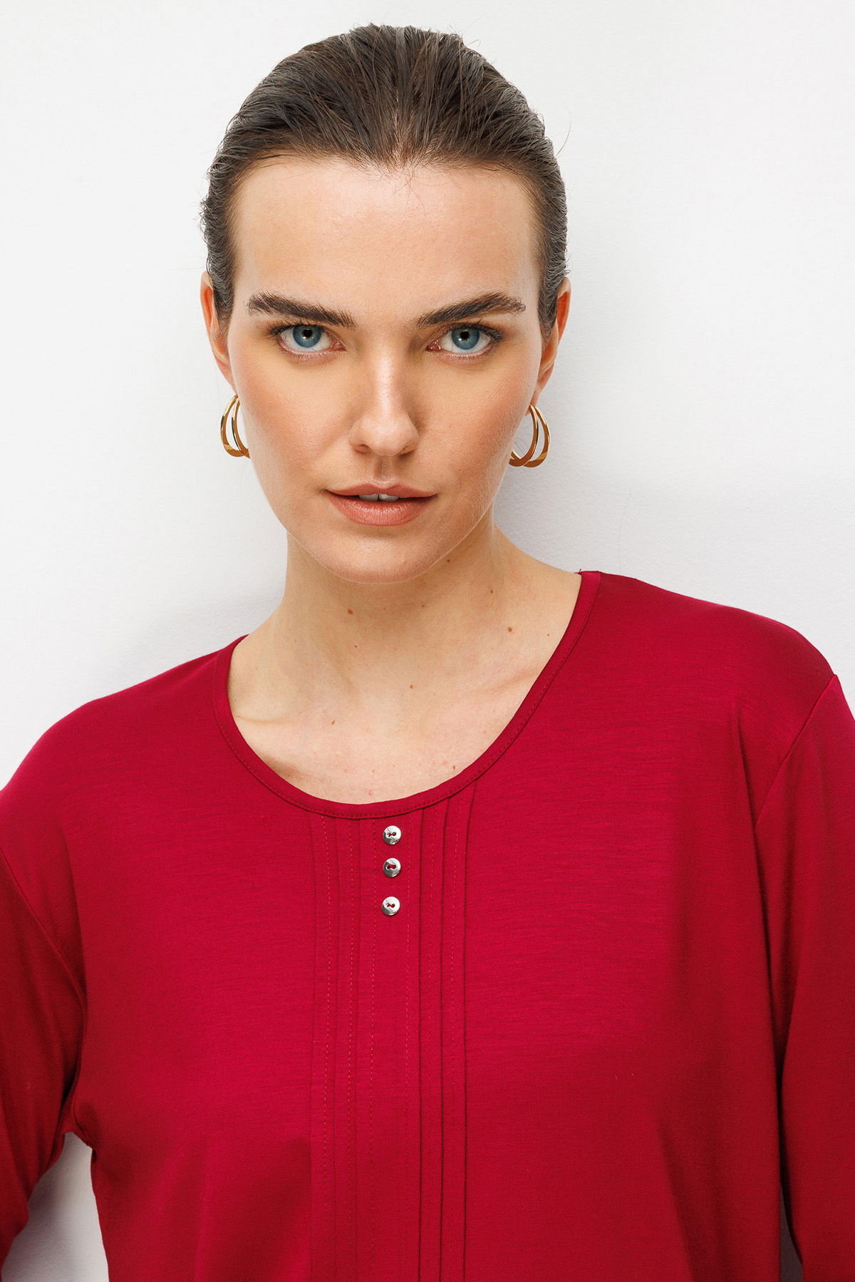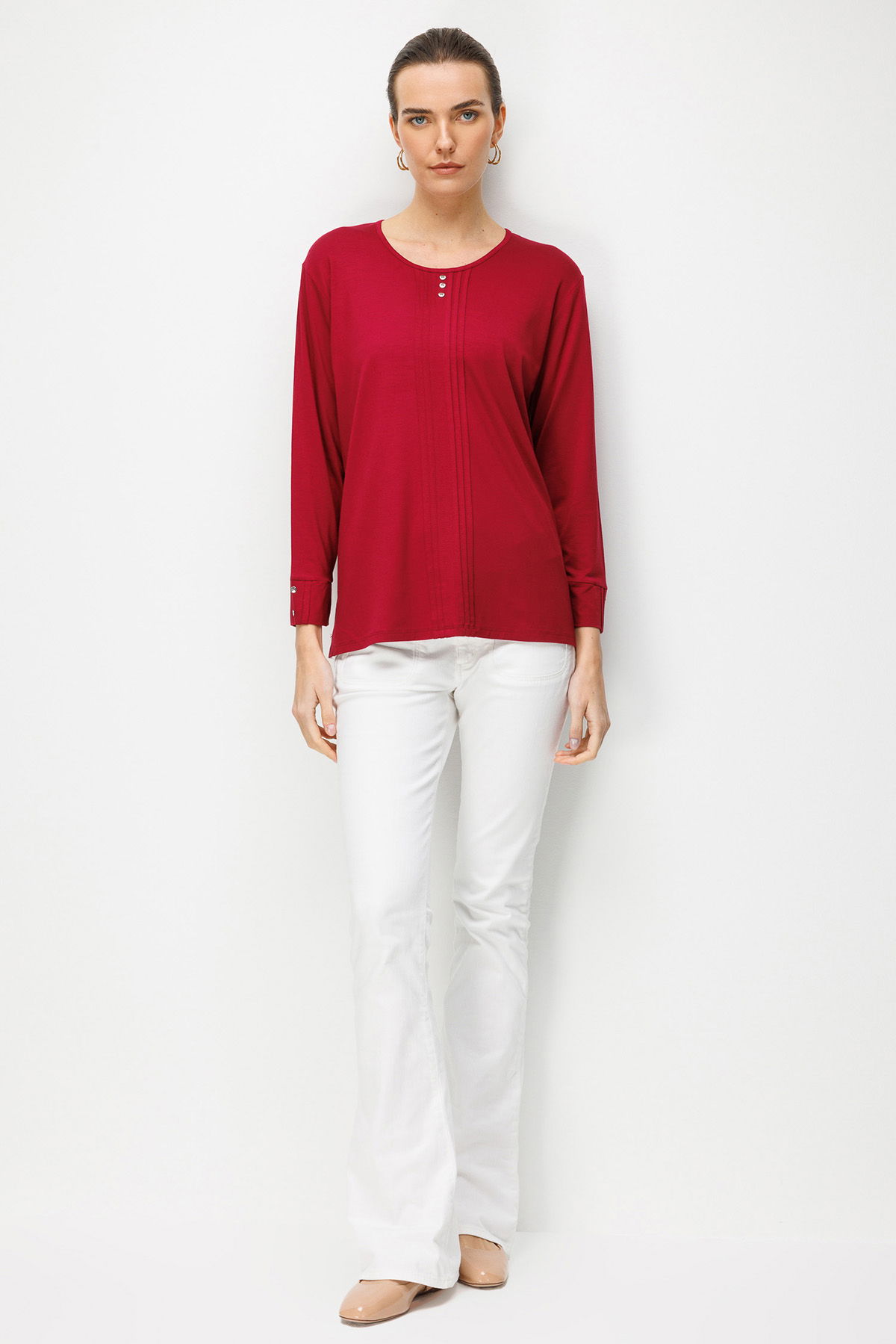 Desen Triko Kadın Sıfır Yaka Uzun Kollu Penye Bluz 25767 Vişne
