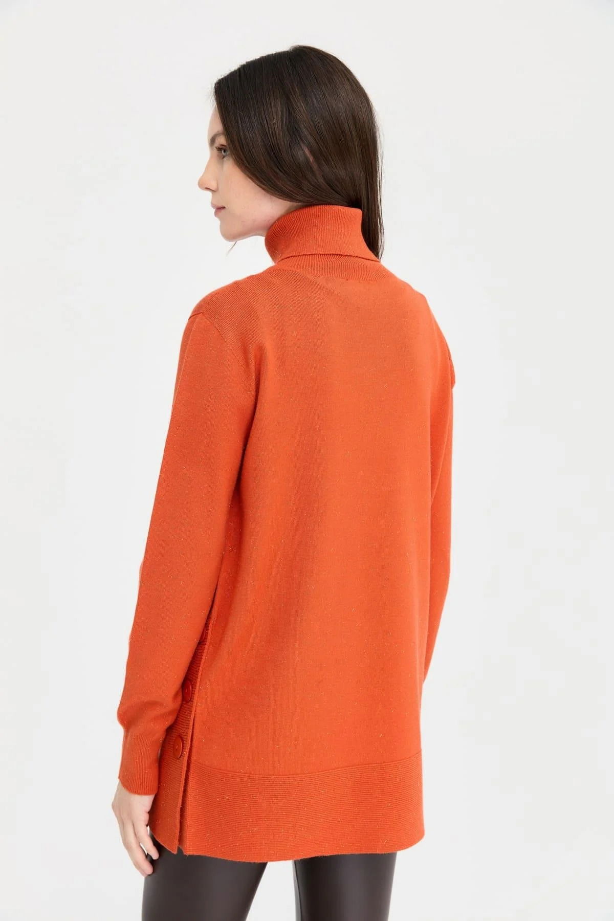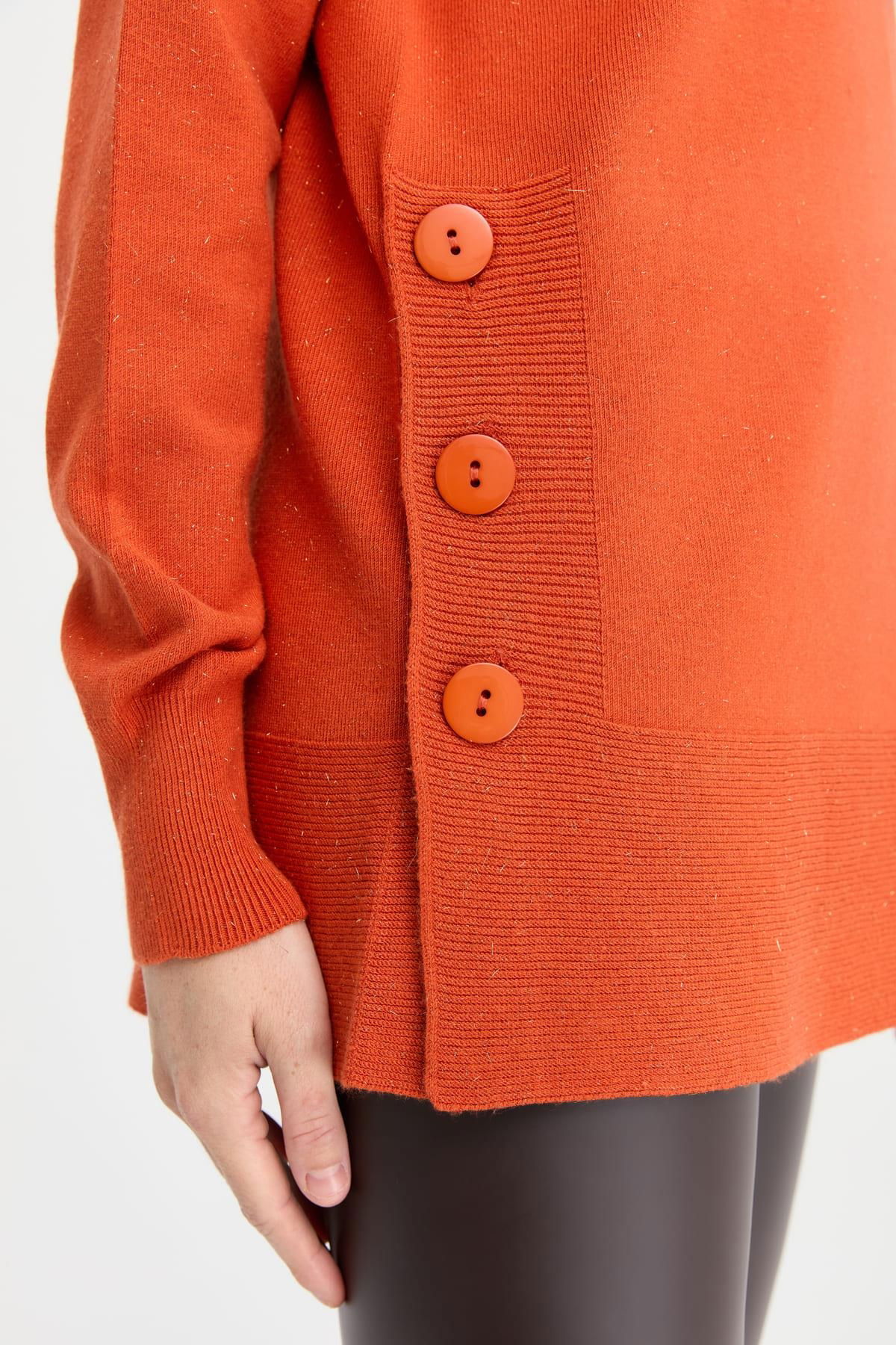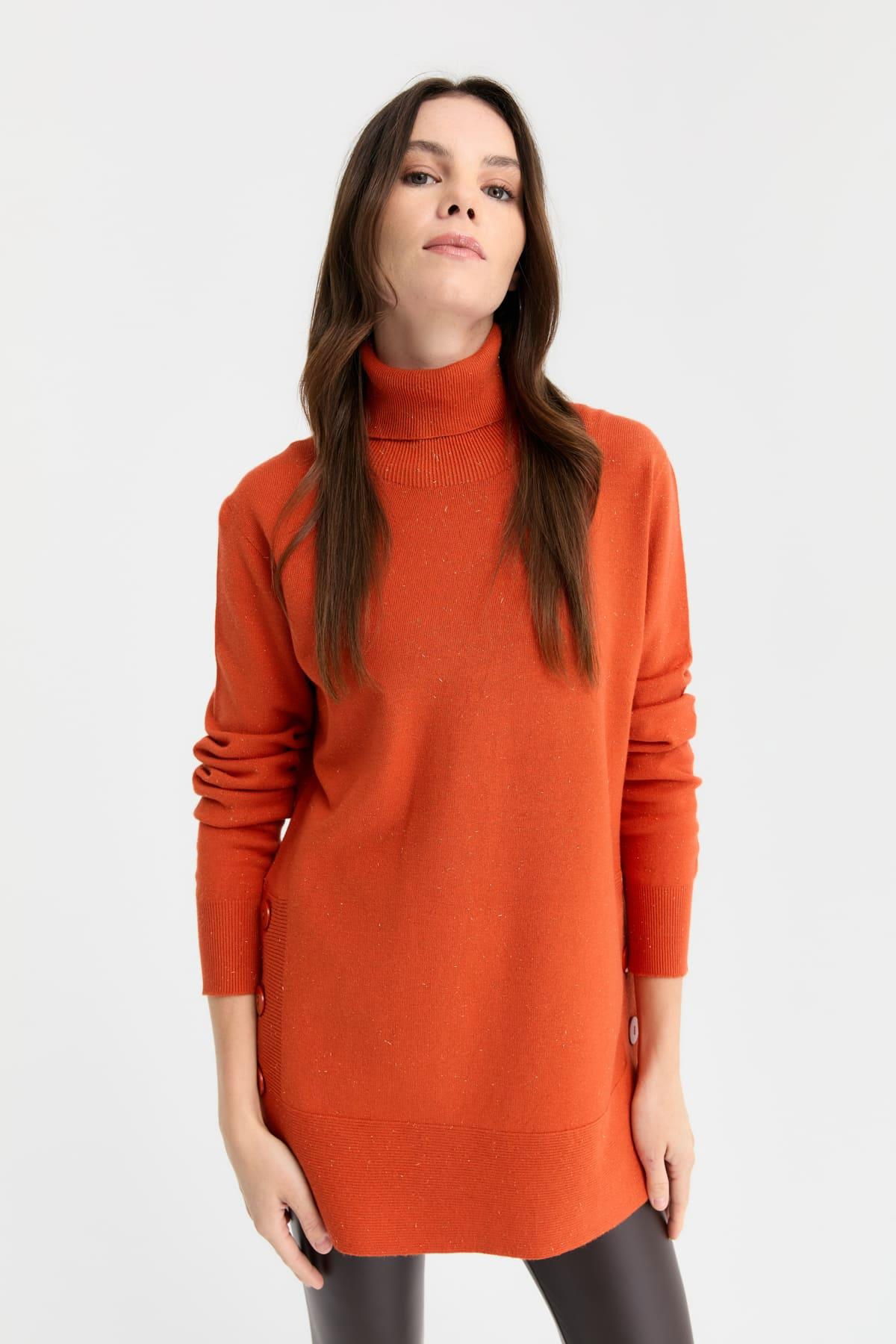 Desen Triko Kadın Tam Balıkçı Yaka Dikişsiz Kazak 23391 Portakal