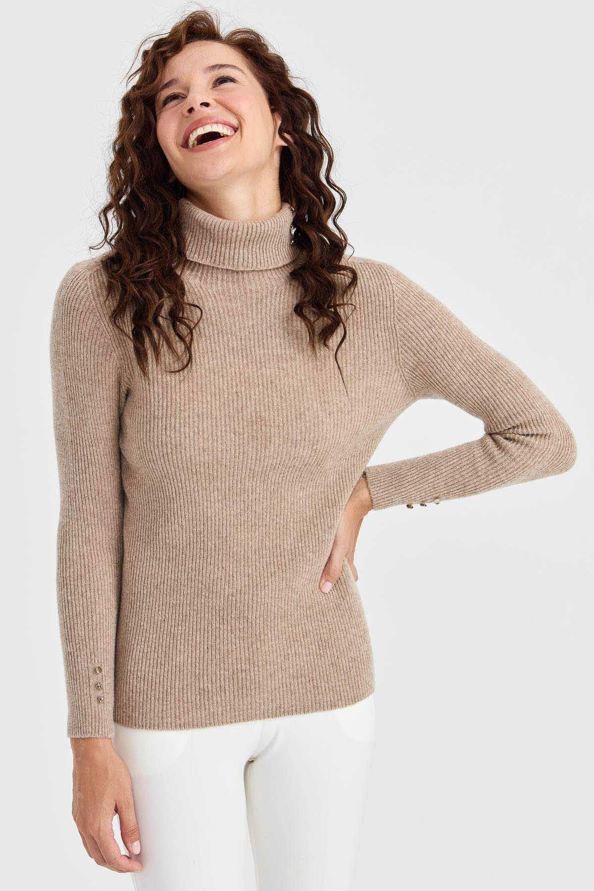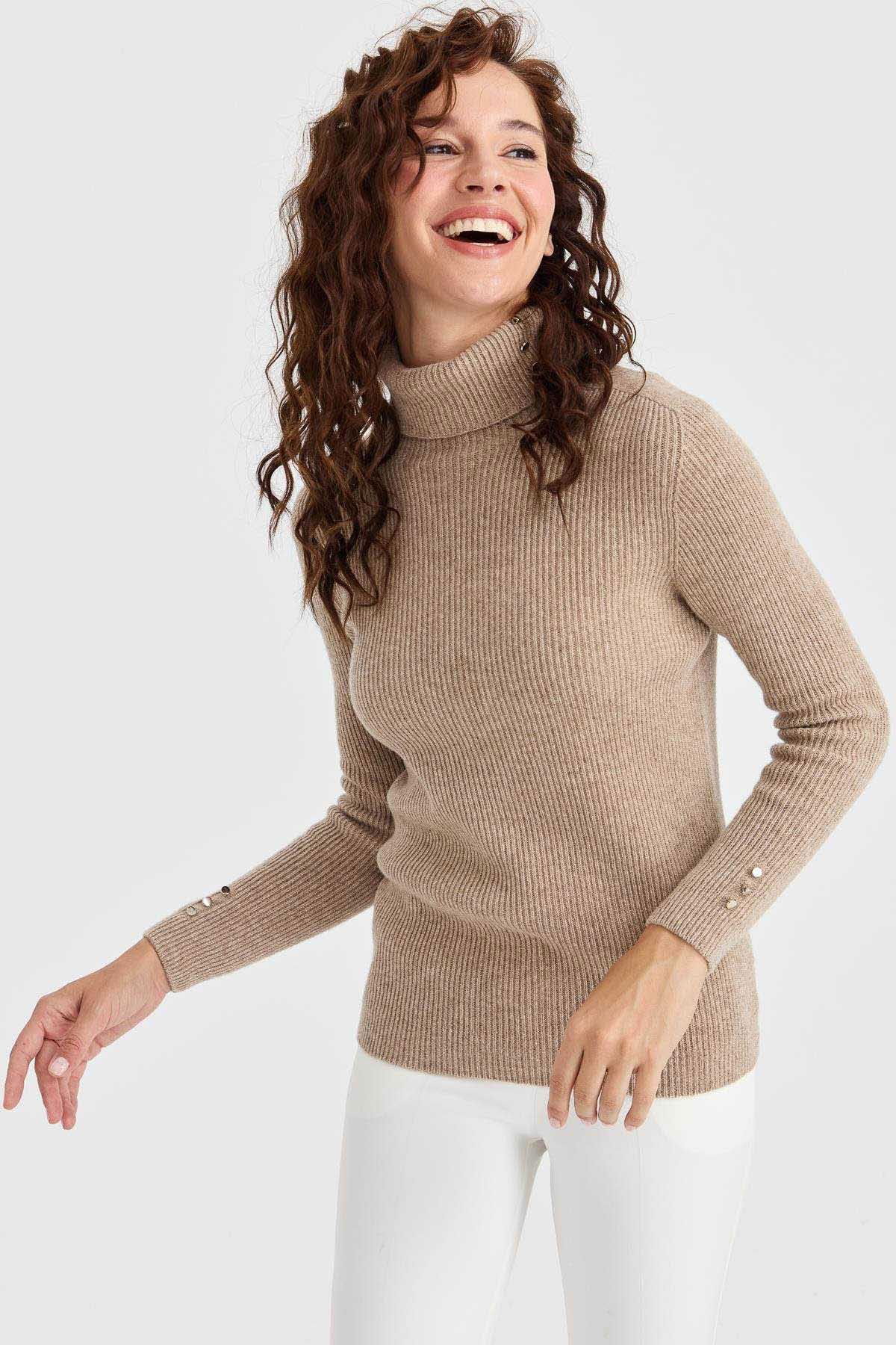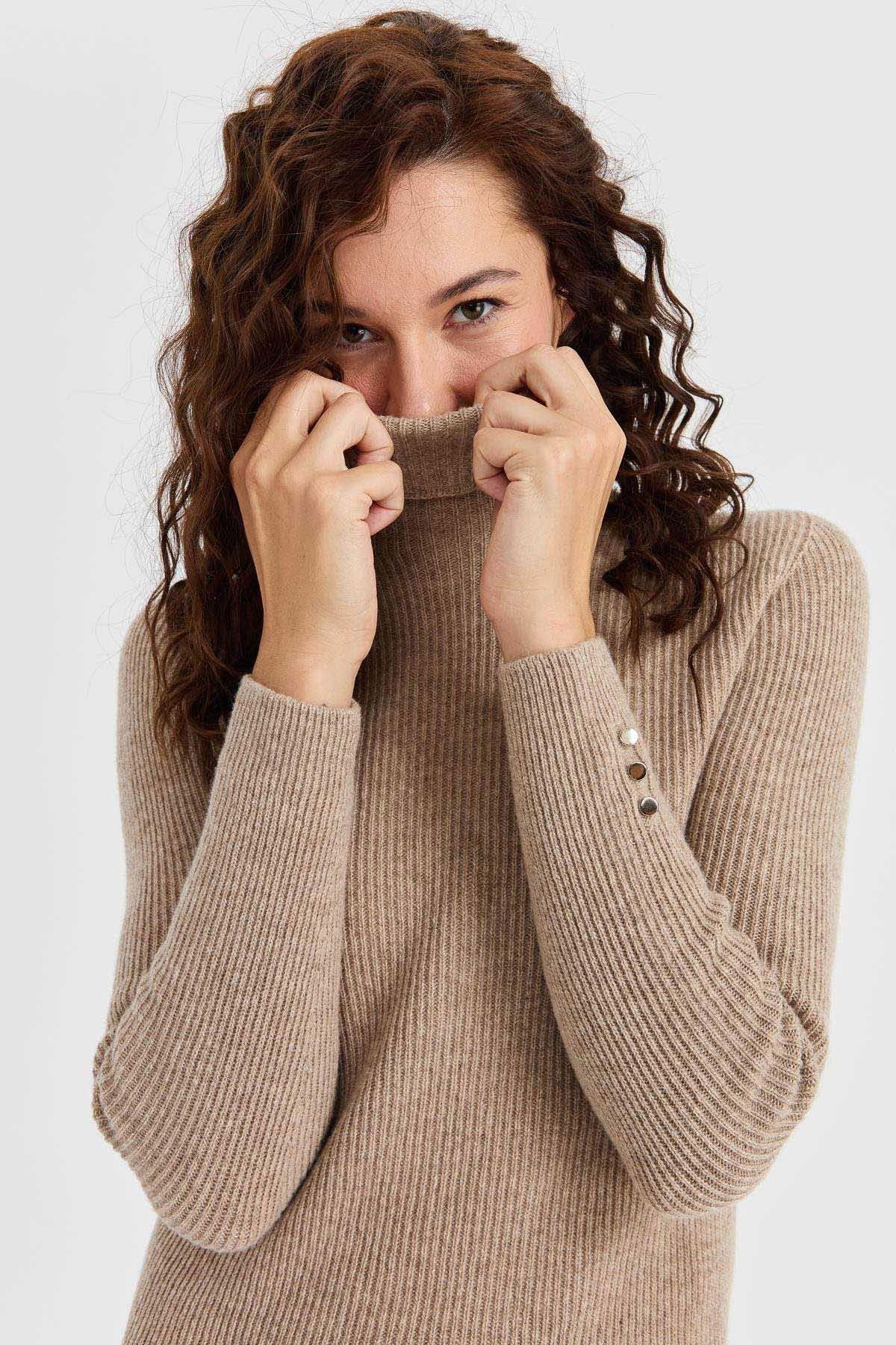 Detay: Tam balıkçı yaka, uzun kollu, düz renk kazak;