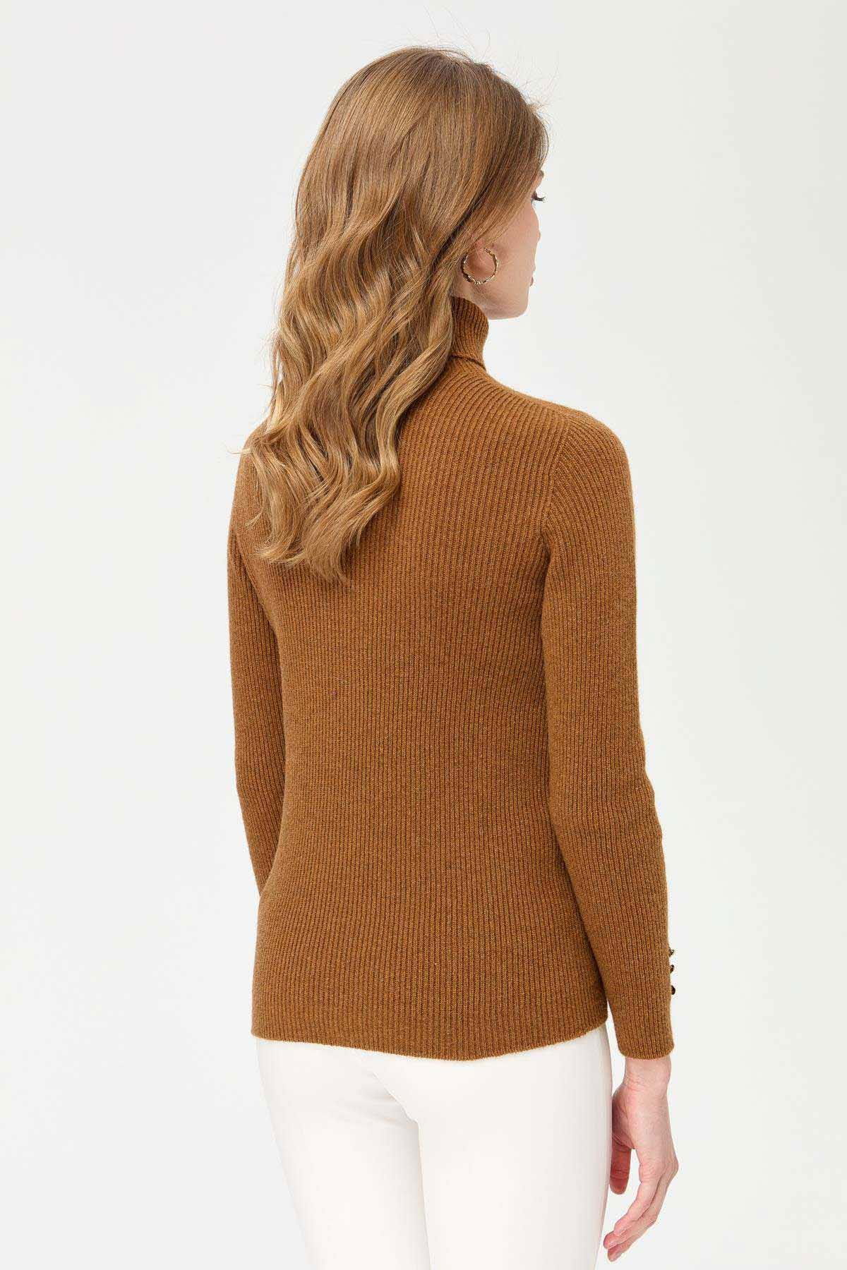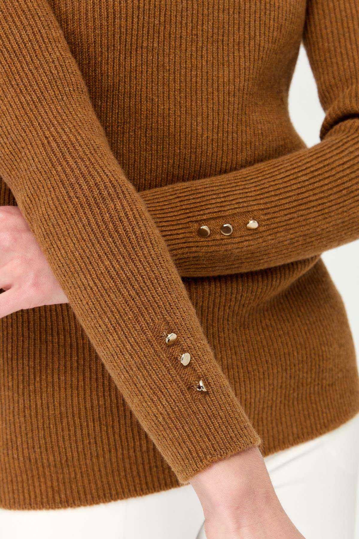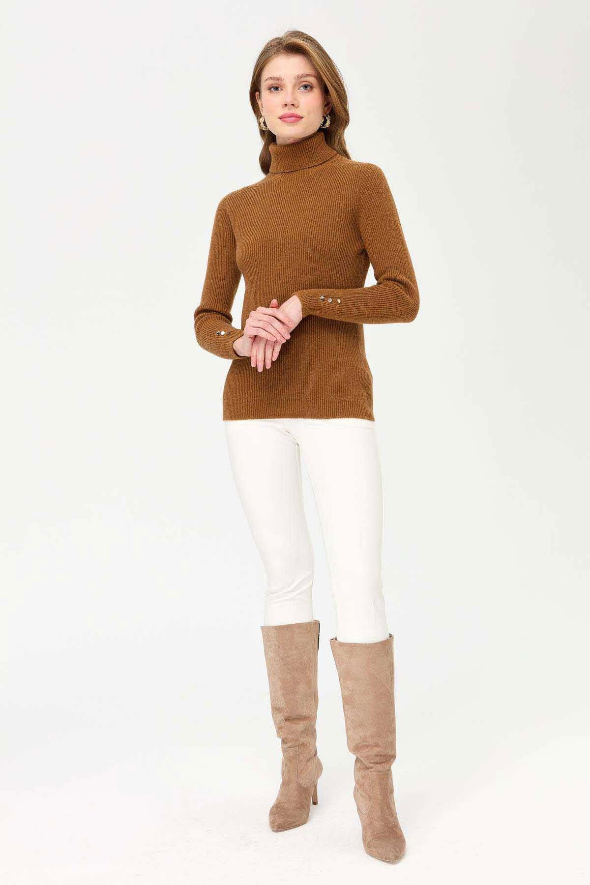 Desen Triko Kadın Tam Balıkçı Yaka Kol Ucu Düğmeli Yün Kazak 23159 K.Taba