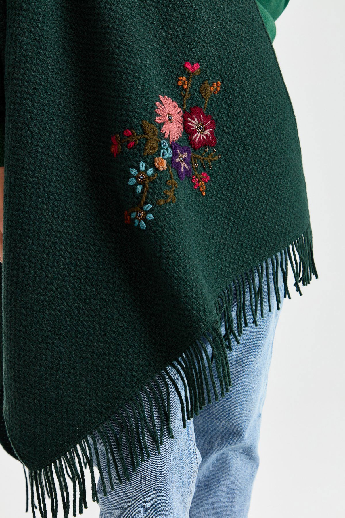 Detay: Düz renk, pirinç örgü işlemeli şal;