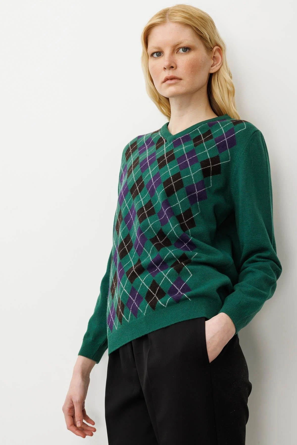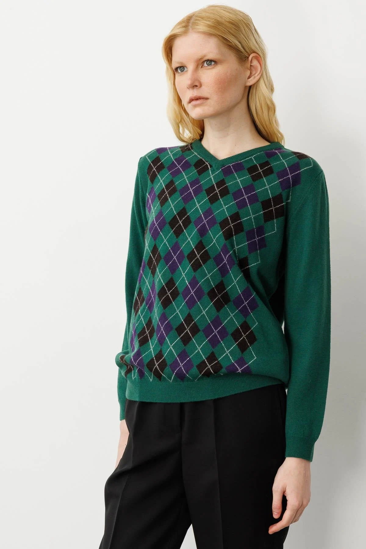 Detay: Desenli V yaka kadın kazak, modanın vazgeçilmez parçalarından biri olarak gardırobunuzda yerini almayı bekliyor. %80 yün ve %20 PA karışımı materyali, soğuk havalarda mükemmel bir sıcaklık sağlar. Uzun kollu ve standart kalıplı bu kazak, hem modern hem de klasik kombinlere uyum sağlayarak stilinizi tamamlar. Göz alıcı desenleri ve zarif tasarımı ile dikkat çekici bir görünüm sunar;