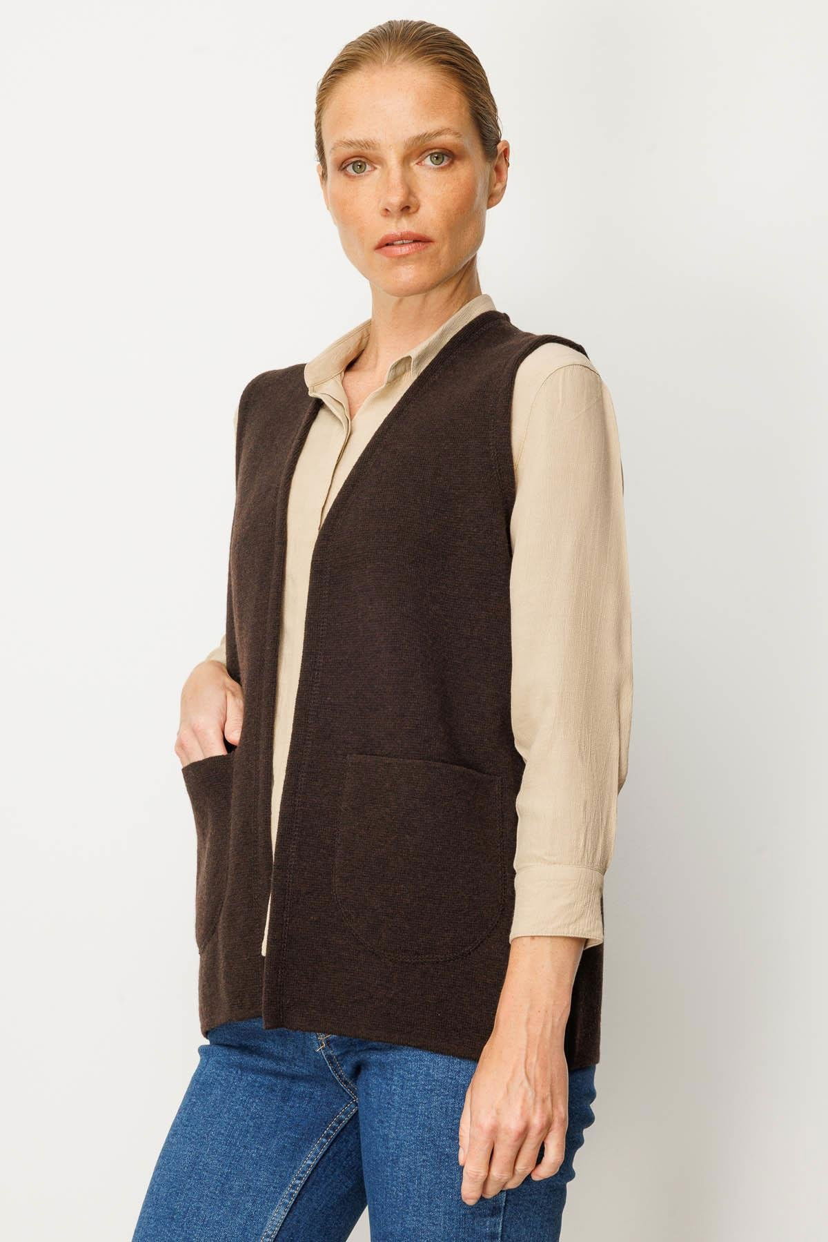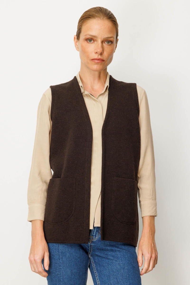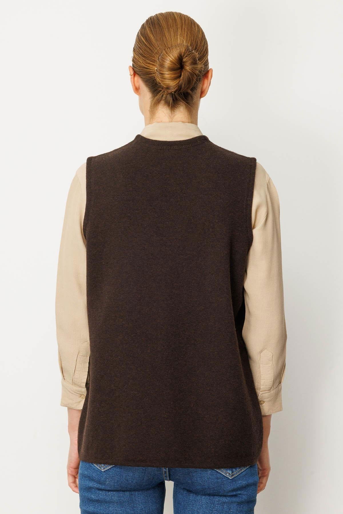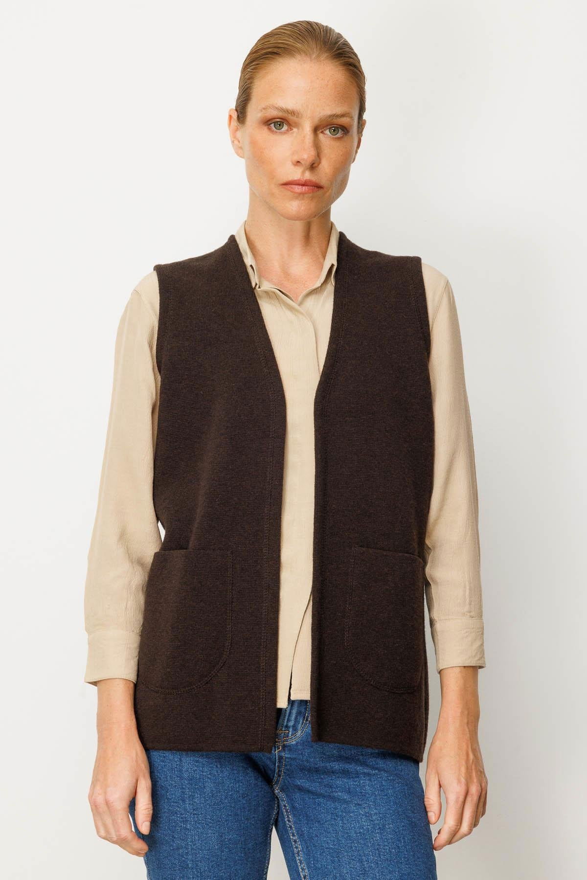 Desen Triko Kadın V Yaka Çelik Örgü Yün Anne Yelek 25044 Koyu Kahve