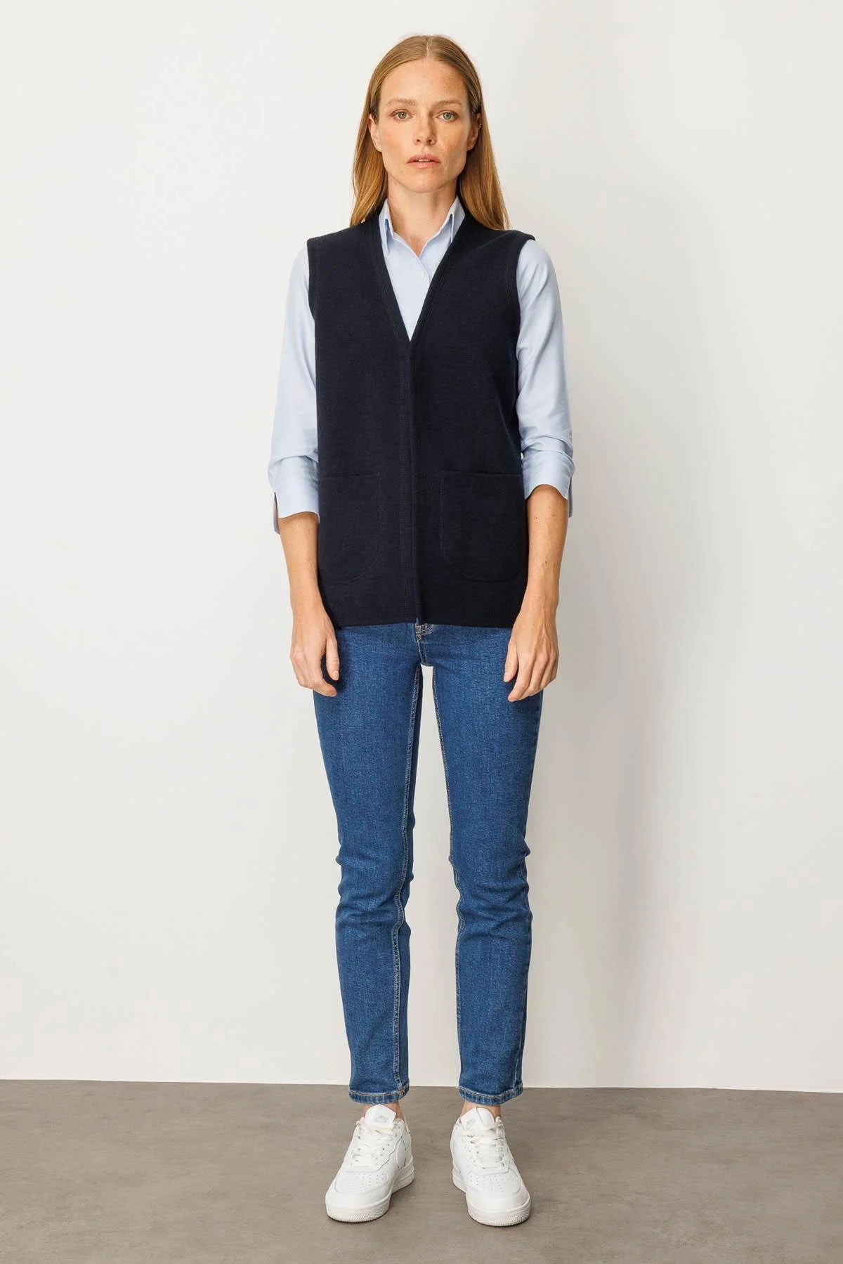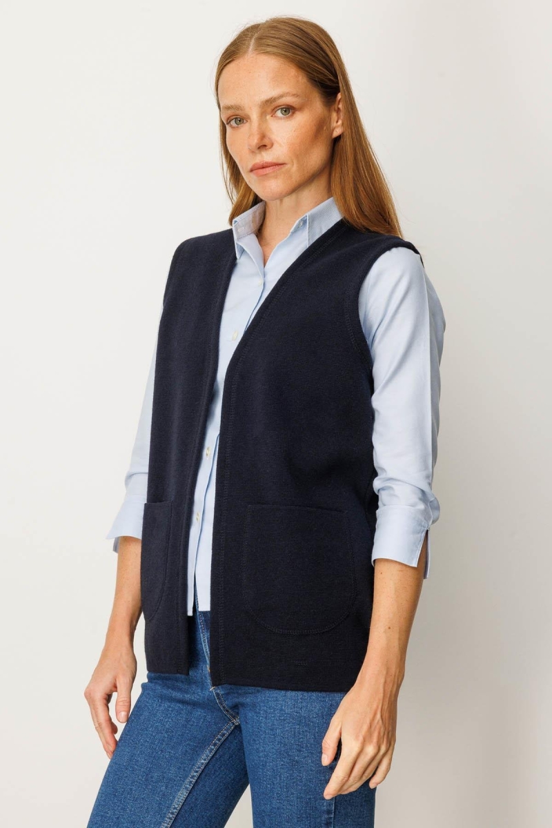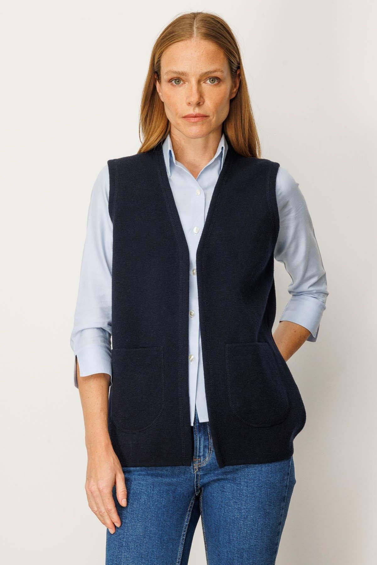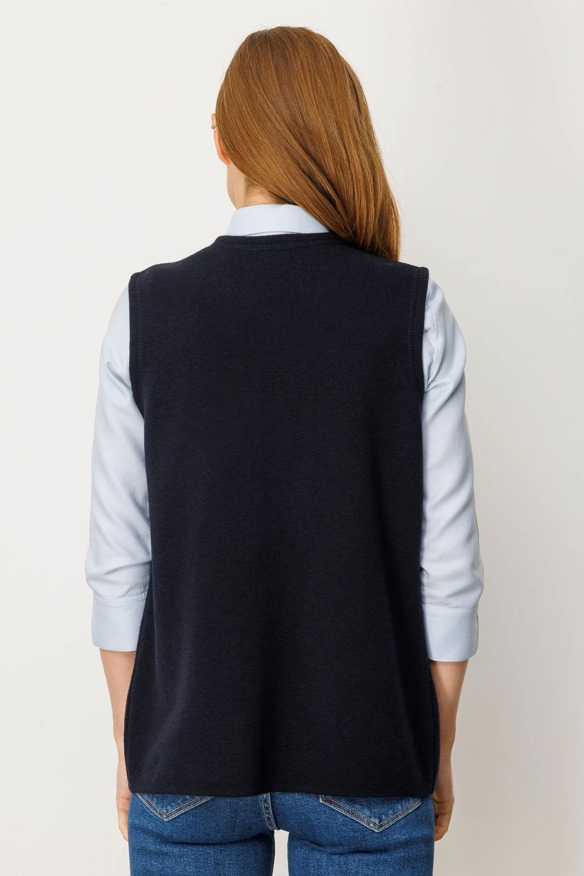 Desen Triko Kadın V Yaka Çelik Örgü Yün Anne Yelek 25044 Koyu Lacivert
