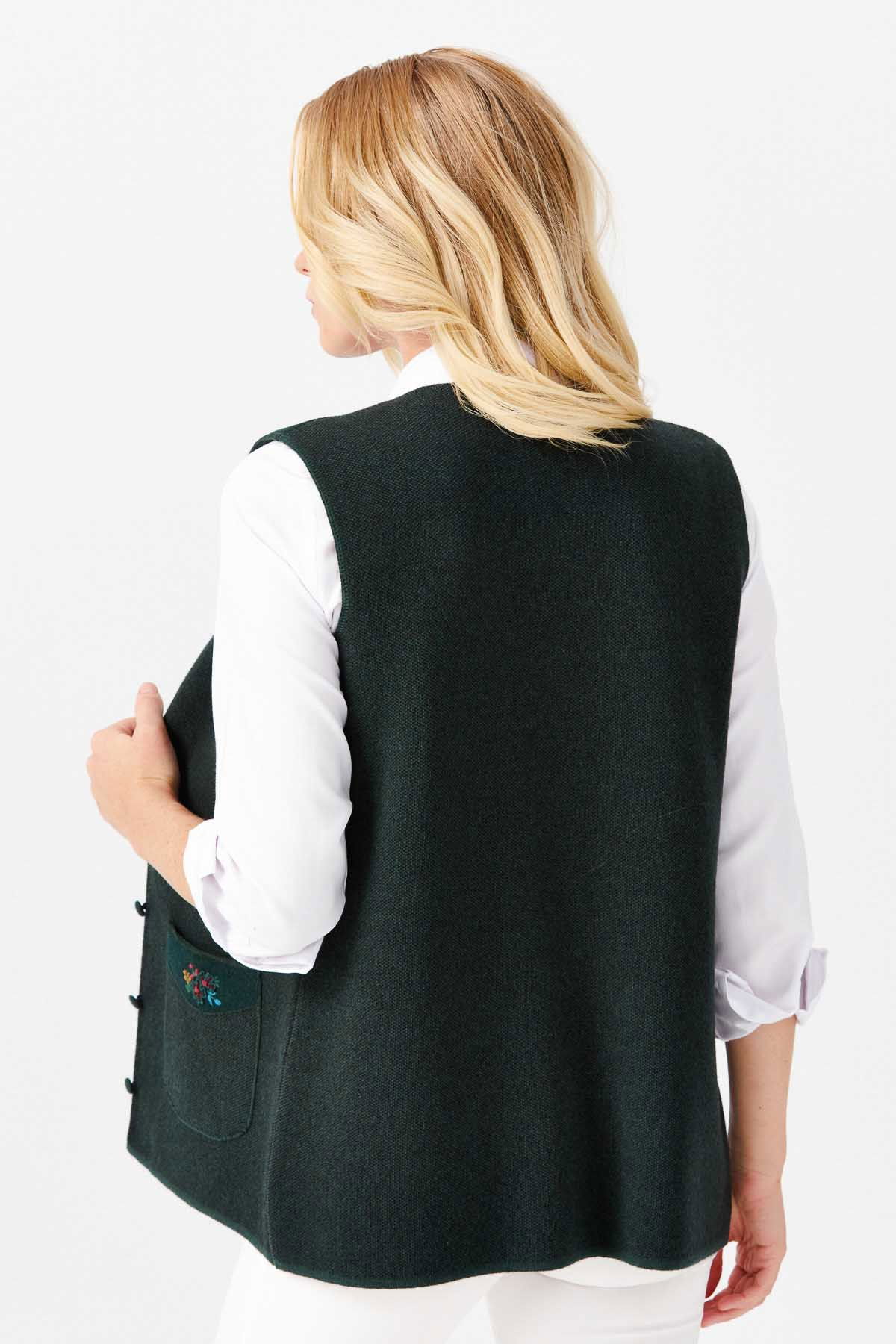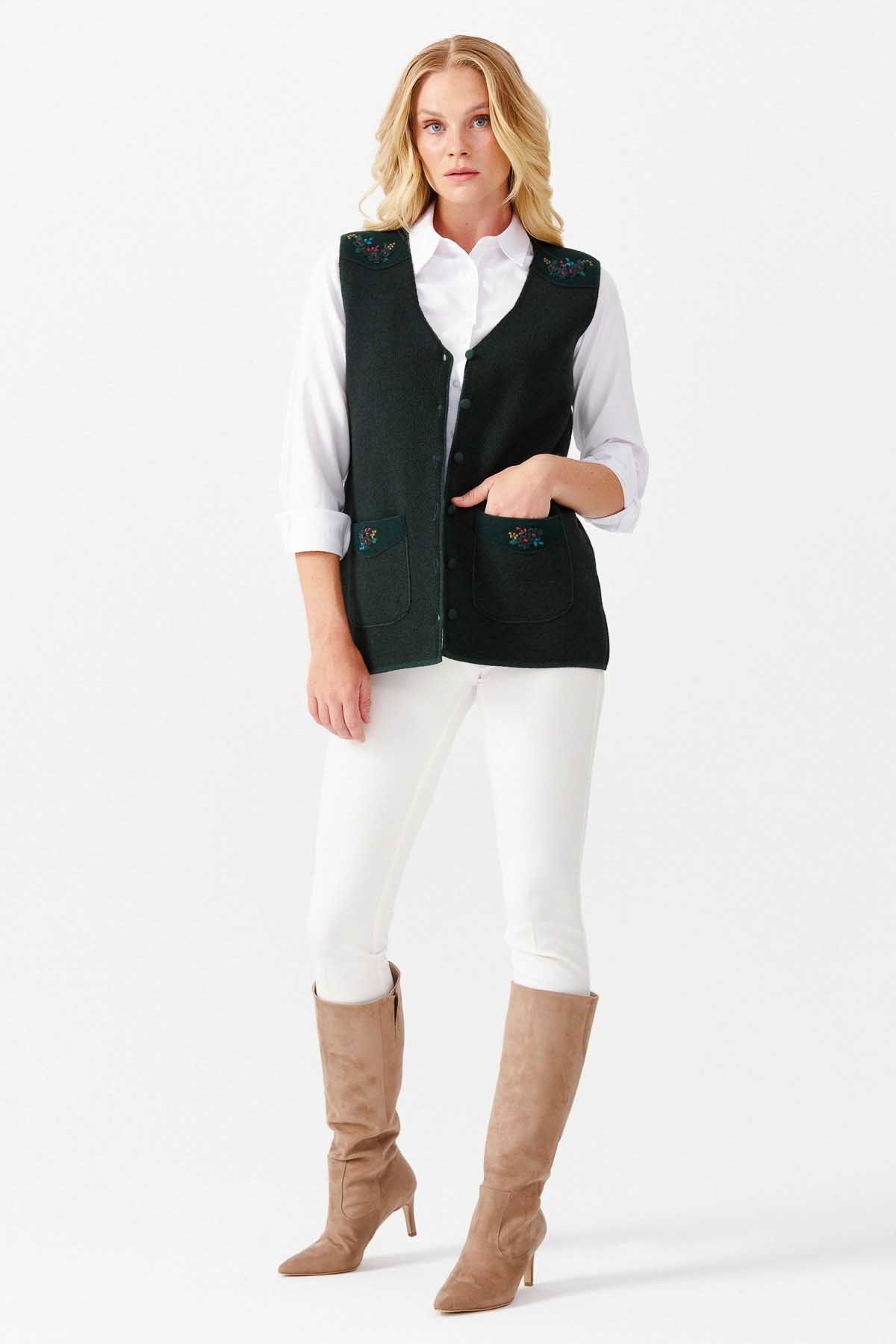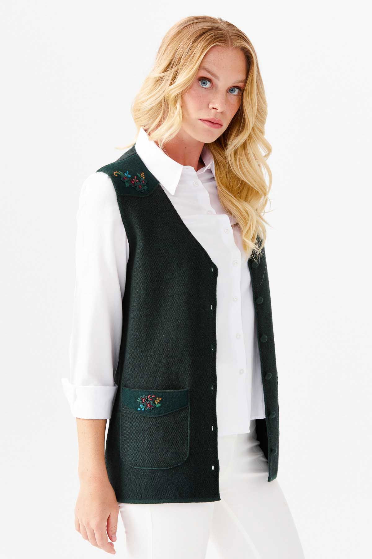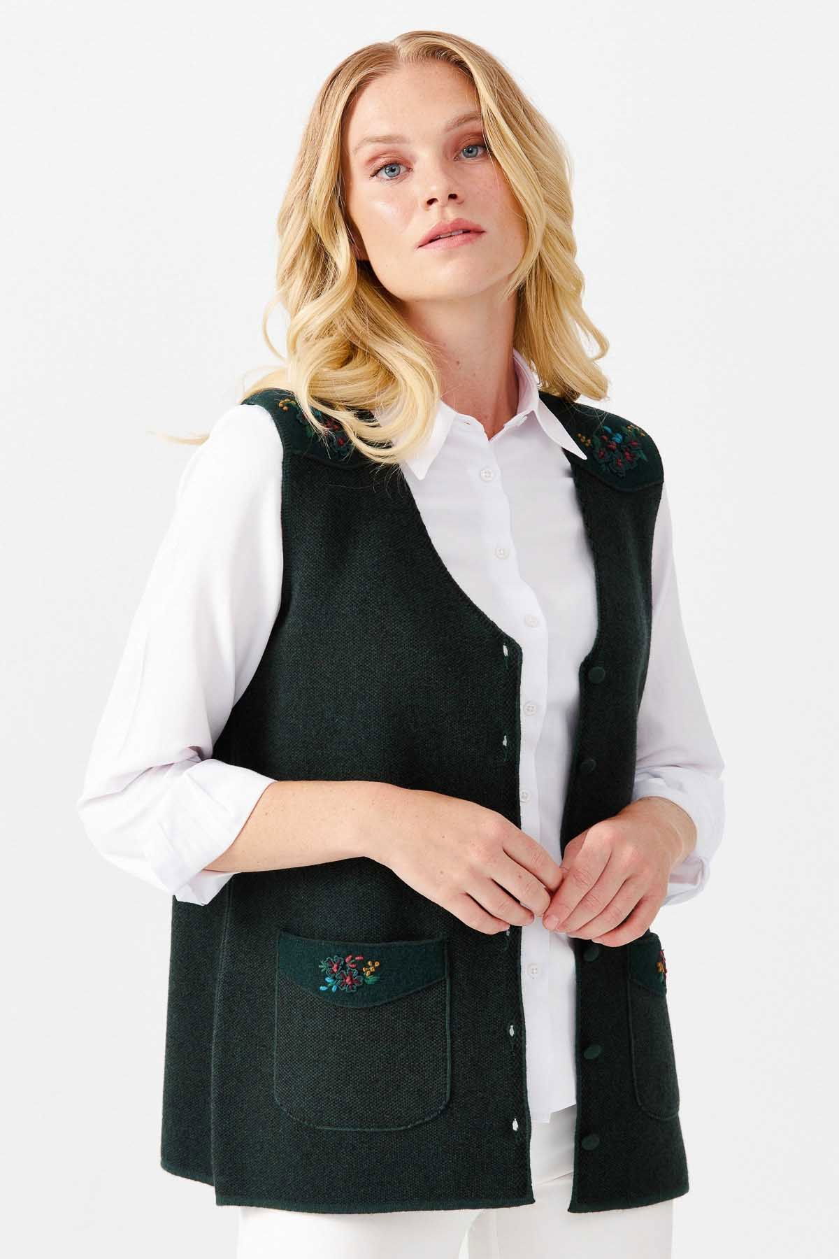 Desen Triko Kadın V Yaka Omuzu Cep Kapağı Keçeli İşlemeli Düğmeli Yelek 02422114 Yeşil
