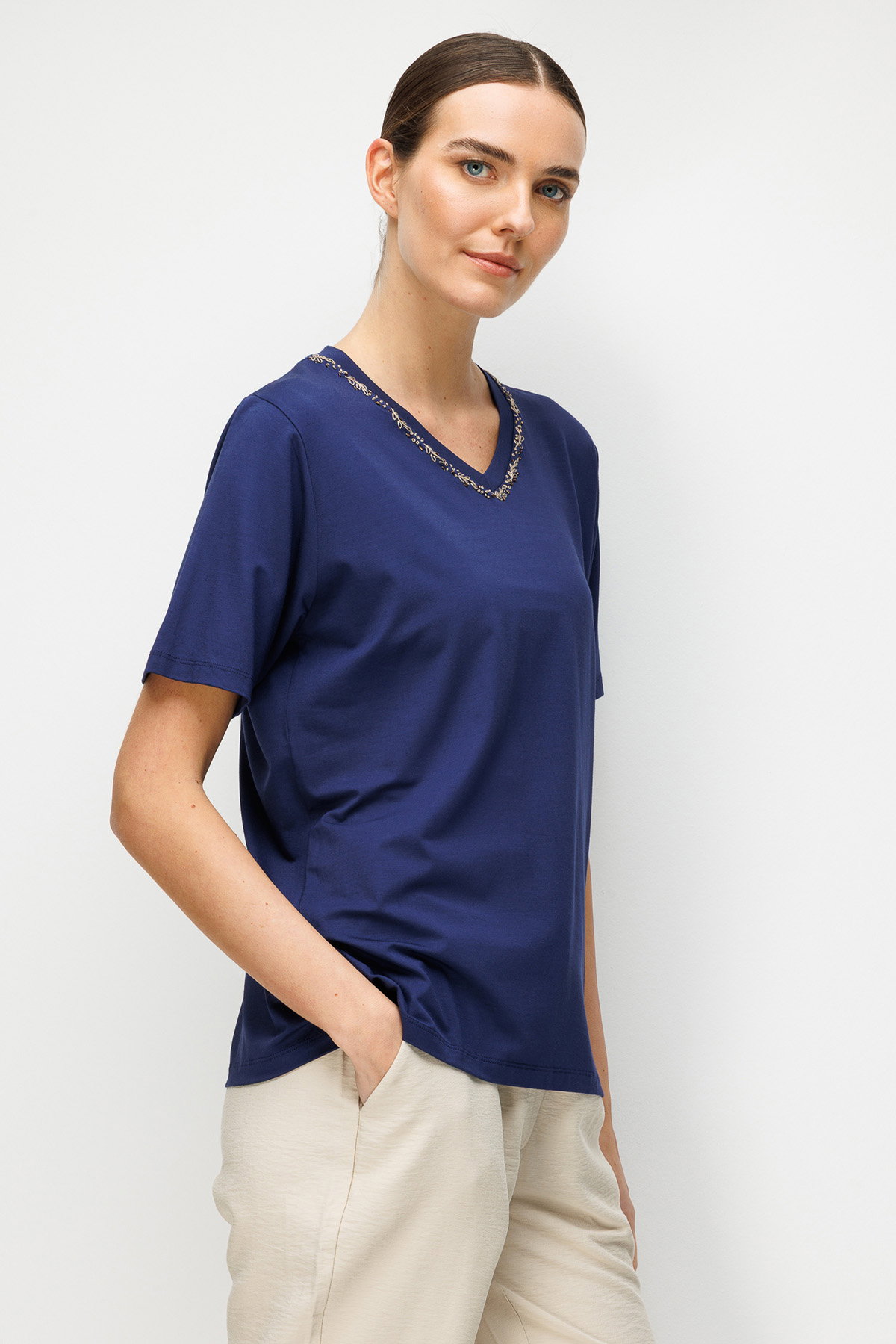 Detay: Düz renk, geniş kalıp, kısa kollu ve V yaka tasarımıyla öne çıkan bu penye T-shirt modern ve rahat bir görünüm sunar. Düz renk yapısı sade bir şıklık sağlarken geniş kalıp formu konforlu bir kullanım imkânı verir. Kısa kollu detayı günlük şıklığı destekler, V yaka ise feminen ve zamansız bir duruş kazandırır;