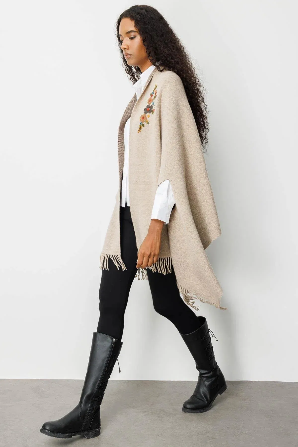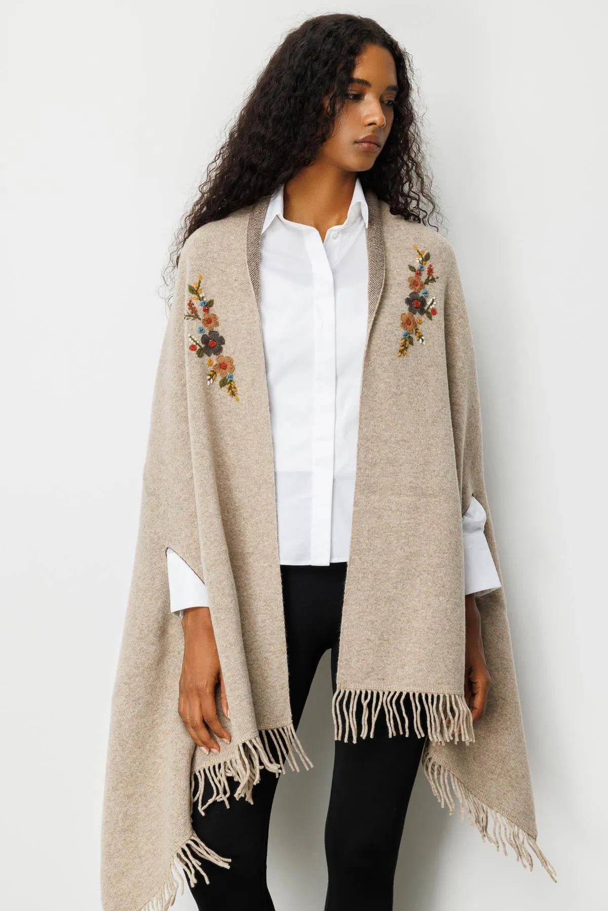 Detay: Düz renk tasarımıyla sade ve zarif bir görünüm sunan bu yünlü panço, standart kalıbıyla rahat ve şık bir duruş sağlar. Doğal yün dokusu sayesinde serin havalarda sıcaklık ve konforu bir arada sunar. Minimal tarzı benimseyenler için hem fonksiyonel hem de stil sahibi bir dış giyim parçasıdır;