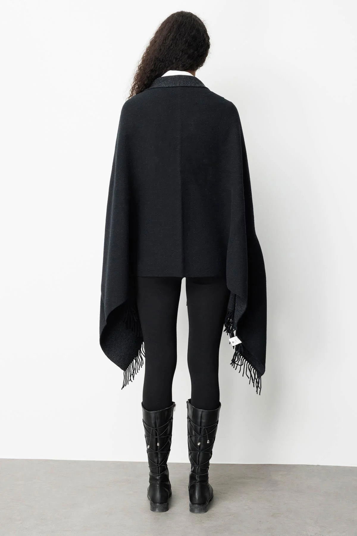 Detay: Düz renk tasarımıyla sade ve zarif bir görünüm sunan bu yünlü panço, standart kalıbıyla rahat ve şık bir duruş sağlar. Doğal yün dokusu sayesinde serin havalarda sıcaklık ve konforu bir arada sunar. Minimal tarzı benimseyenler için hem fonksiyonel hem de stil sahibi bir dış giyim parçasıdır;