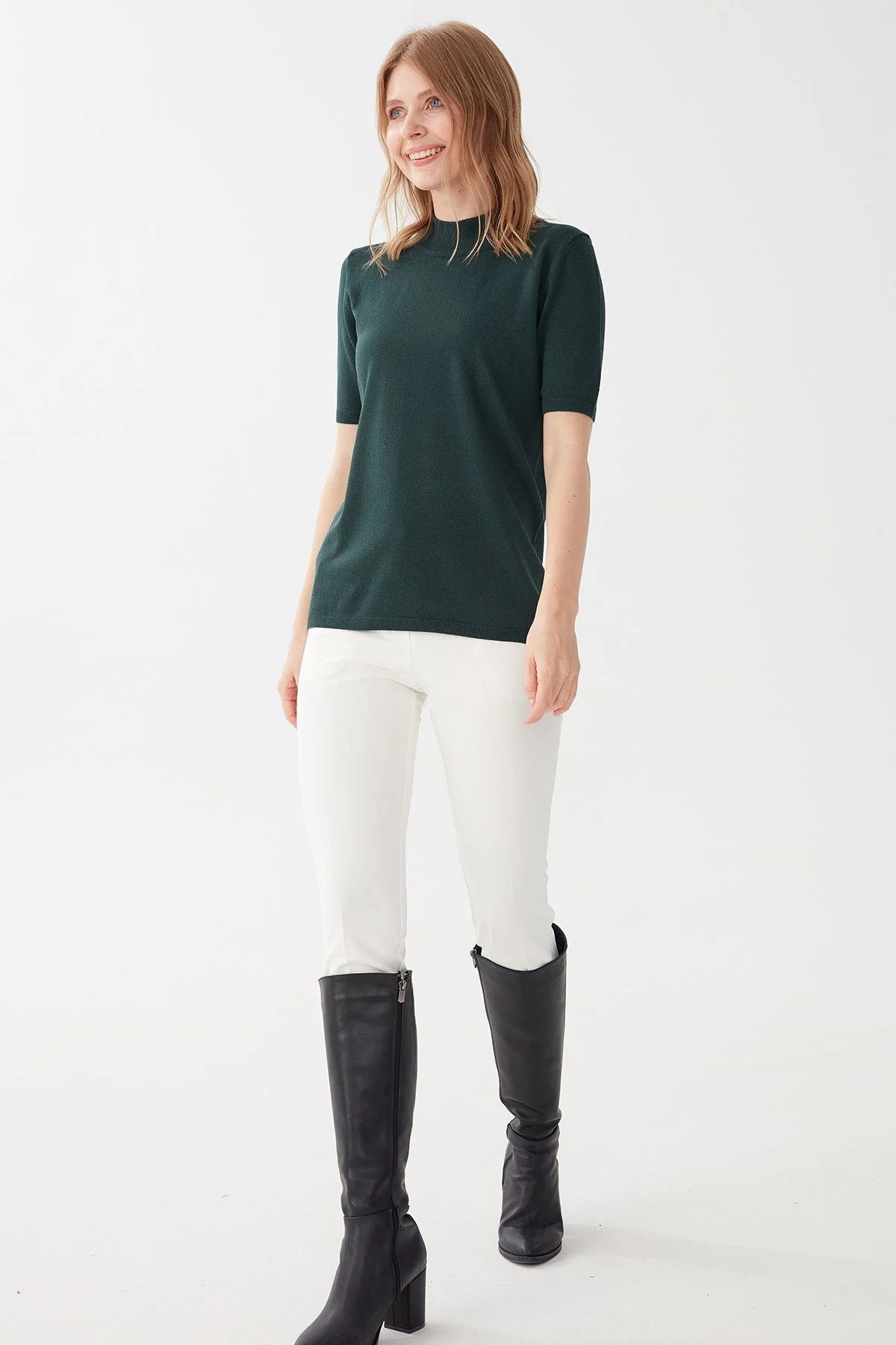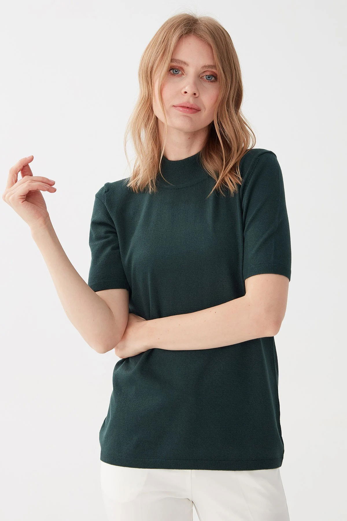 Desen Triko Kadın Yarım Balıkçı Bluz 02420345 Nefti