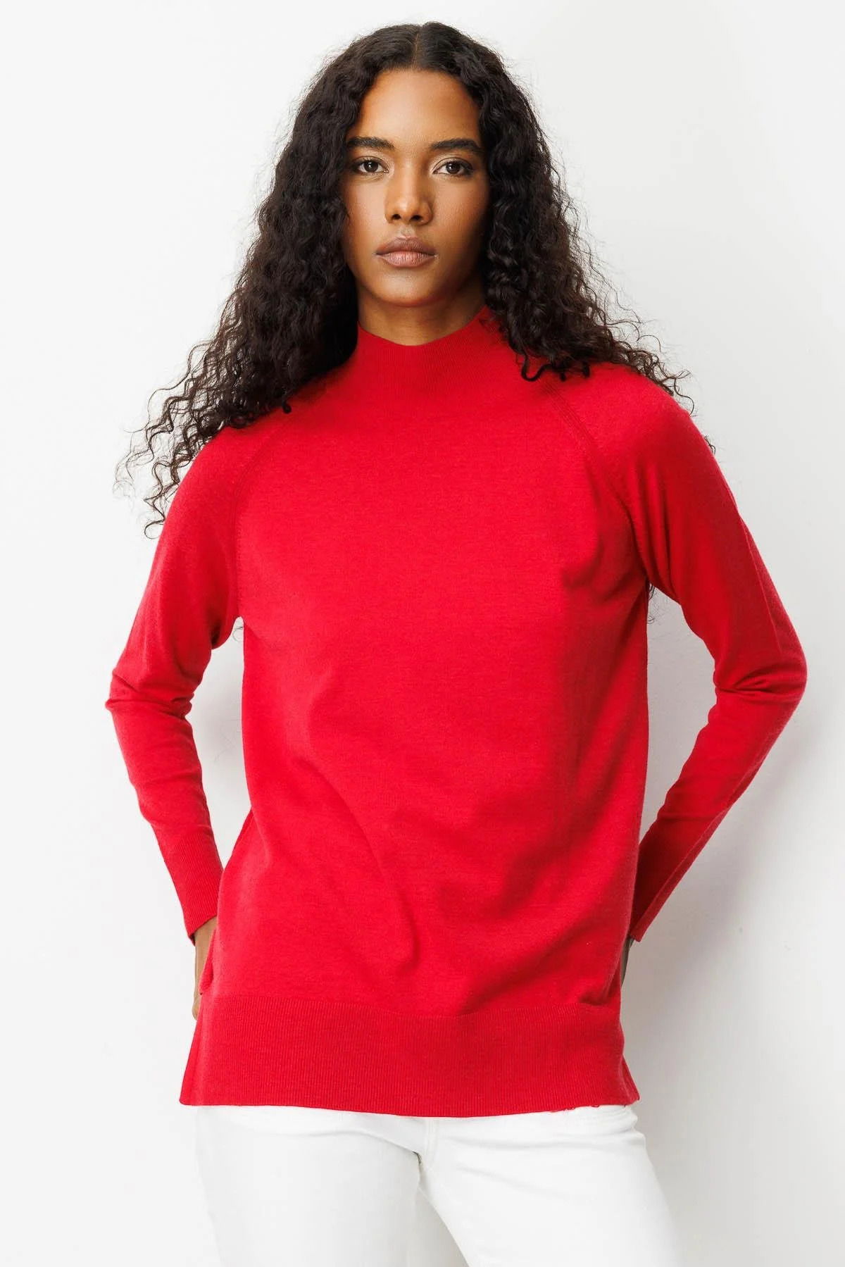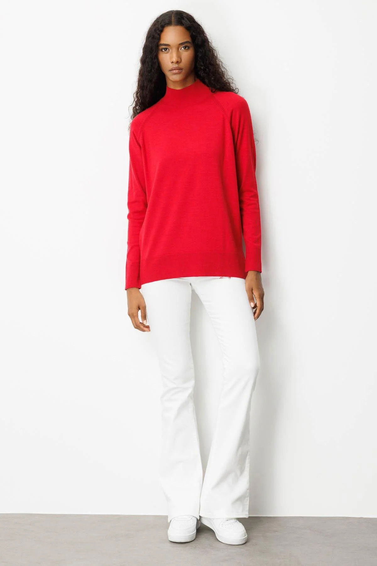 Detay: Düz renk, uzun kollu kazak;