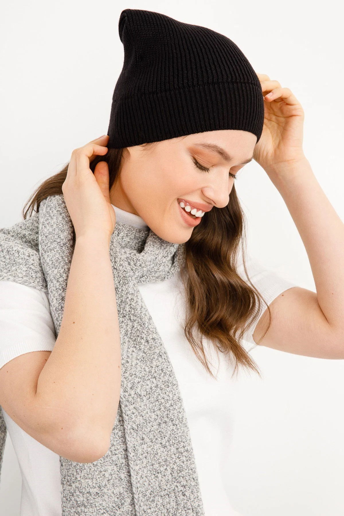 Desen Triko Unısex Yün Bere 22542 Siyah