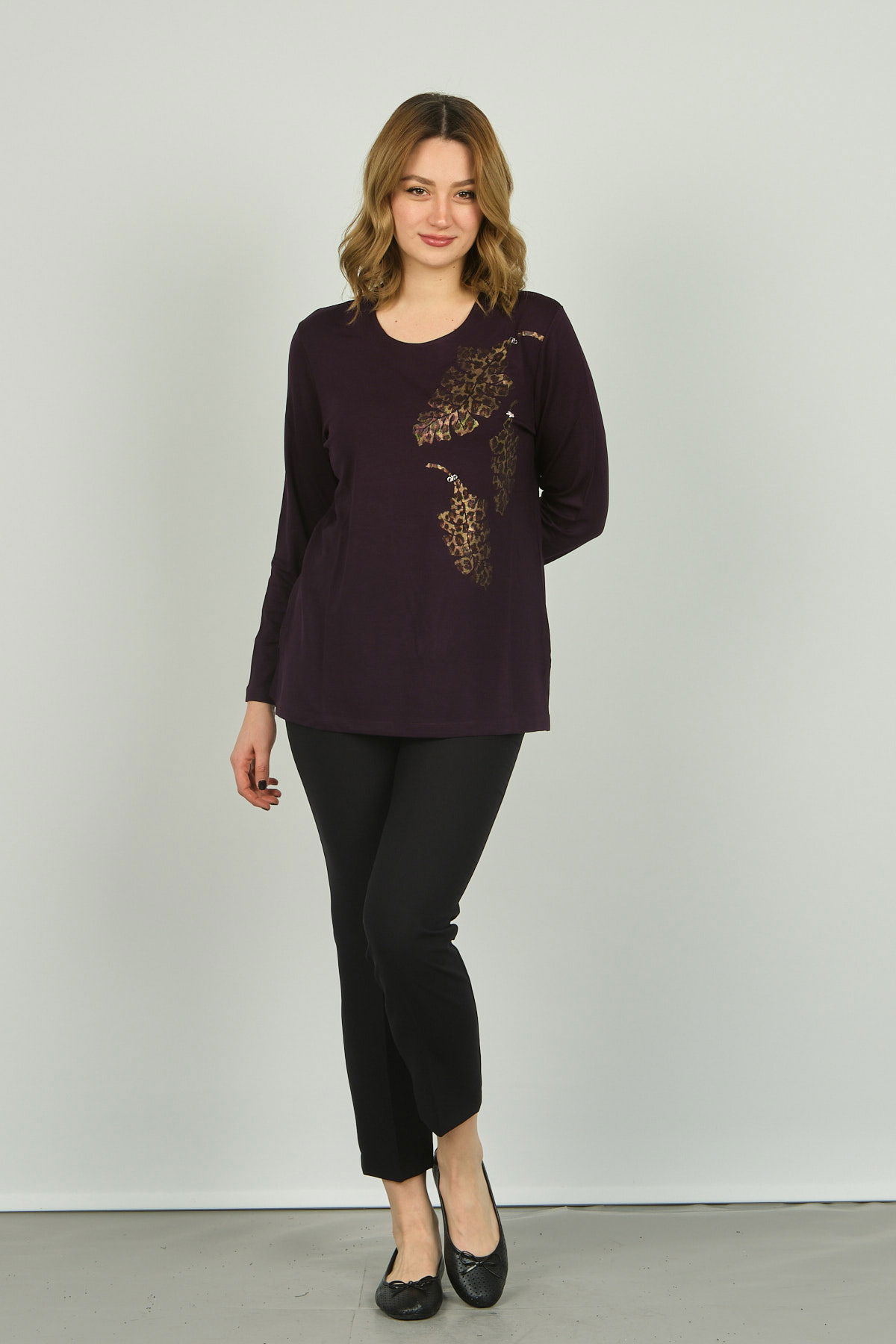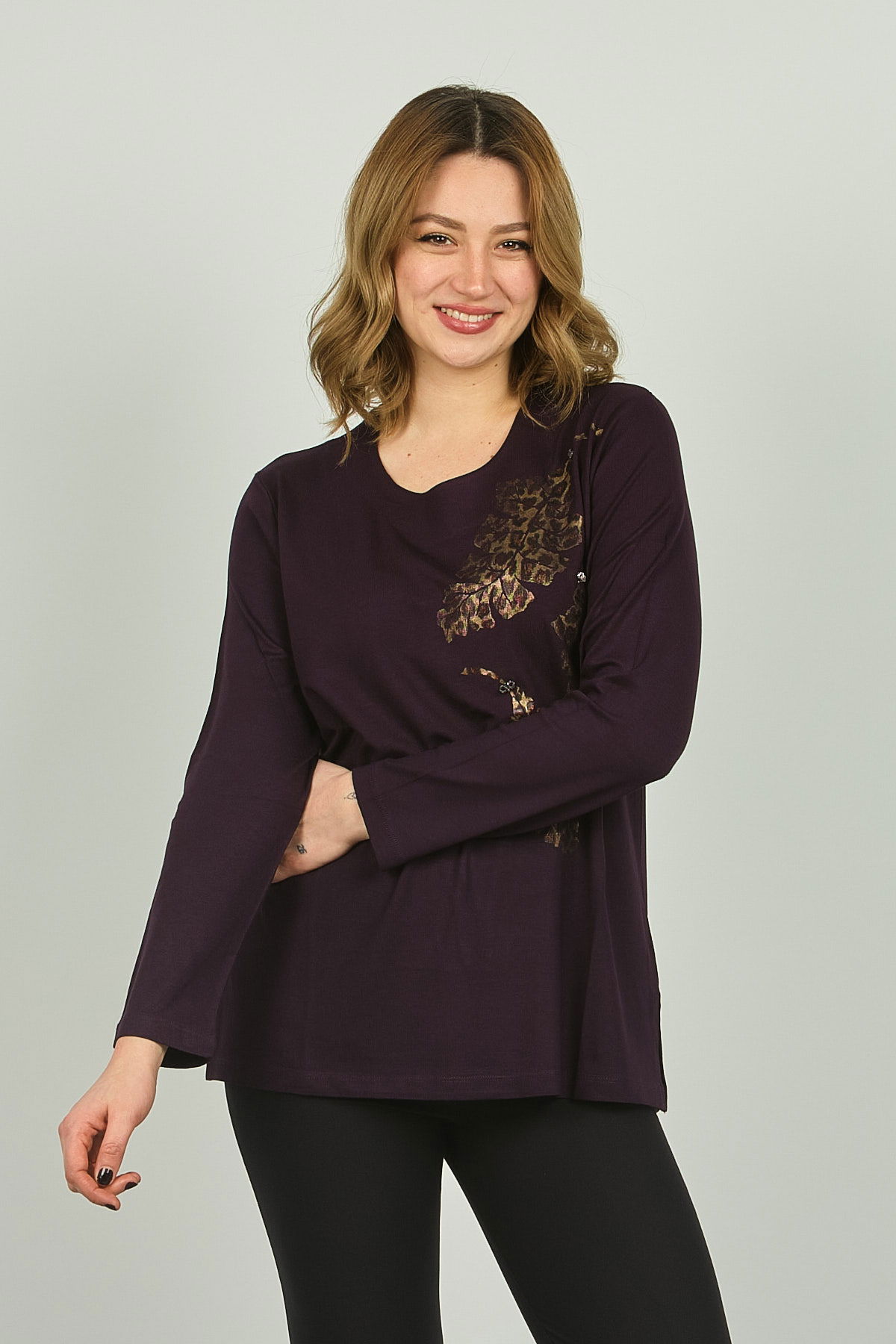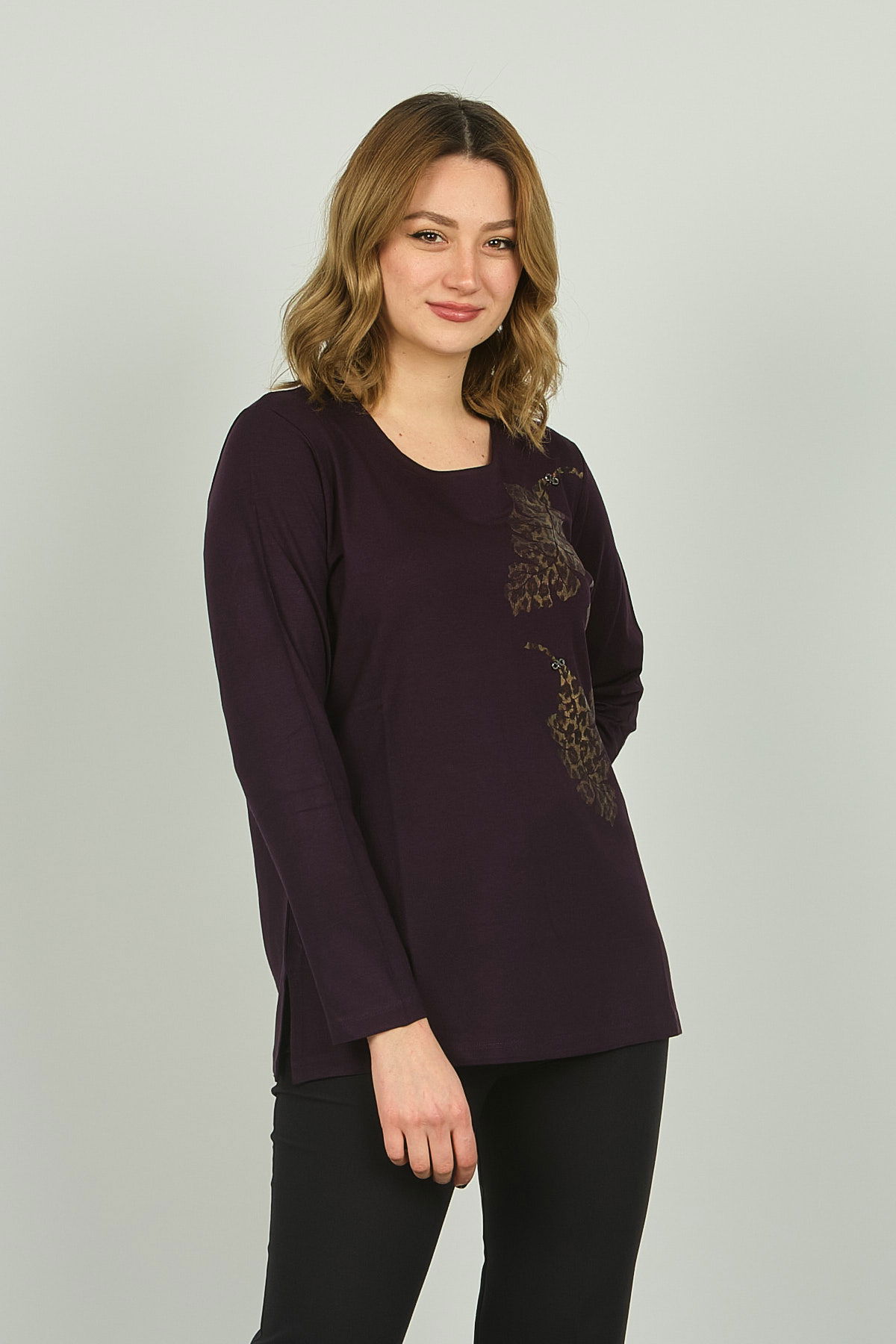 Detay: Bisiklet yaka, desenli, uzun kol bluz;