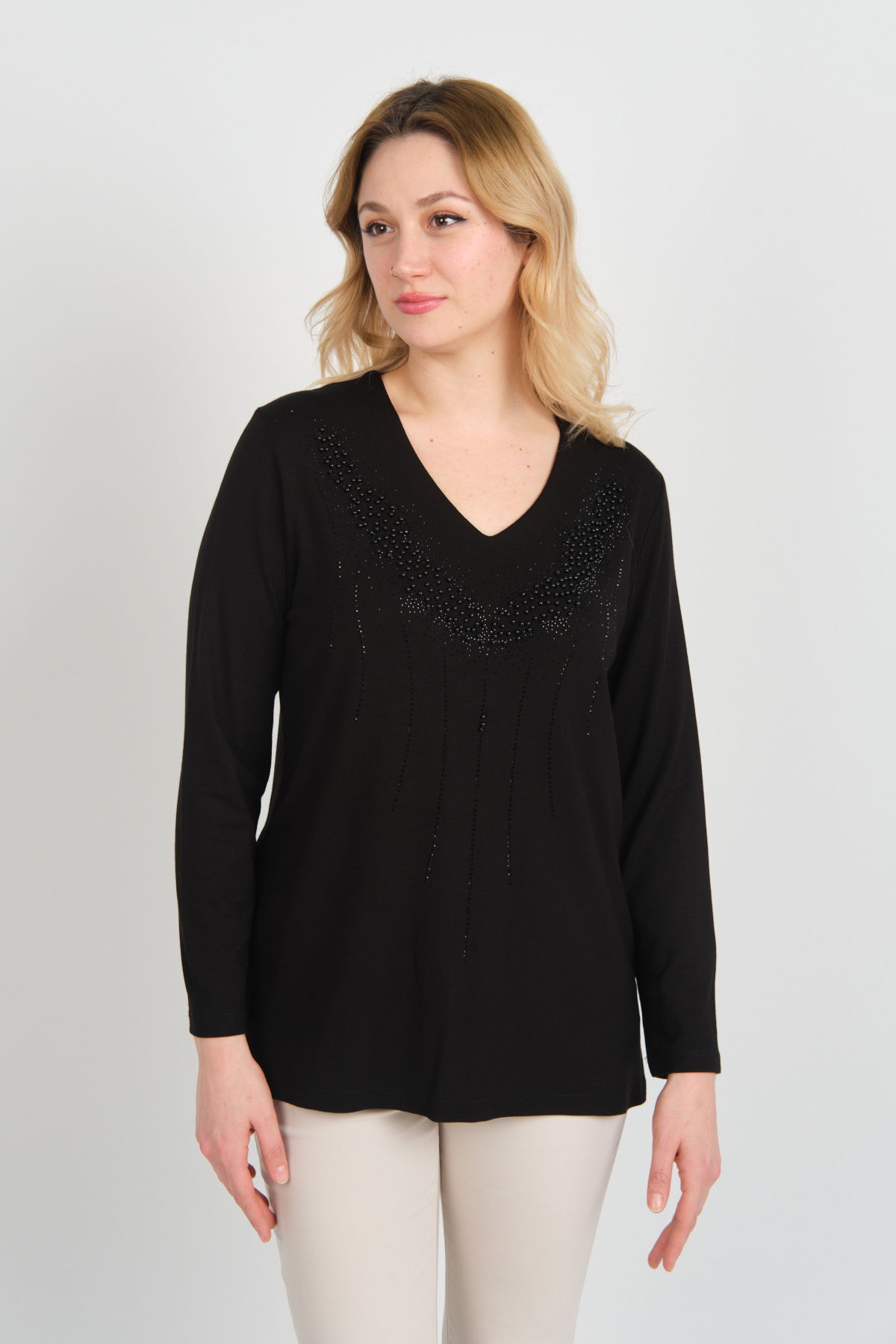 Detay Triko Kadın V Yaka Taş Süslemeli Uzun Kol Bluz 4527 Siyah