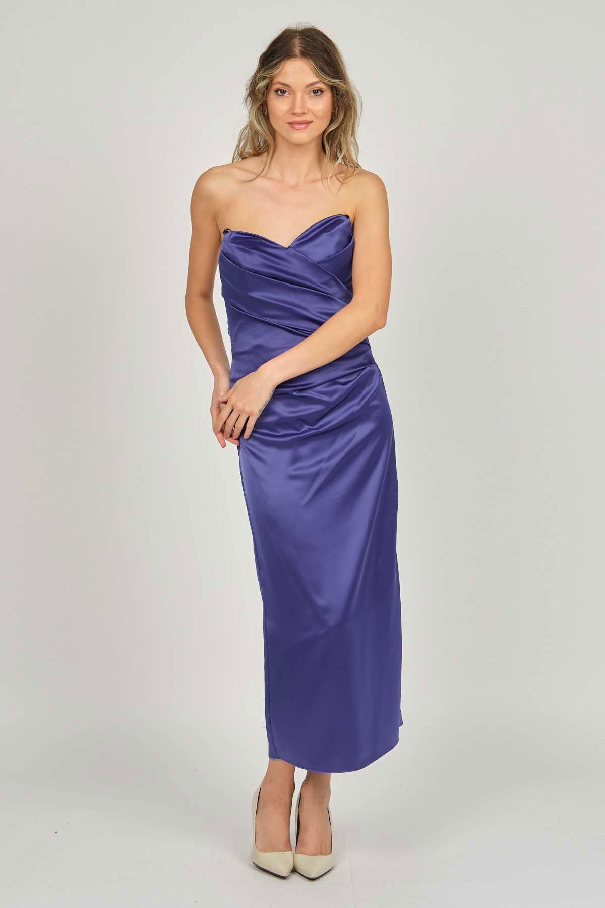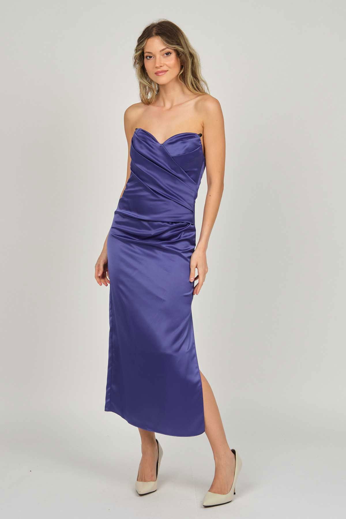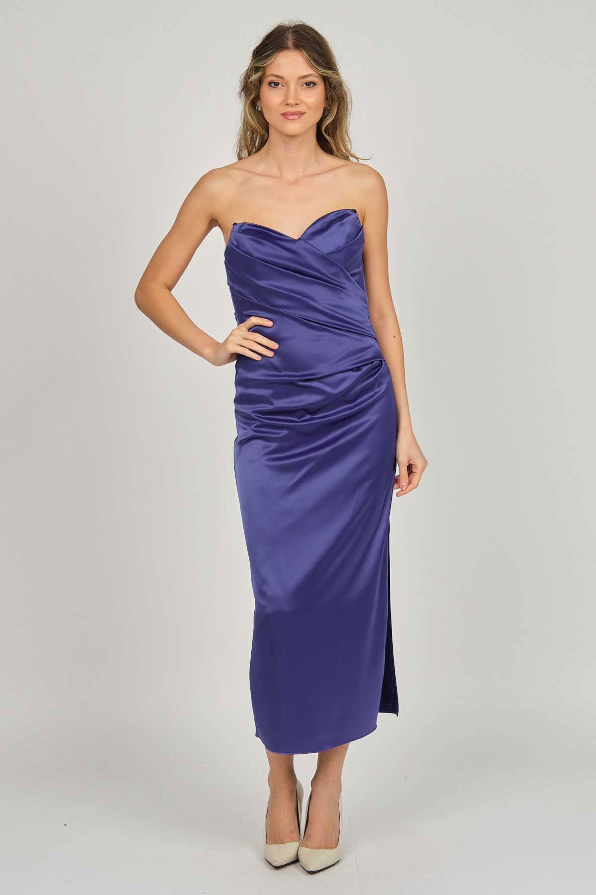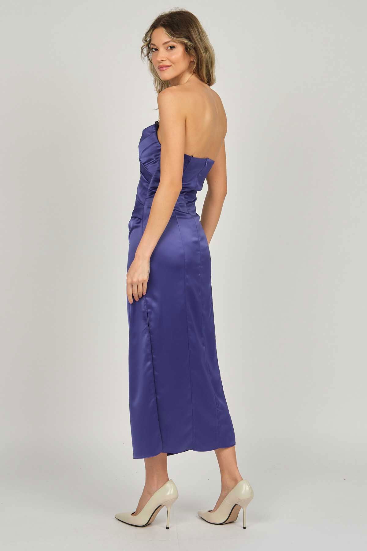 Doridorca Kadın Ara Boy Saten Abiye Elbise 5924061 Gece Mavisi