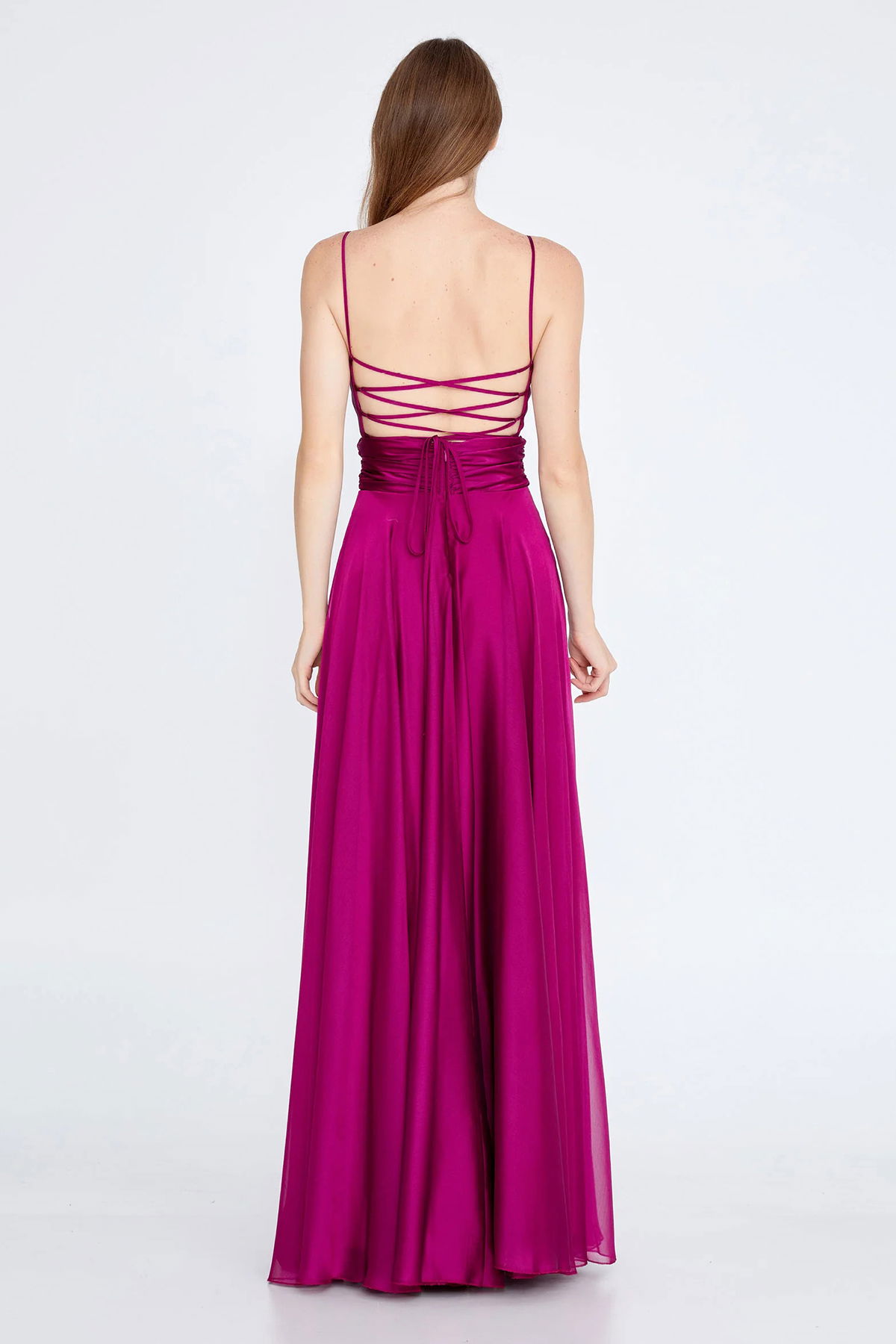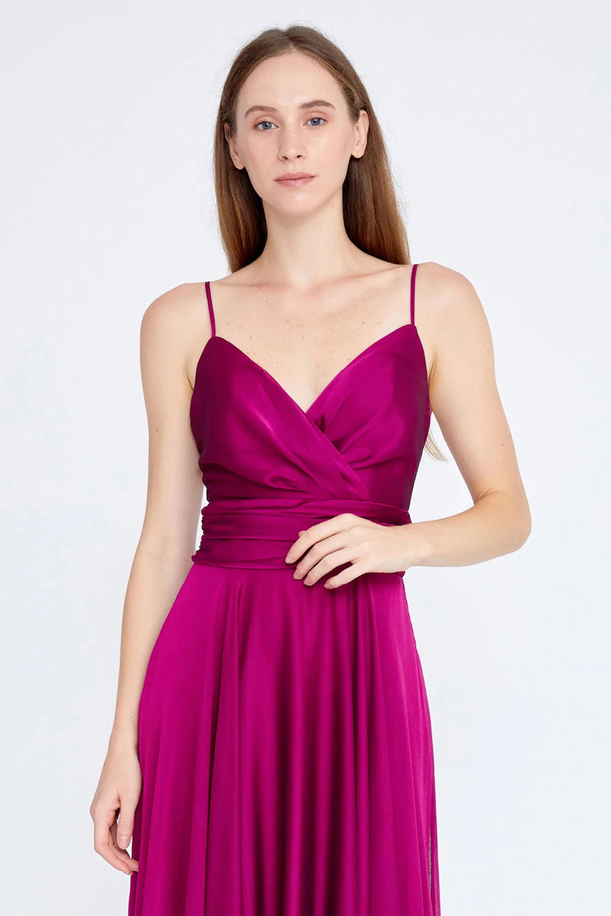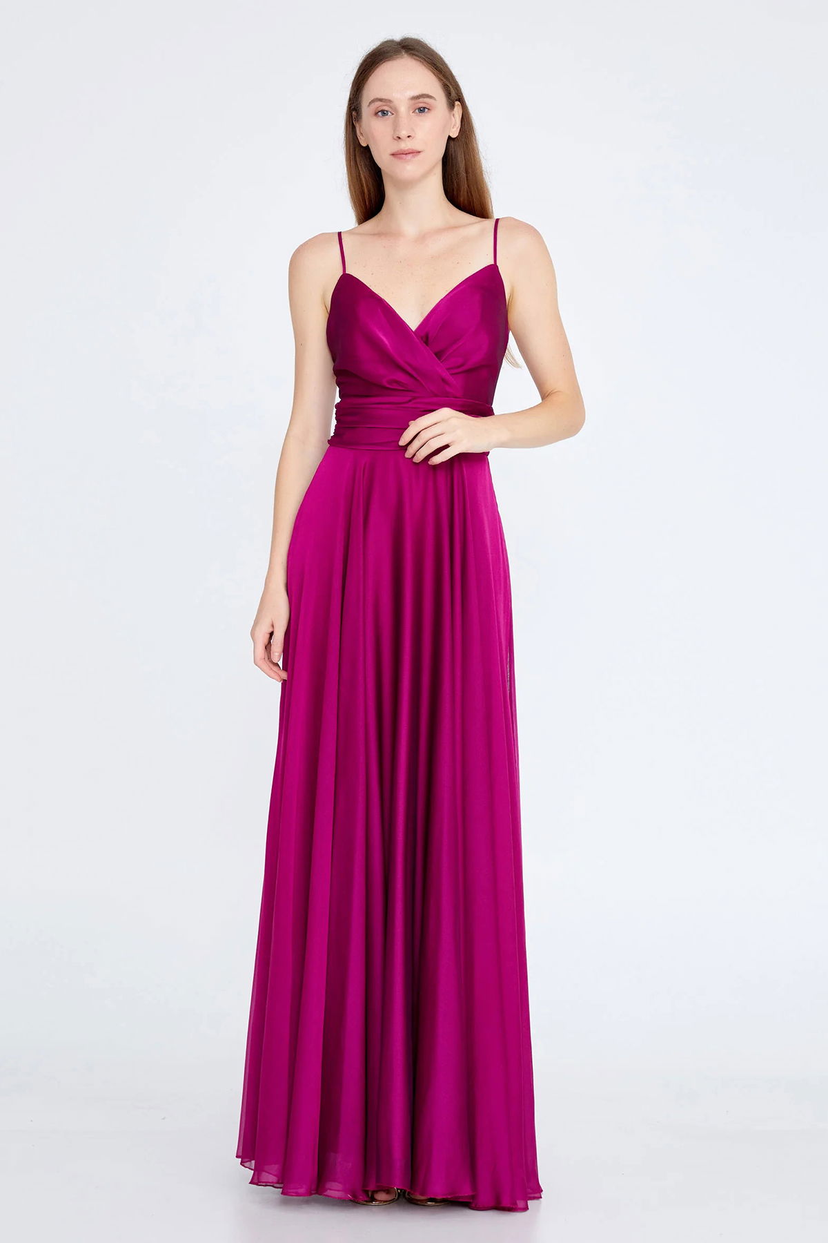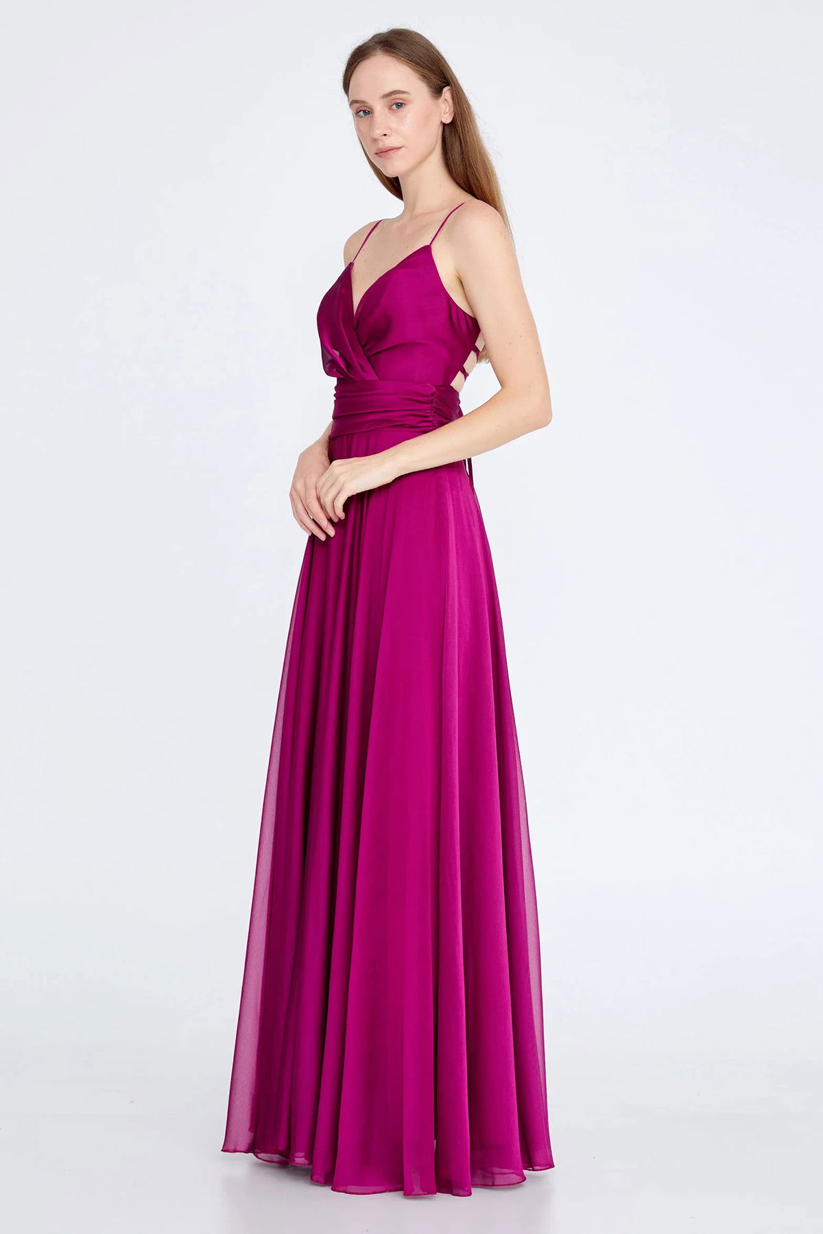 Doridorca Kadın Askılı Sırt Detaylı Uzun Abiye Elbise 5922022 Fuşya