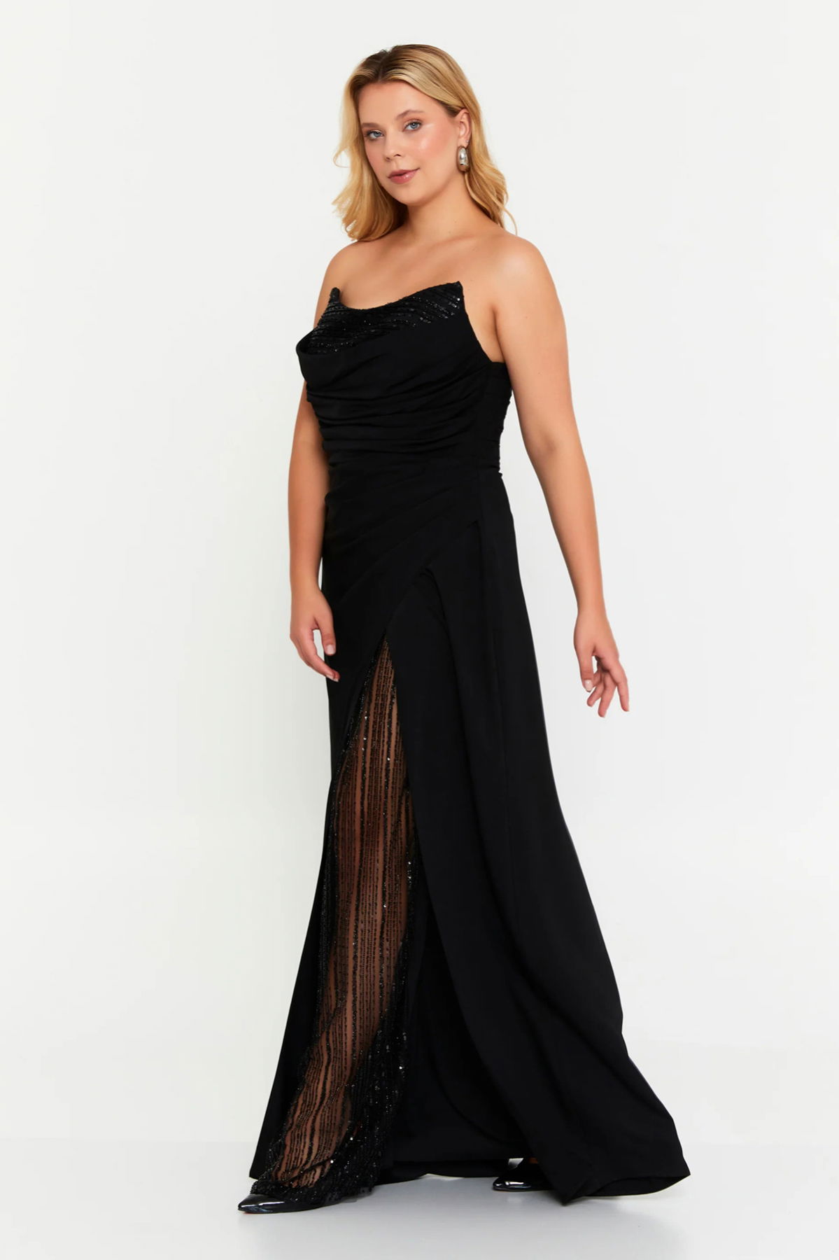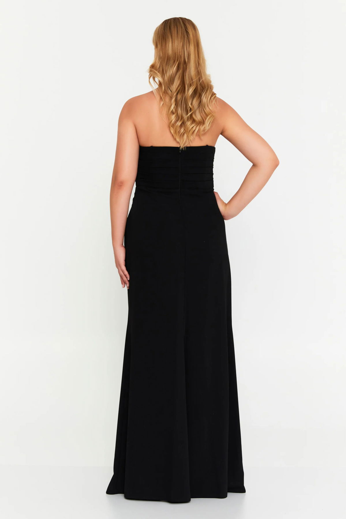 Detay: Dar kalıp tasarımıyla vücudu kusursuz şekilde saran straplez uzun abiye elbise, saten kumaşın parlak dokusu ve derin yırtmaçtaki tül detaylı transparan yapısıyla iddialı bir şıklık sunar. Göğüs kısmındaki taş işlemeleri, elbiseye göz alıcı bir ışıltı katarken özel davetler ve gece organizasyonları için etkileyici bir görünüm sağlar. Astarlı yapısı ve fermuarlı kapamasıyla hem konforlu hem de kusursuz bir duruş sunan bu uzun abiye elbise, zarif ve lüks bir stil arayanlar için ideal bir tercihtir;